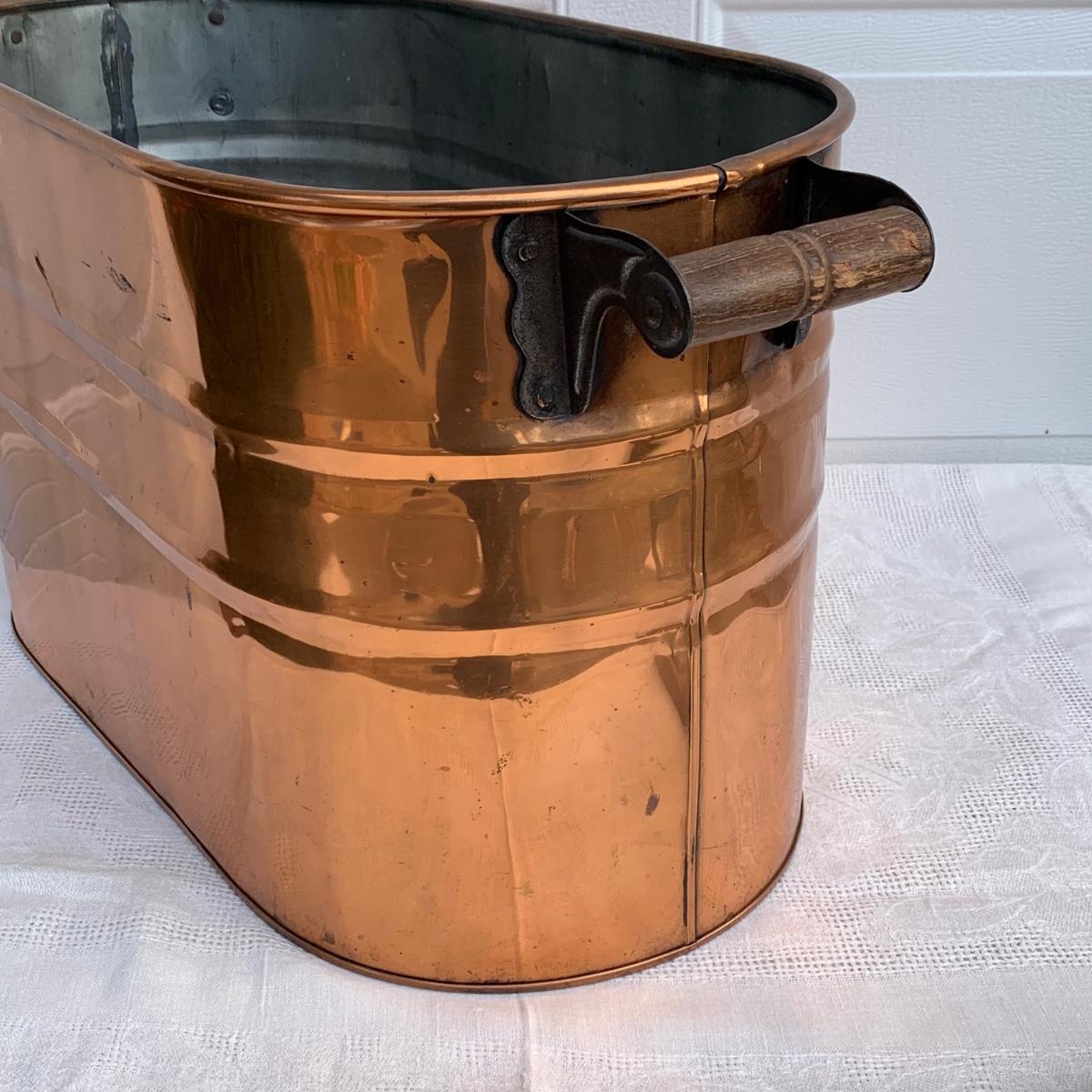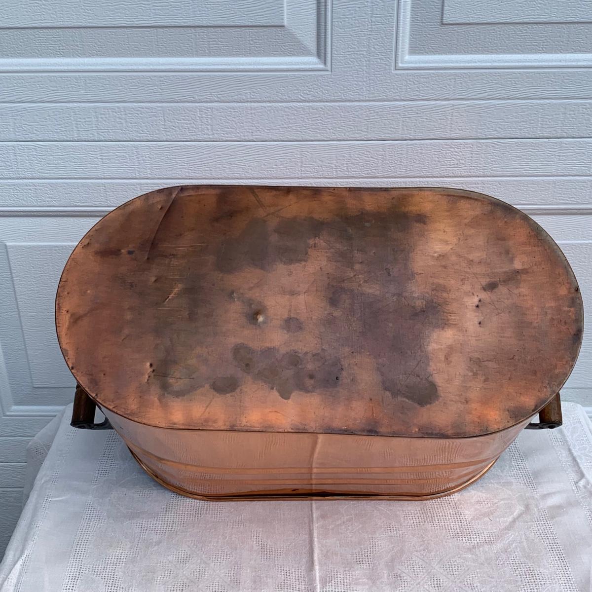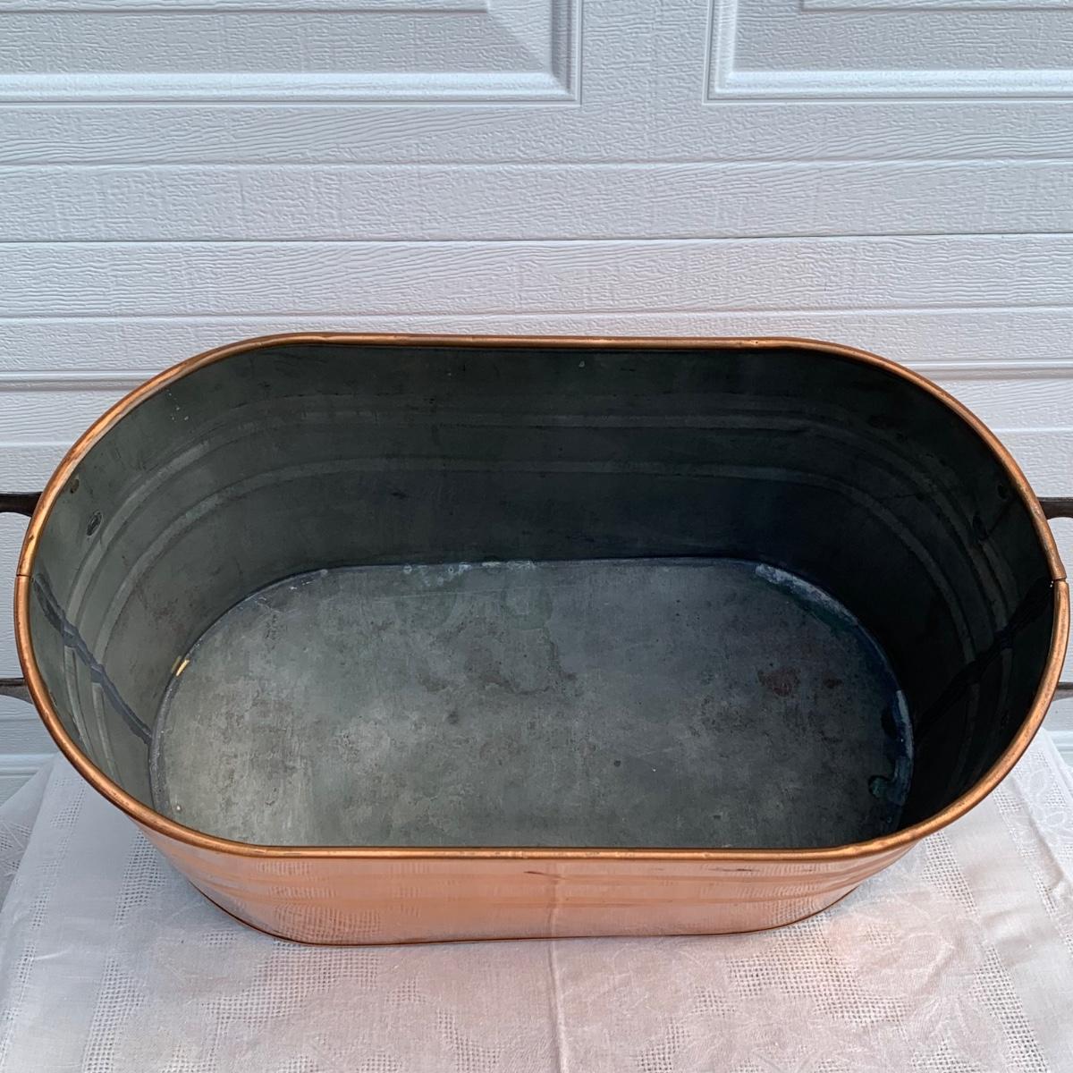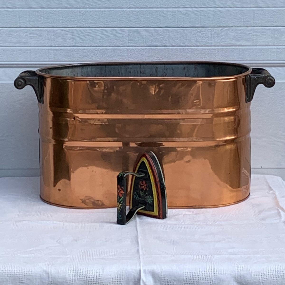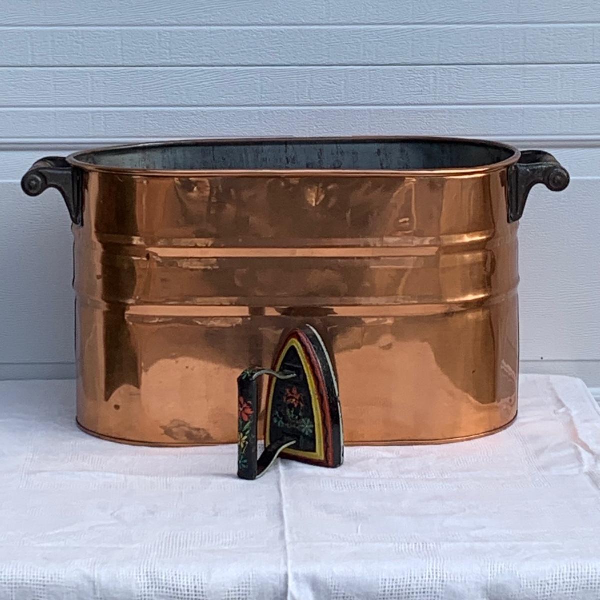 LOT 222R: Vintage Primitive Copper Tub/Boiler (Great Hearth/Fireplace Piece) & Folk Art Painted Iron