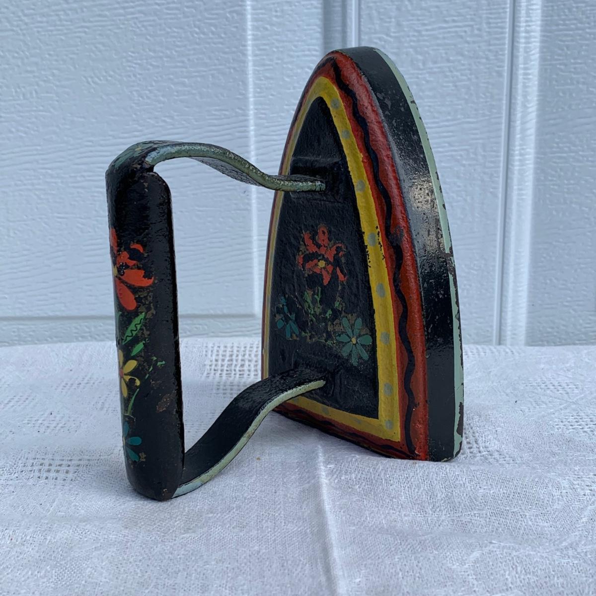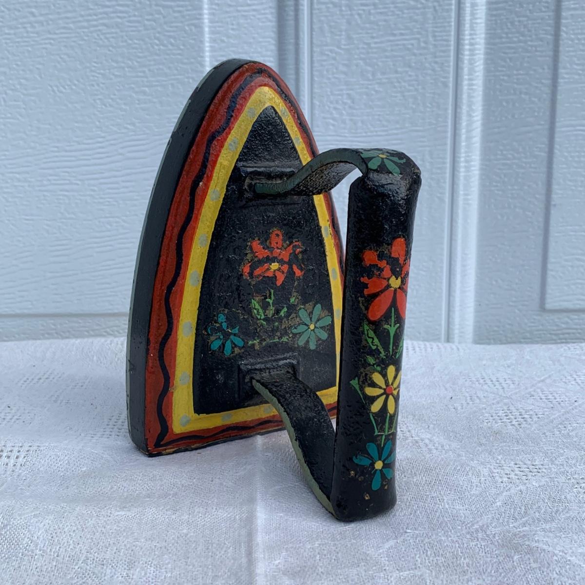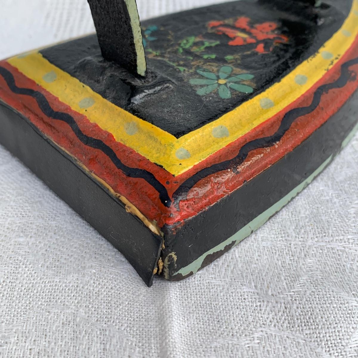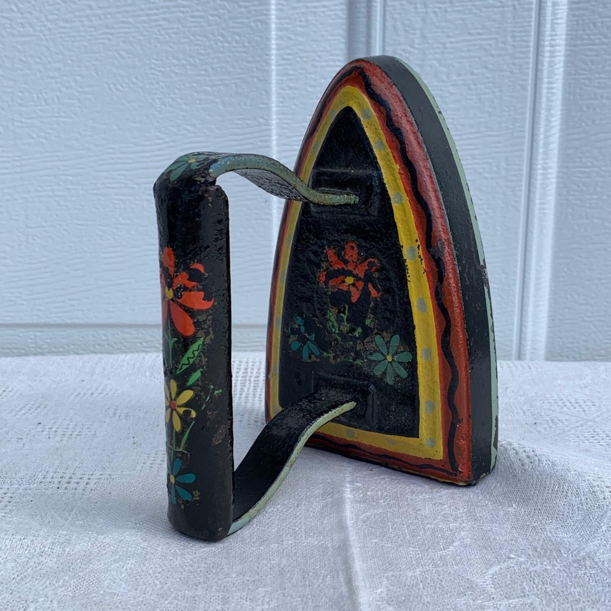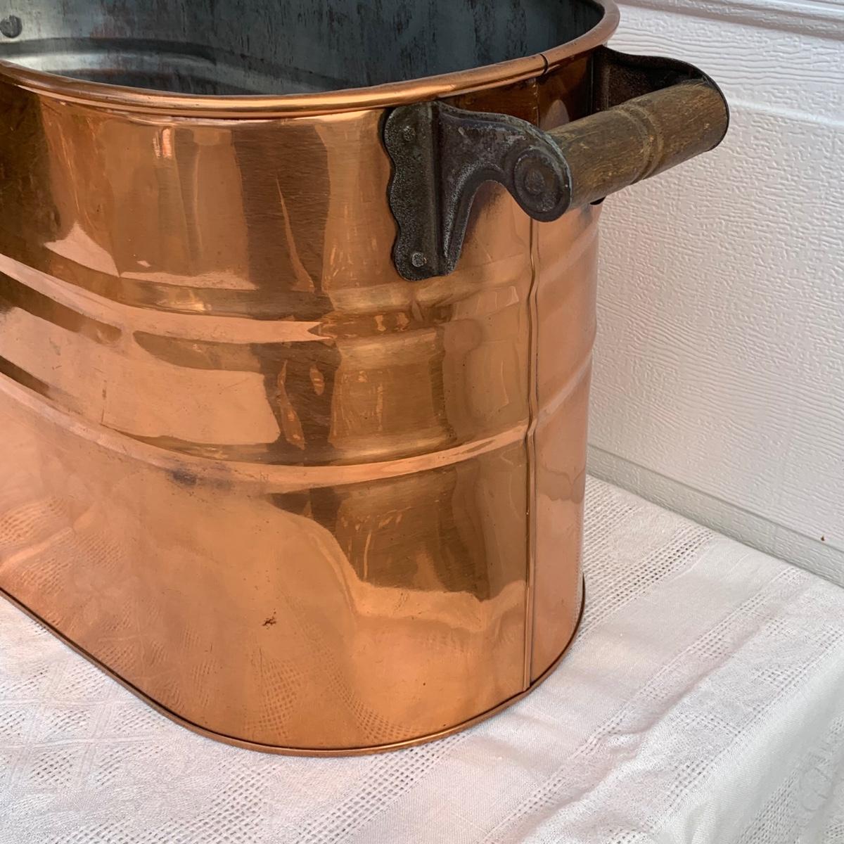 LOT 222R: Vintage Primitive Copper Tub/Boiler (Great Hearth/Fireplace Piece) & Folk Art Painted Iron