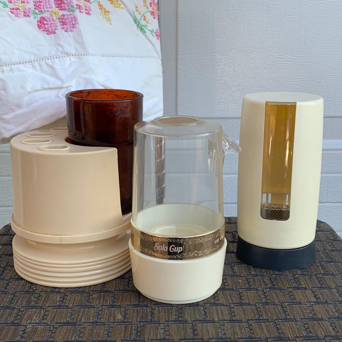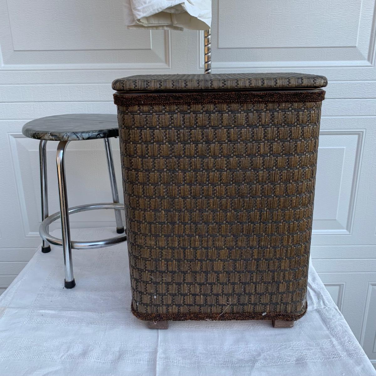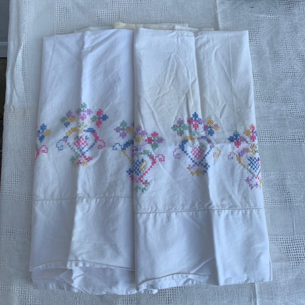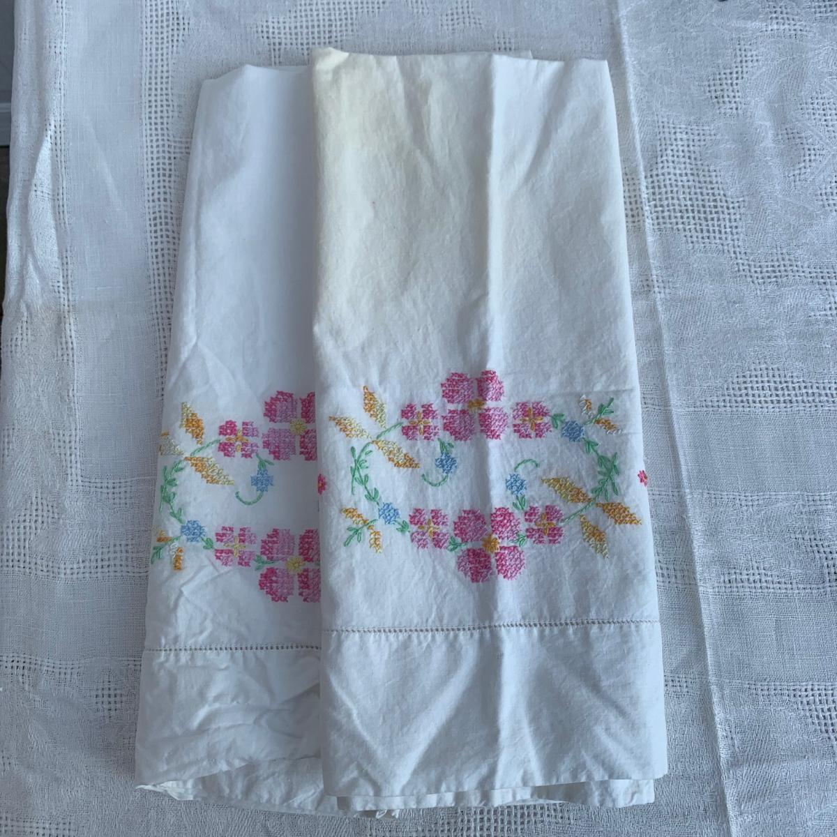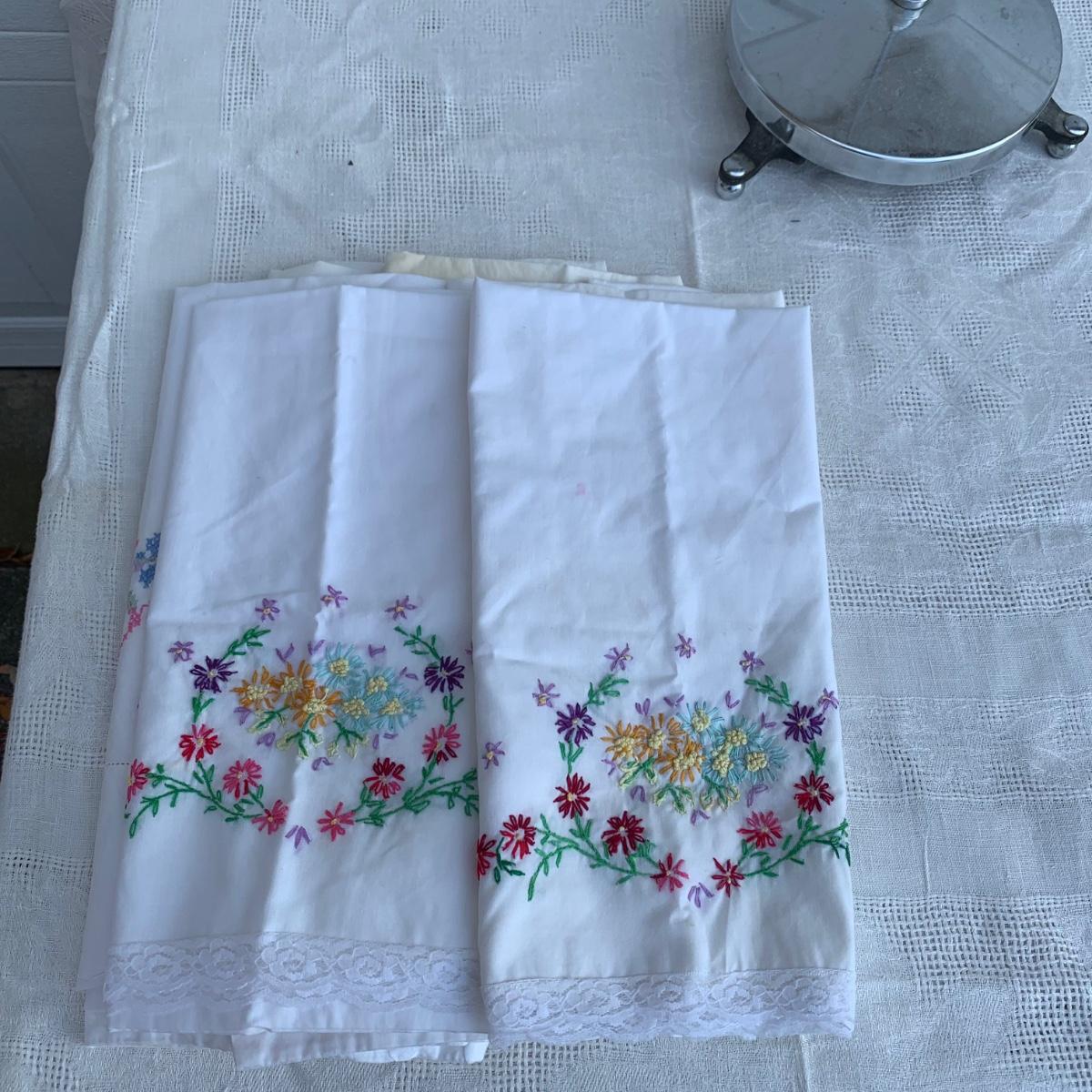 LOT 224R: Bath &n Bed Collection: Redmon Wicker Style Hamper, Needlework Pillowcases, Dixie Cup Dispensers, Standing Towel Bar & More