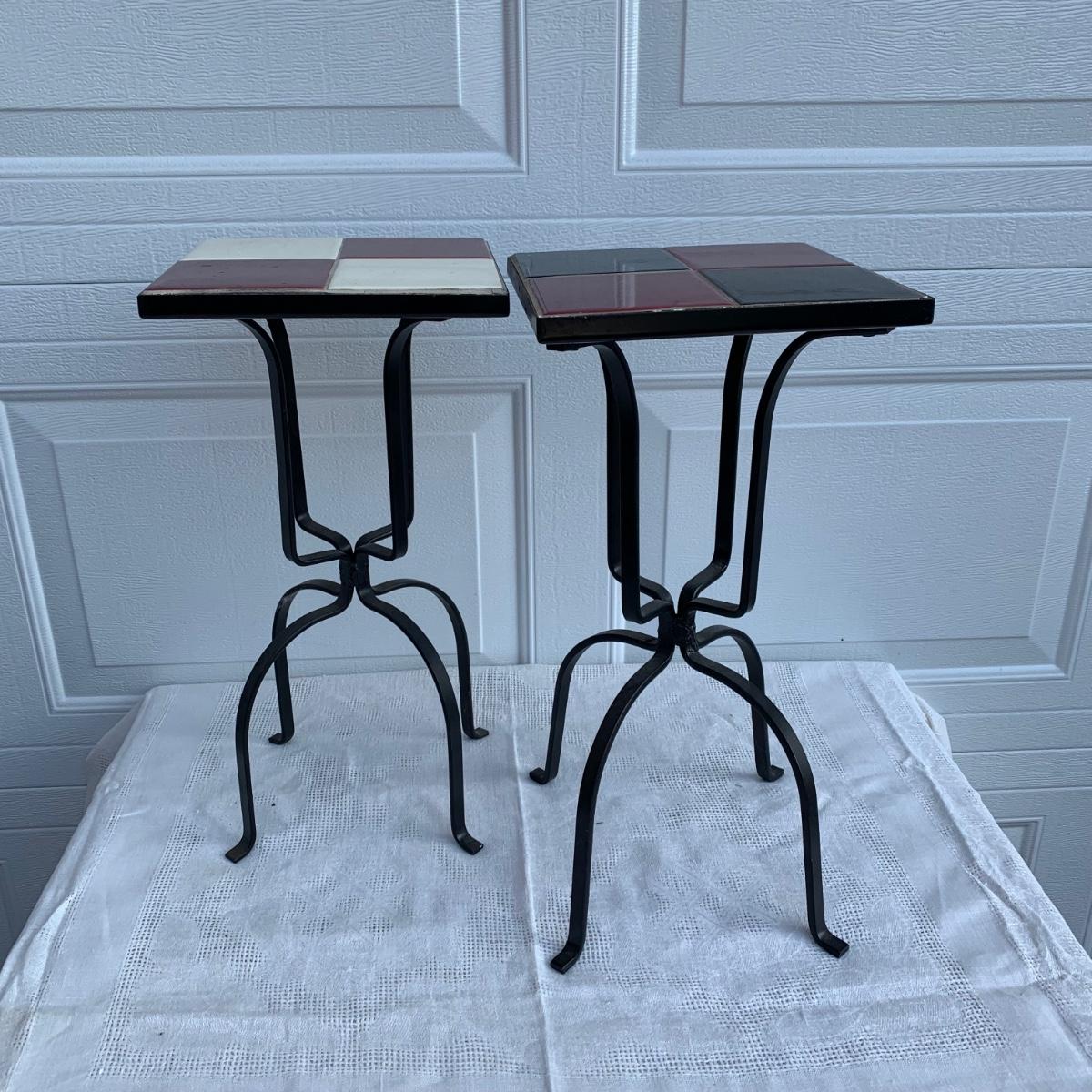 LOT 225R: Vintage Tile & Wrought Iron Accent Tables