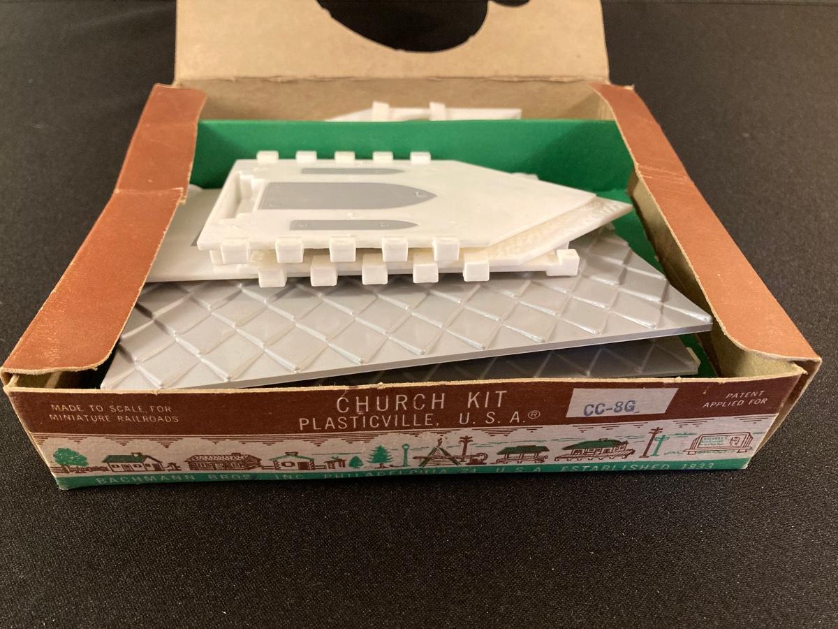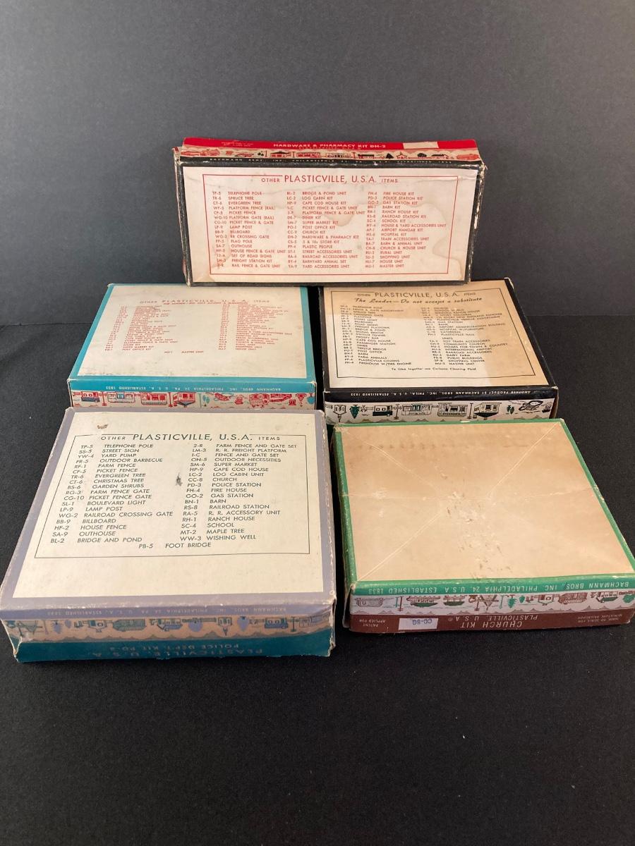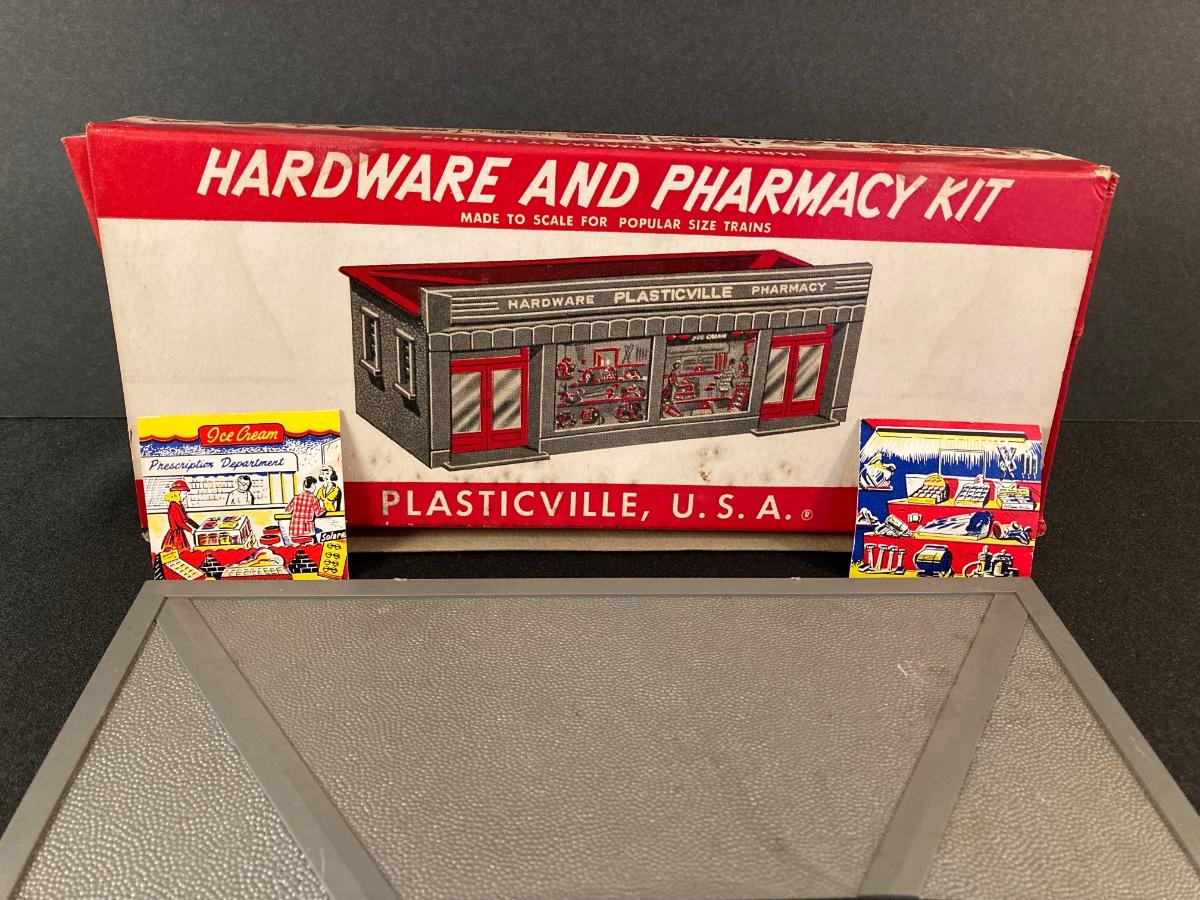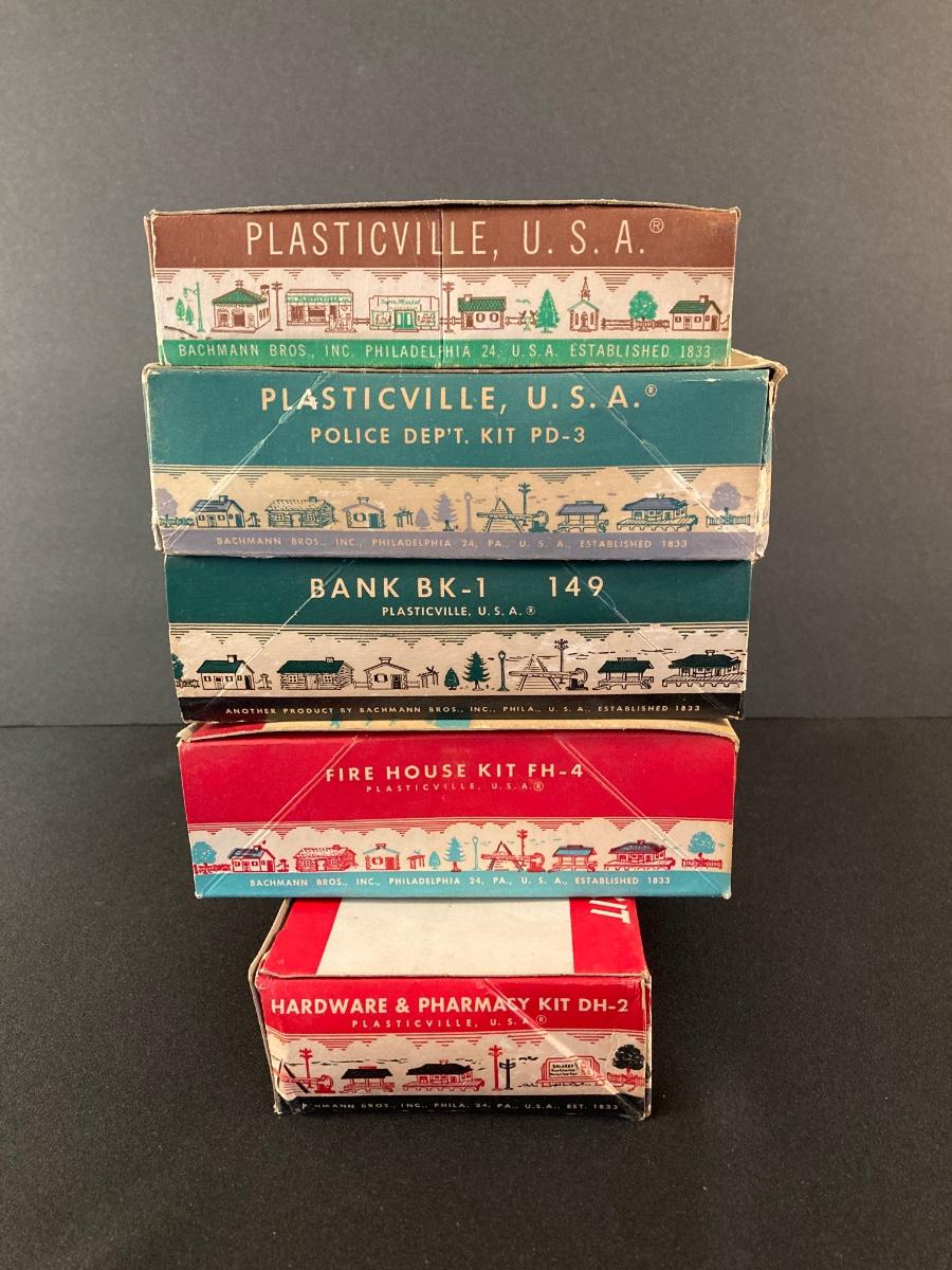 LOT 247J: Plasticville Kit Collection - Church, Police Dept., Bank, Fire House and Hardware / Pharmacy