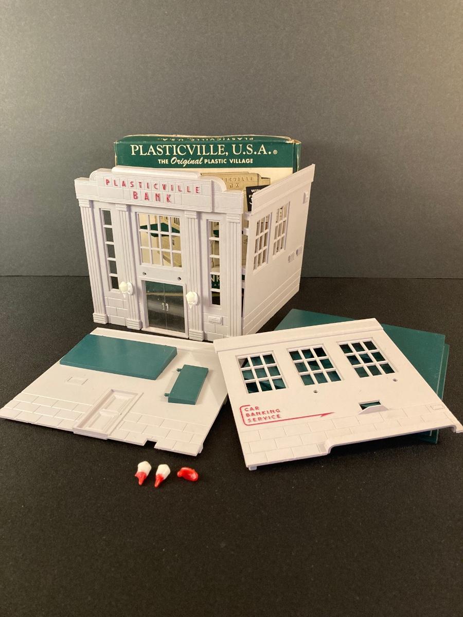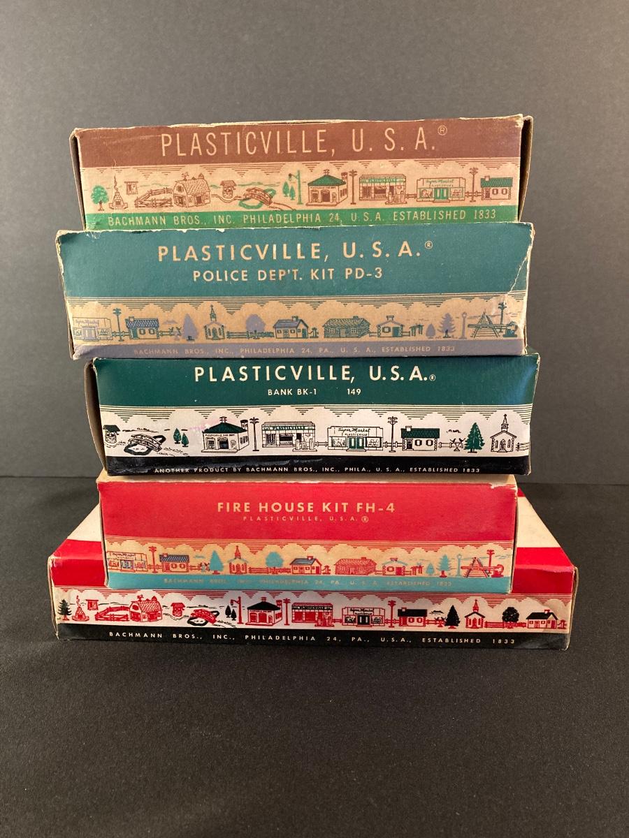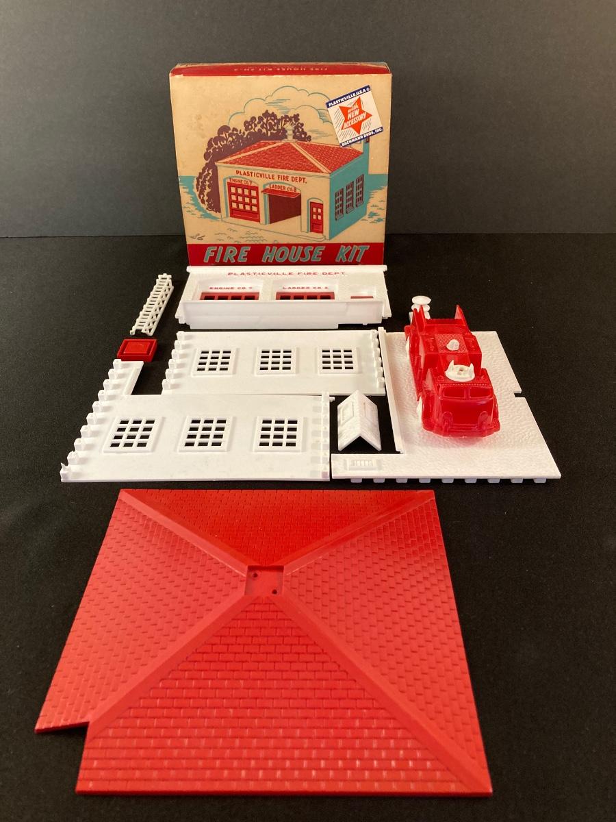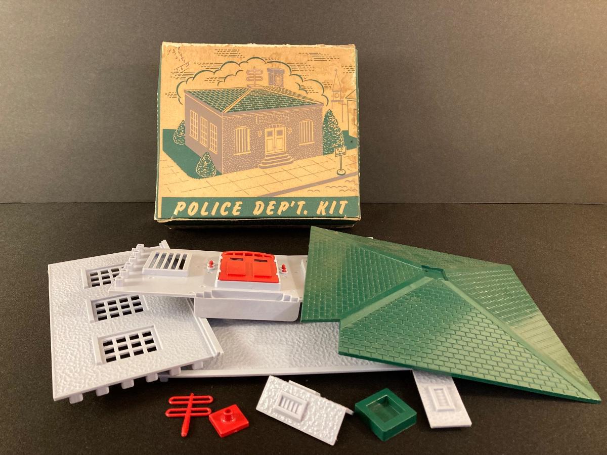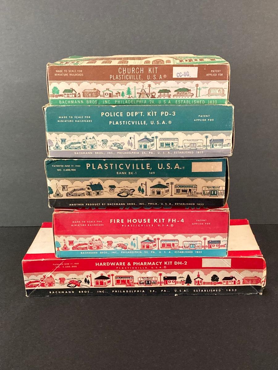LOT 247J: Plasticville Kit Collection - Church, Police Dept., Bank, Fire House and Hardware / Pharmacy