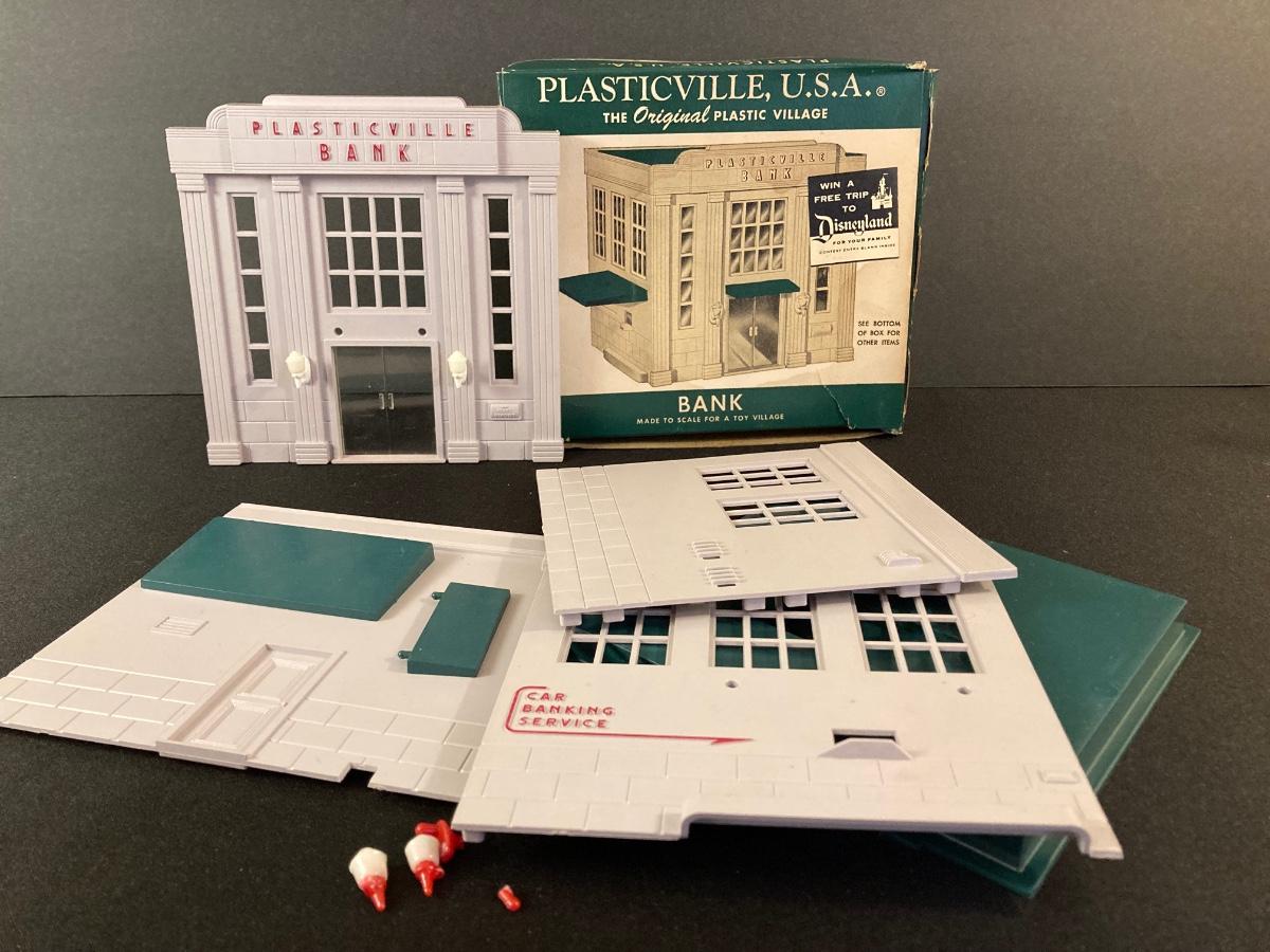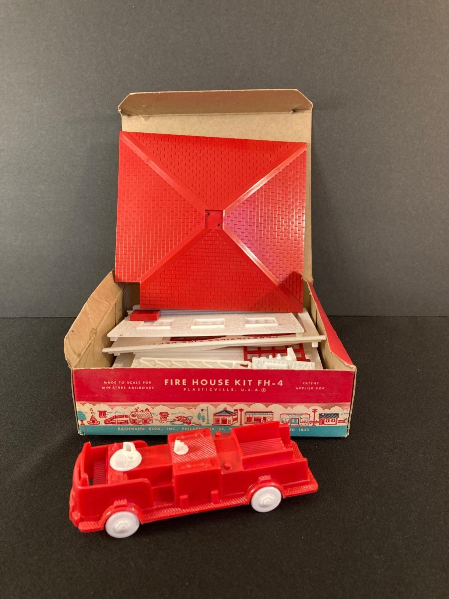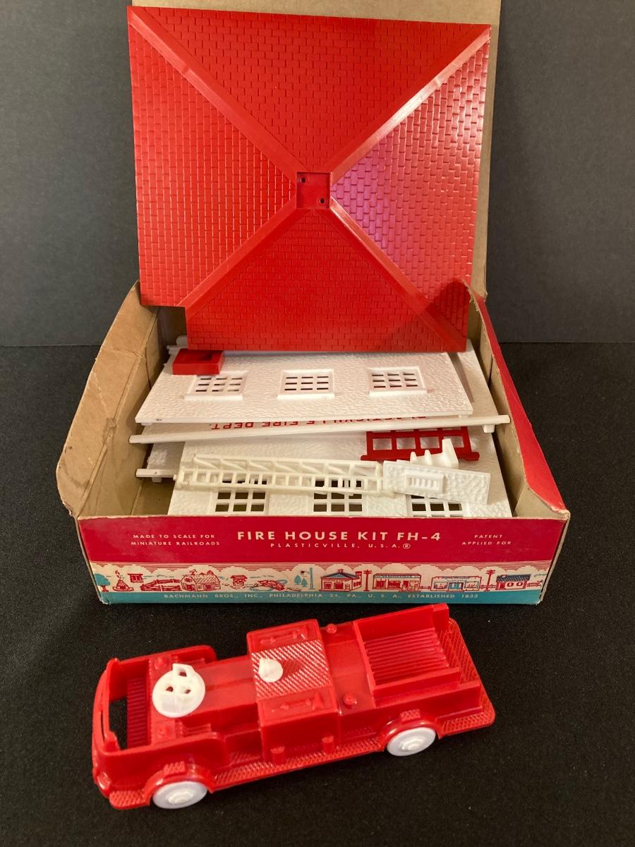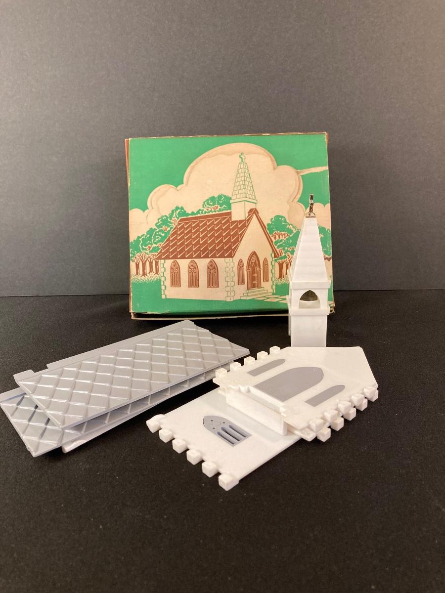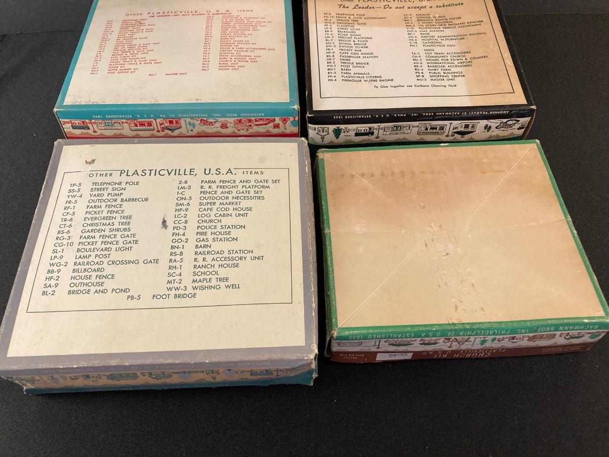 LOT 247J: Plasticville Kit Collection - Church, Police Dept., Bank, Fire House and Hardware / Pharmacy