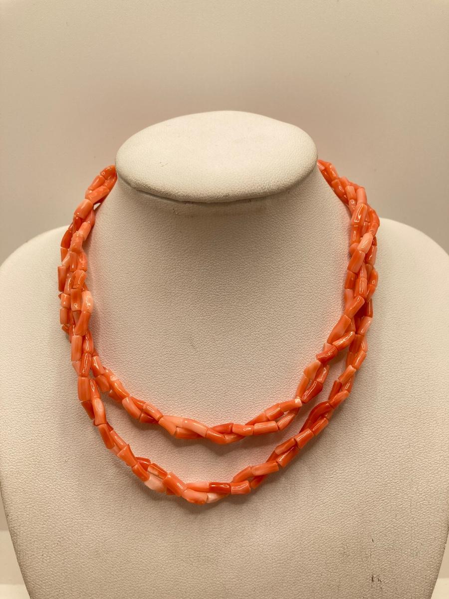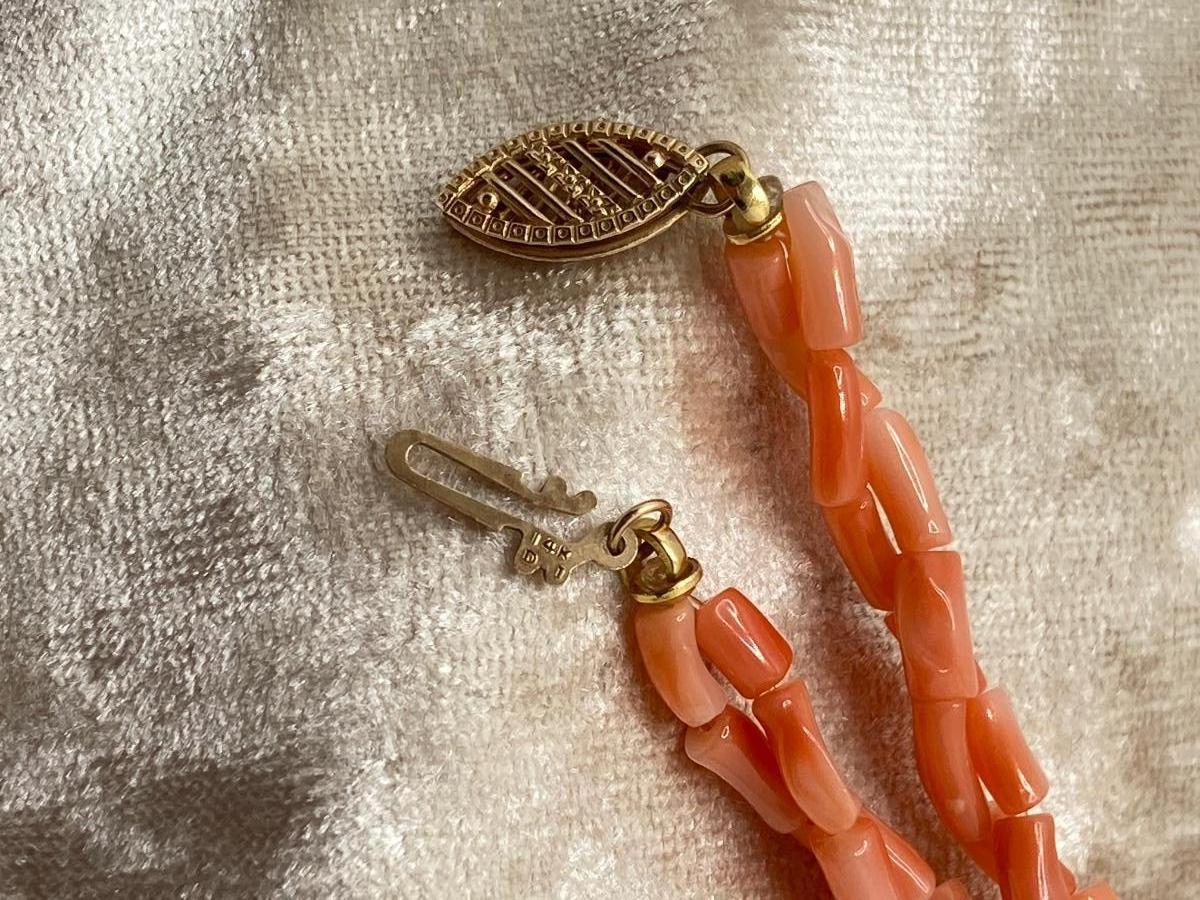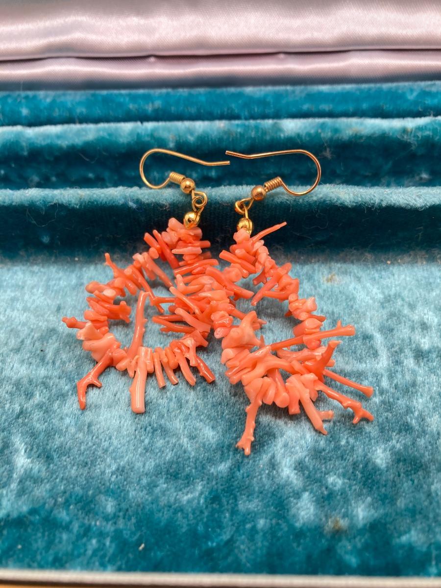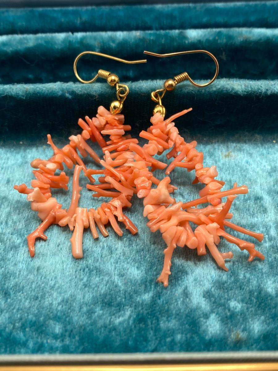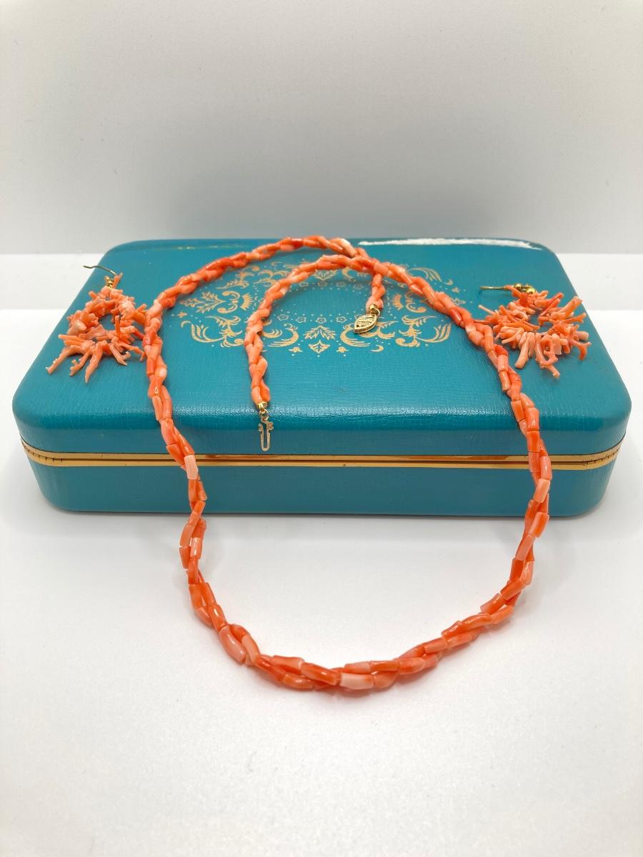 LOT 255J: Vintage Coral Necklace 14k clasp, Branch Coral Pierced Earrings & Vintage Jewelry Box