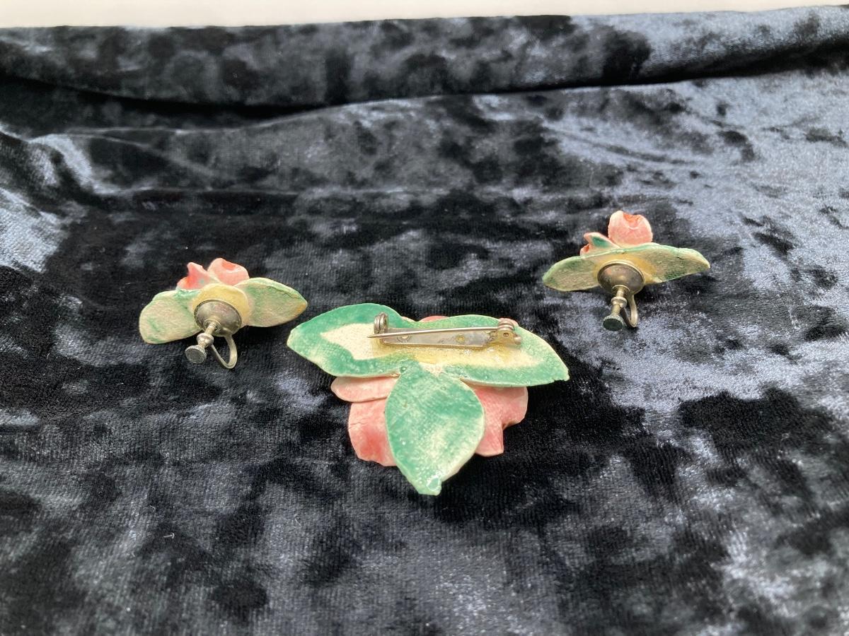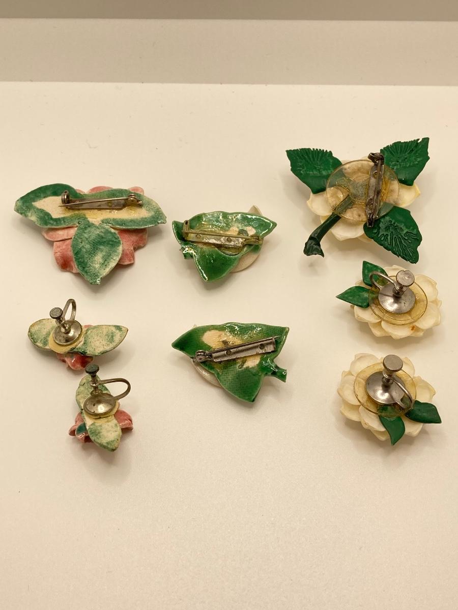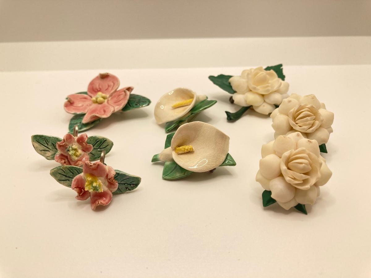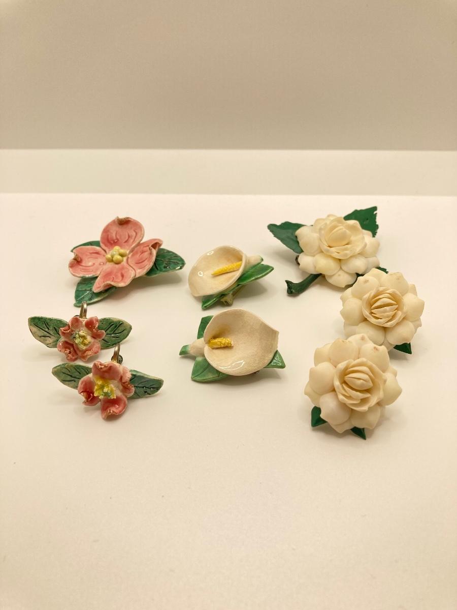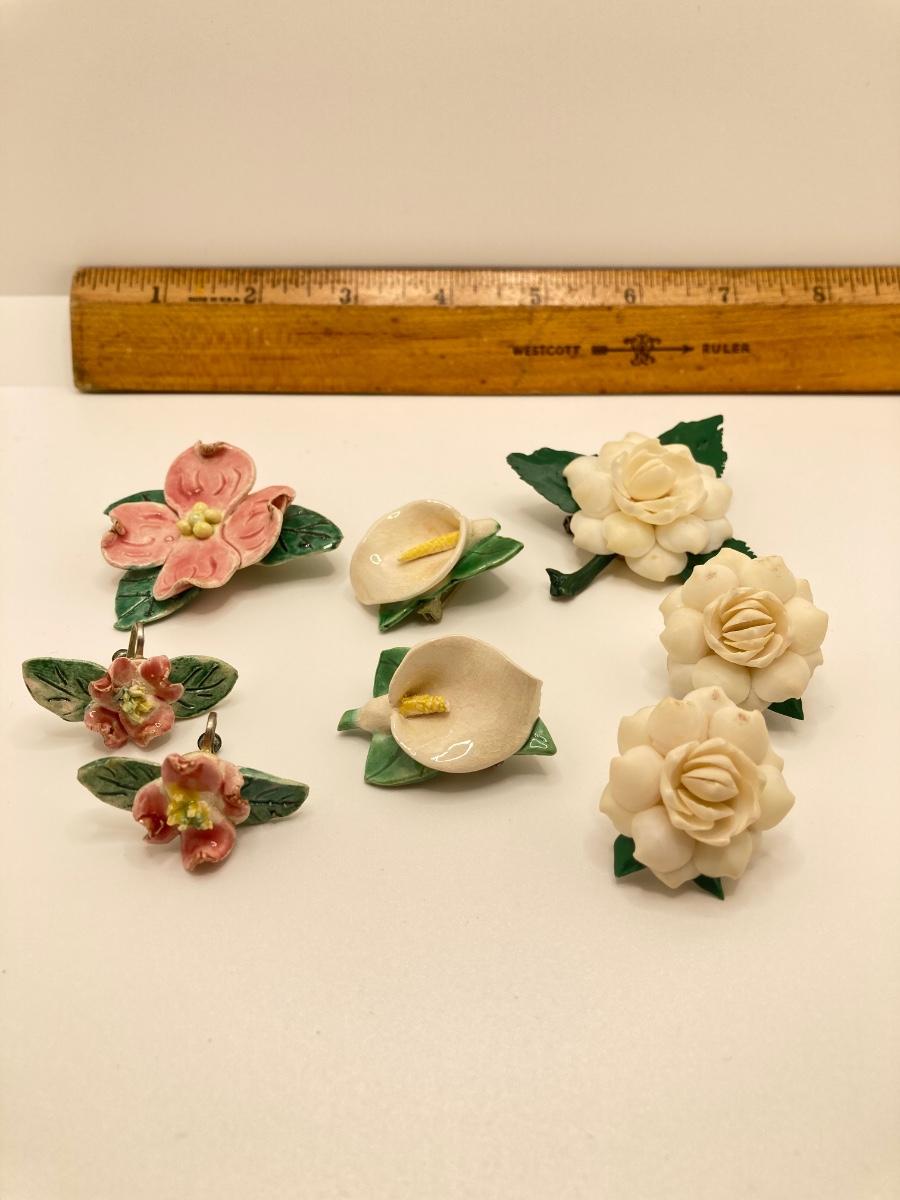 LOT 260J: Vintage Handcrafted and Hand Painted Porcelain Flower Brooches with Matching Earring