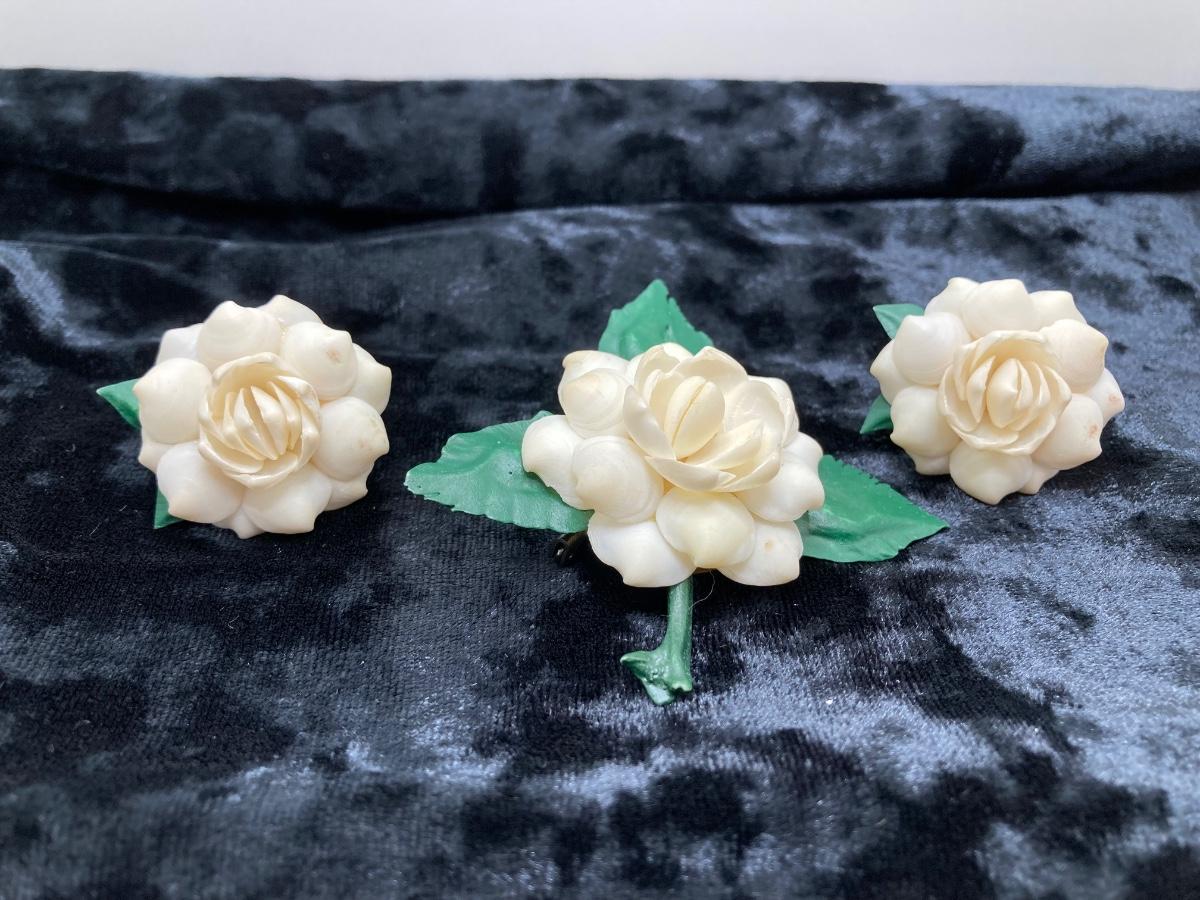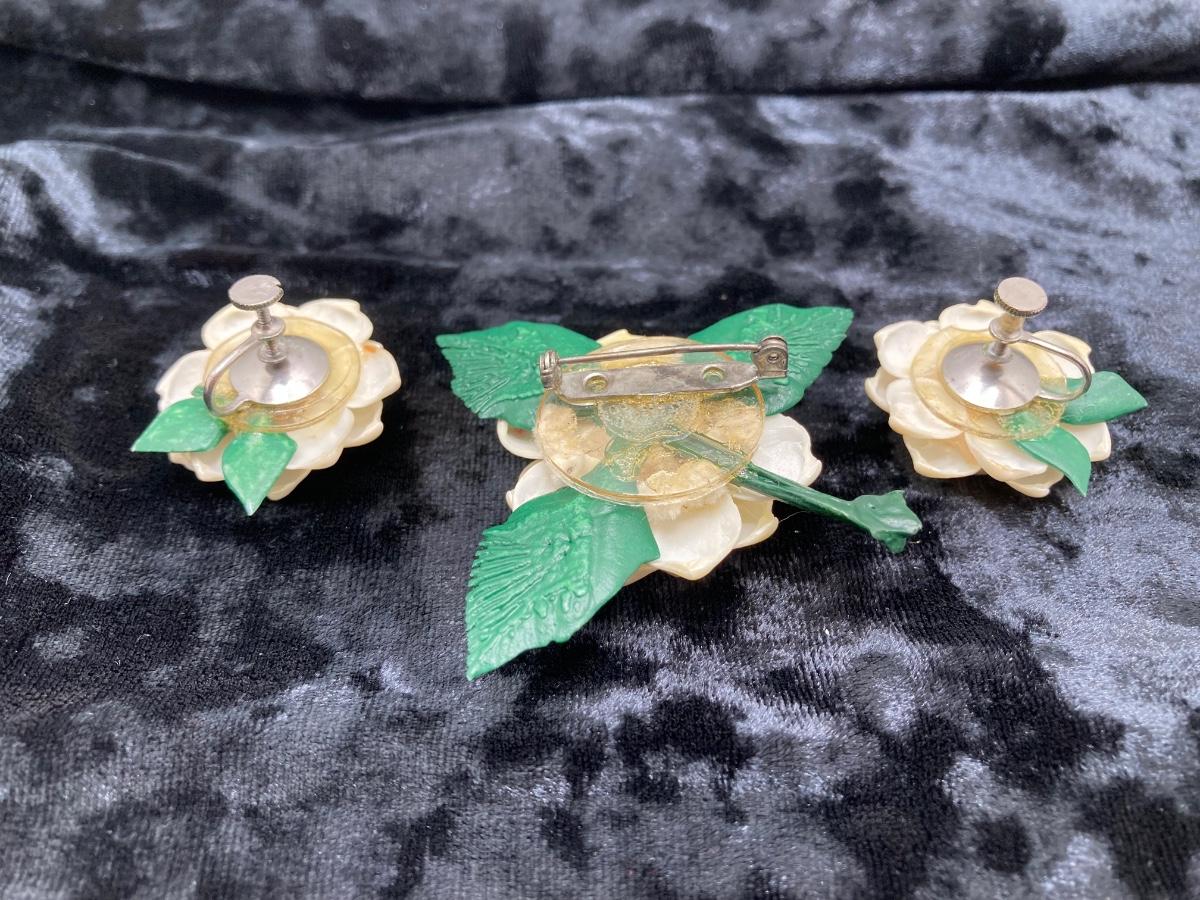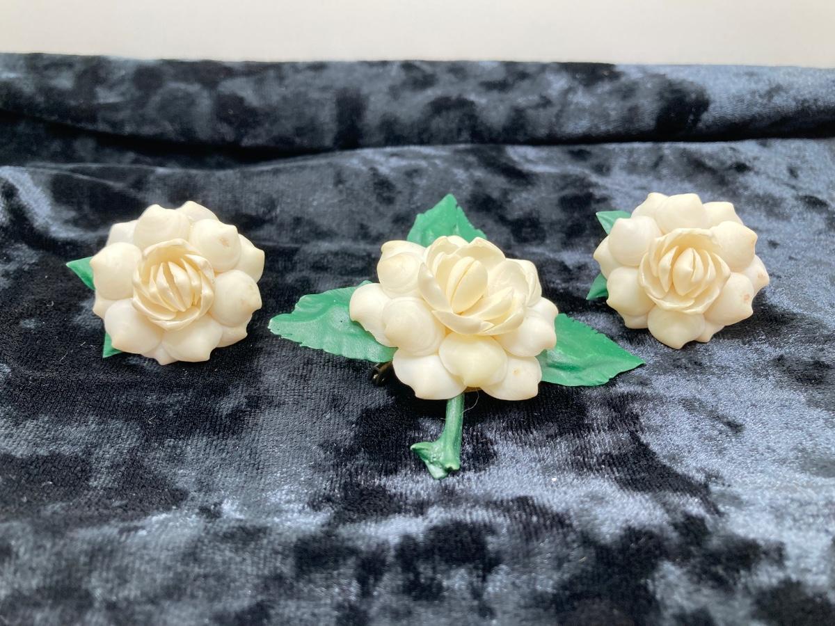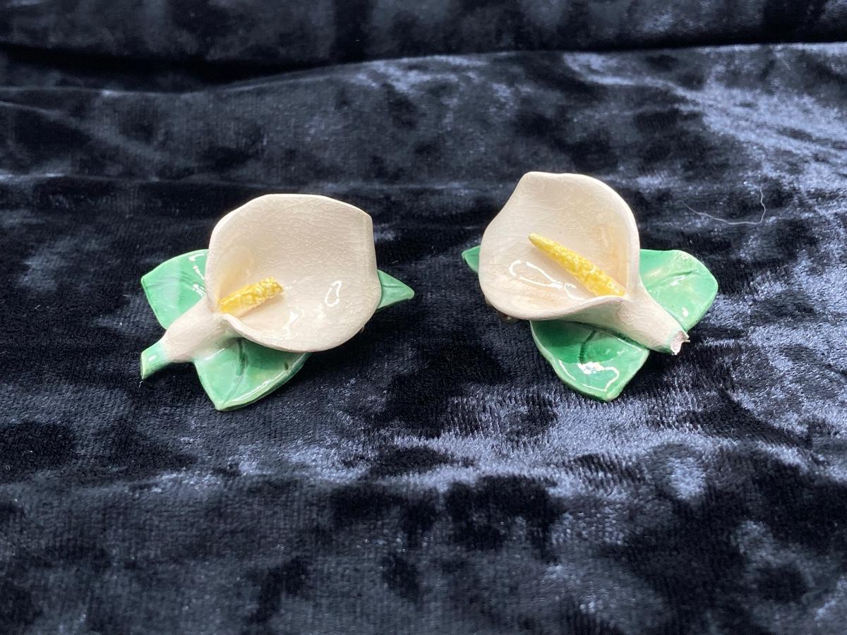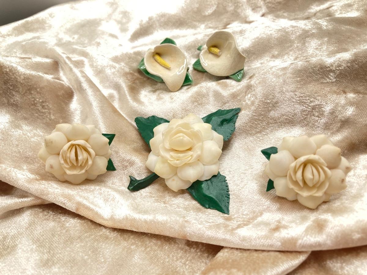 LOT 260J: Vintage Handcrafted and Hand Painted Porcelain Flower Brooches with Matching Earring