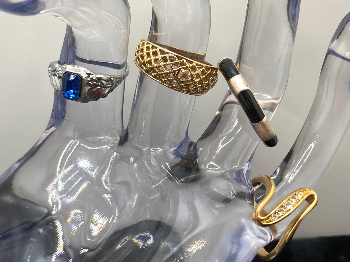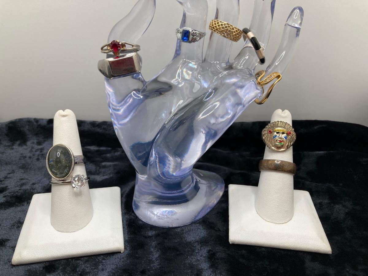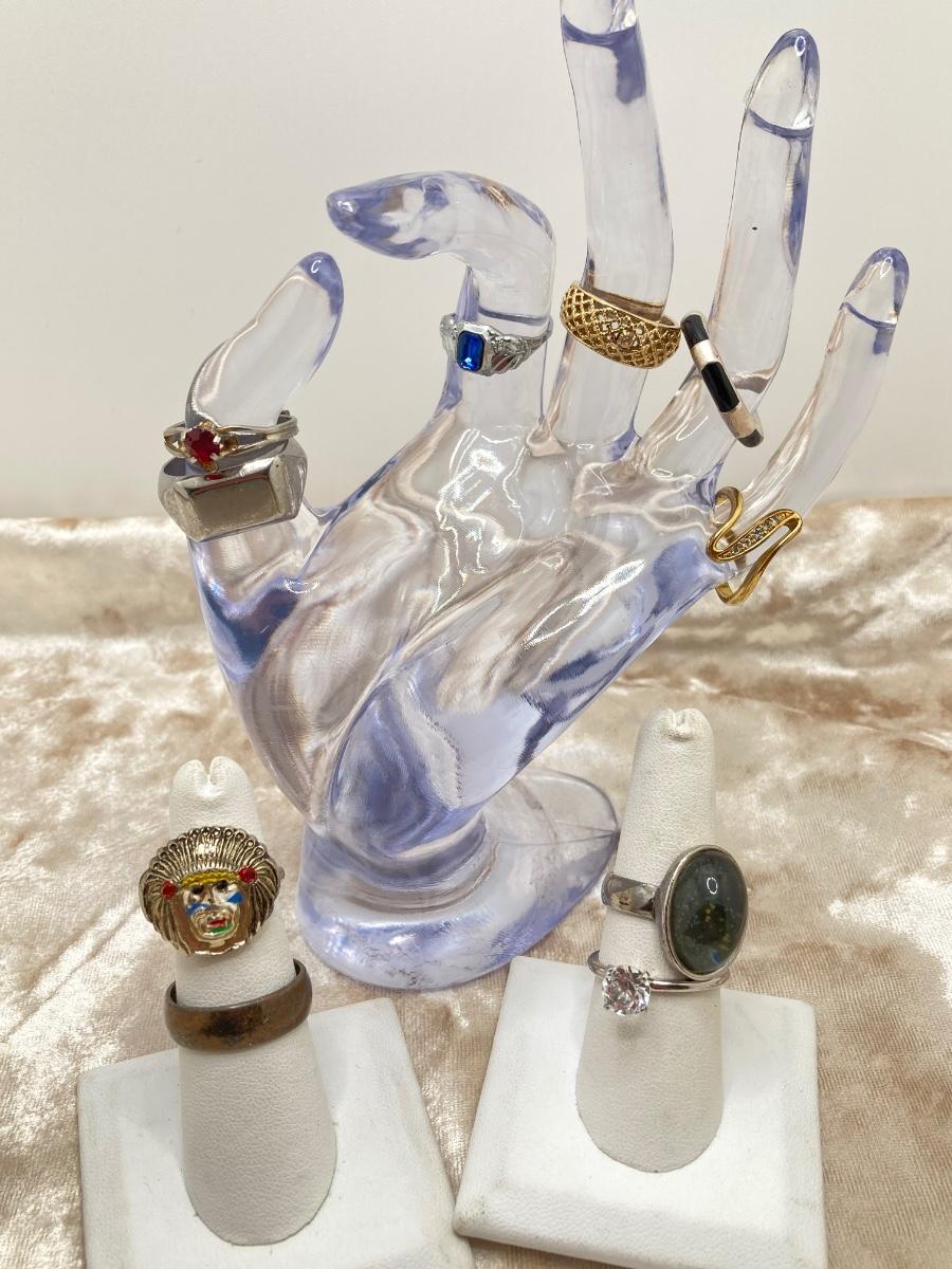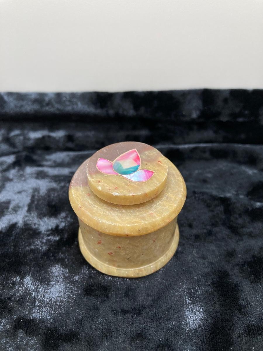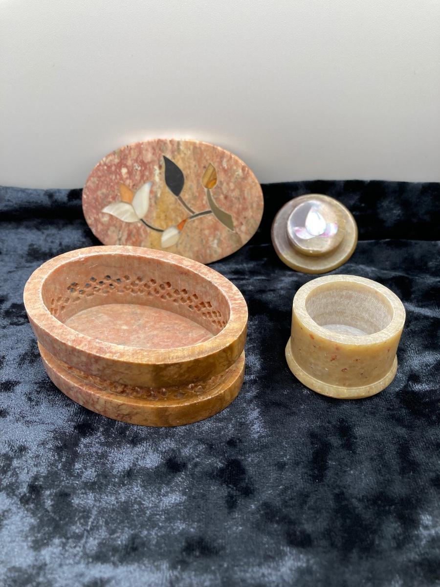 LOT 265J: Made in India Mother of Pearl Inlay Trinket Boxes with a Collection of Rings