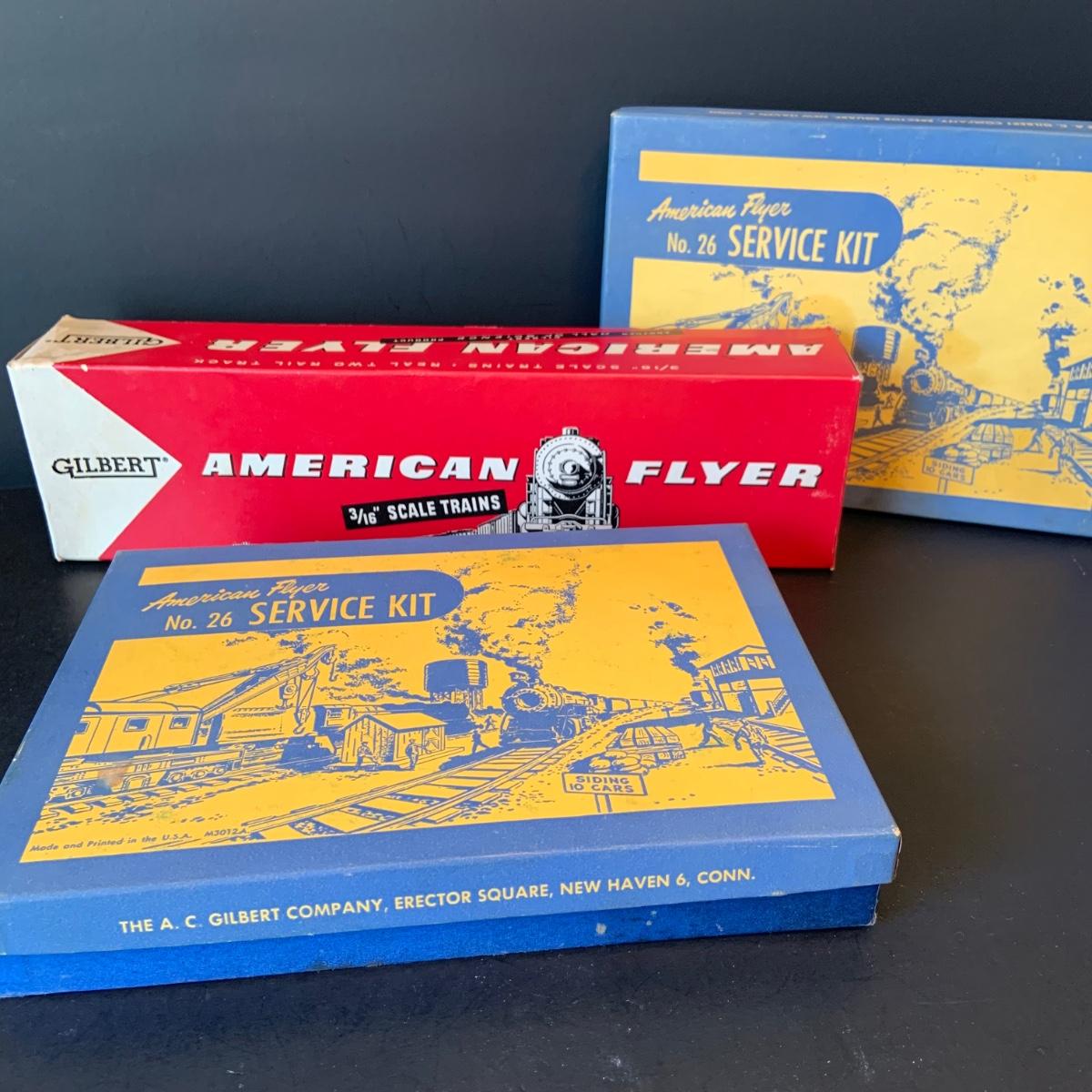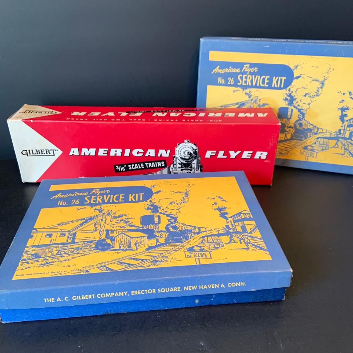 LOT:273G: VintageToy Railroad - 2 American Flyer Service Kit and an American Flyer Service Car