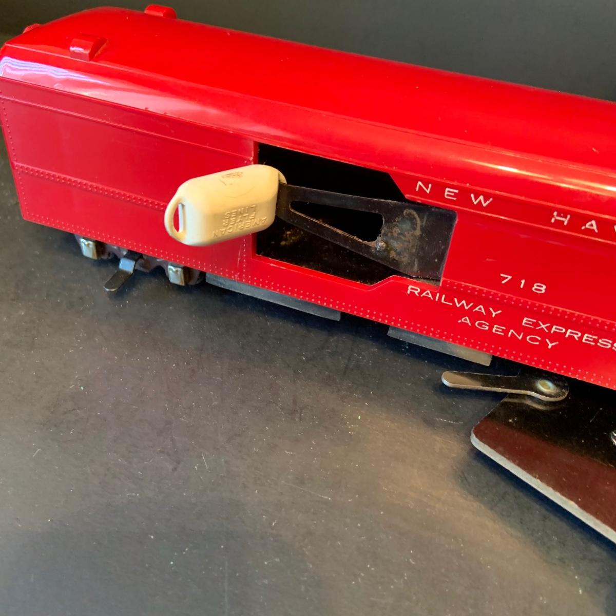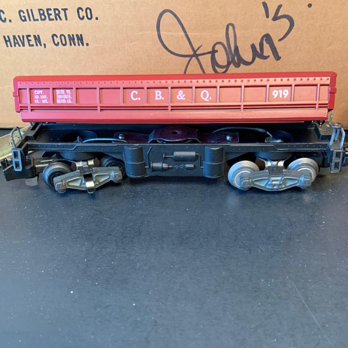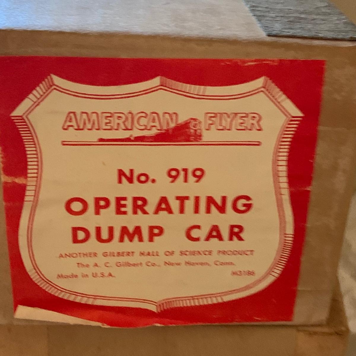 LOT:279G: American Flyer Train Cars - Operating Dump Car and Mail Pick-up Car