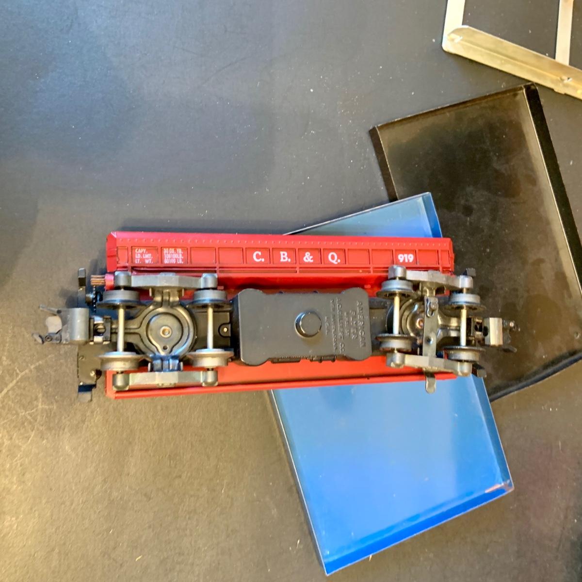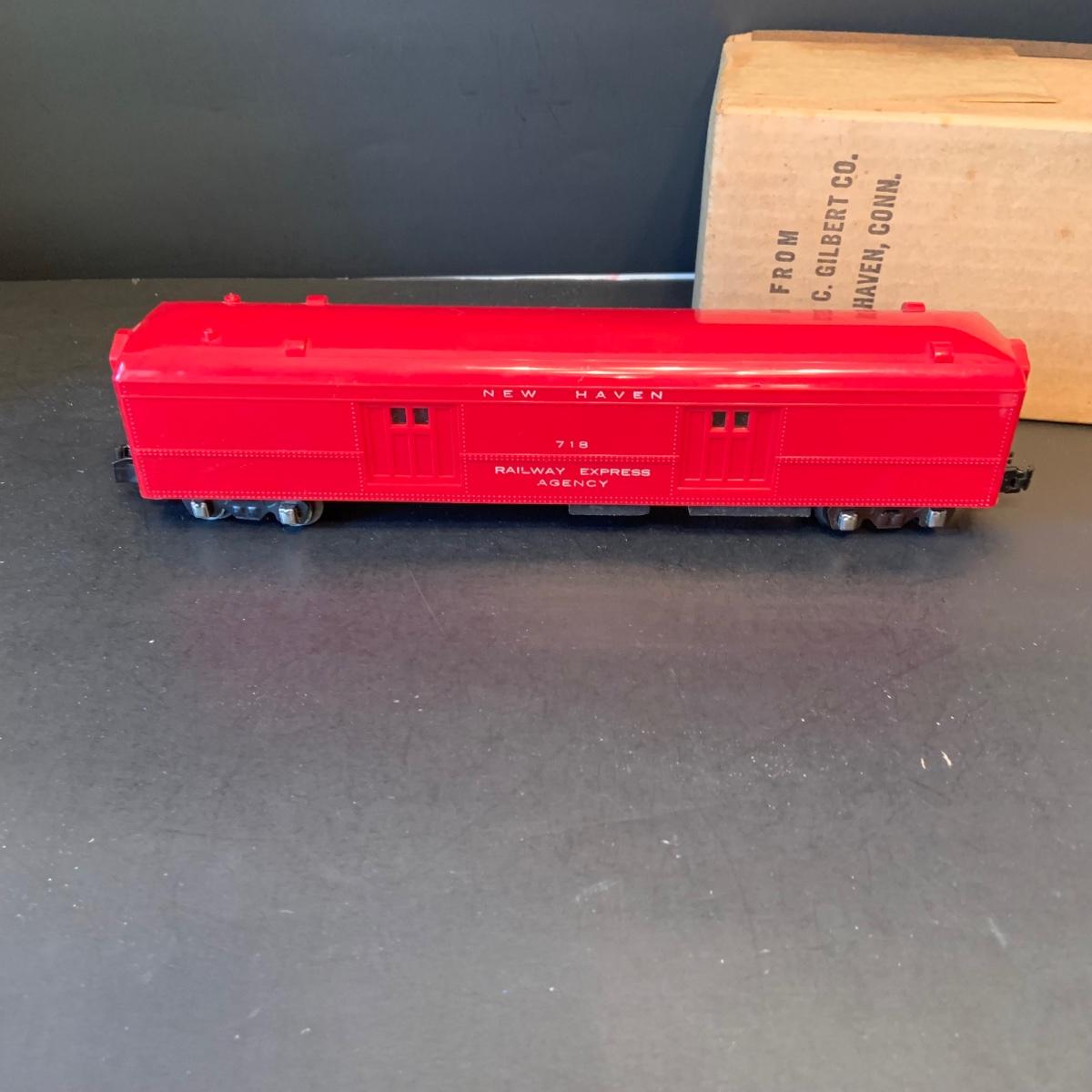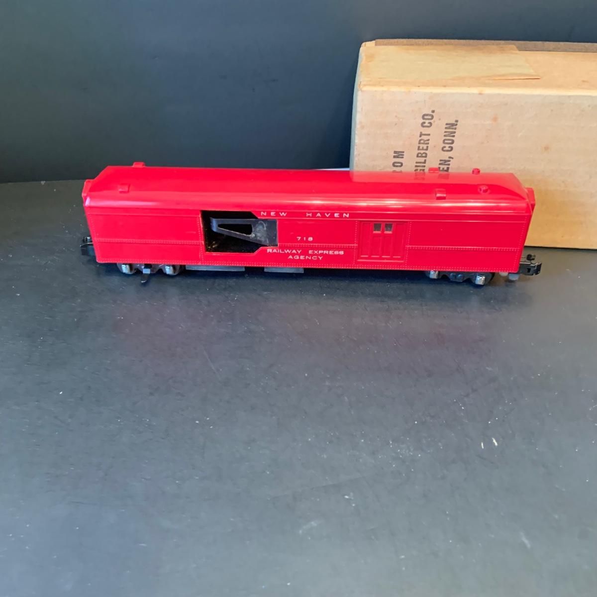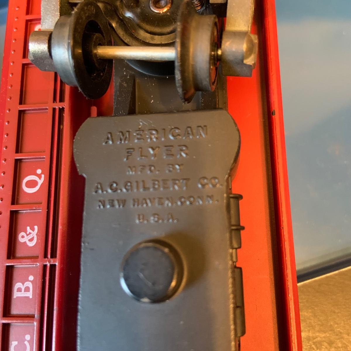 LOT:279G: American Flyer Train Cars - Operating Dump Car and Mail Pick-up Car