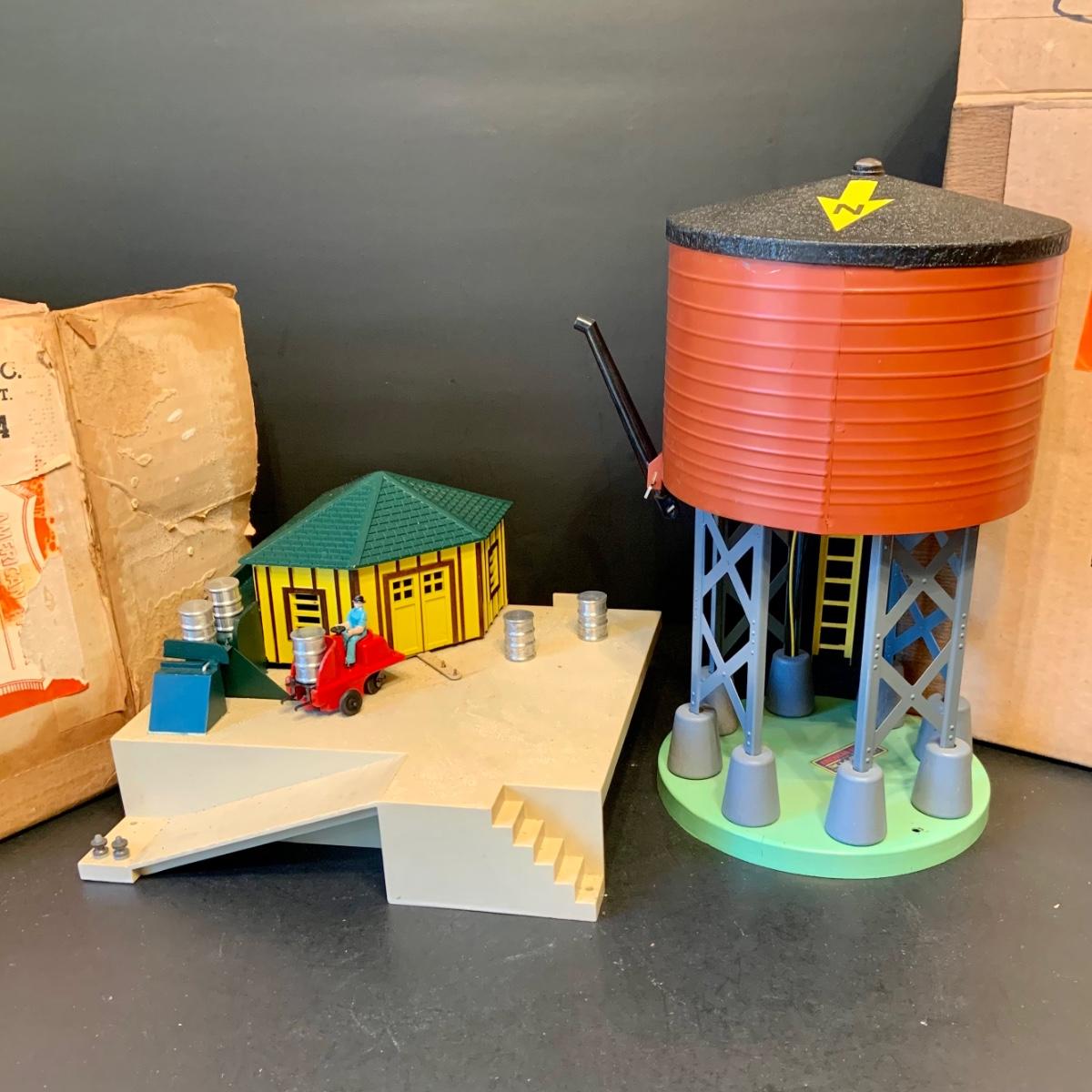 LOT:284G: Gilbert American Flyer Set Oil Drum Loader and Water Tank