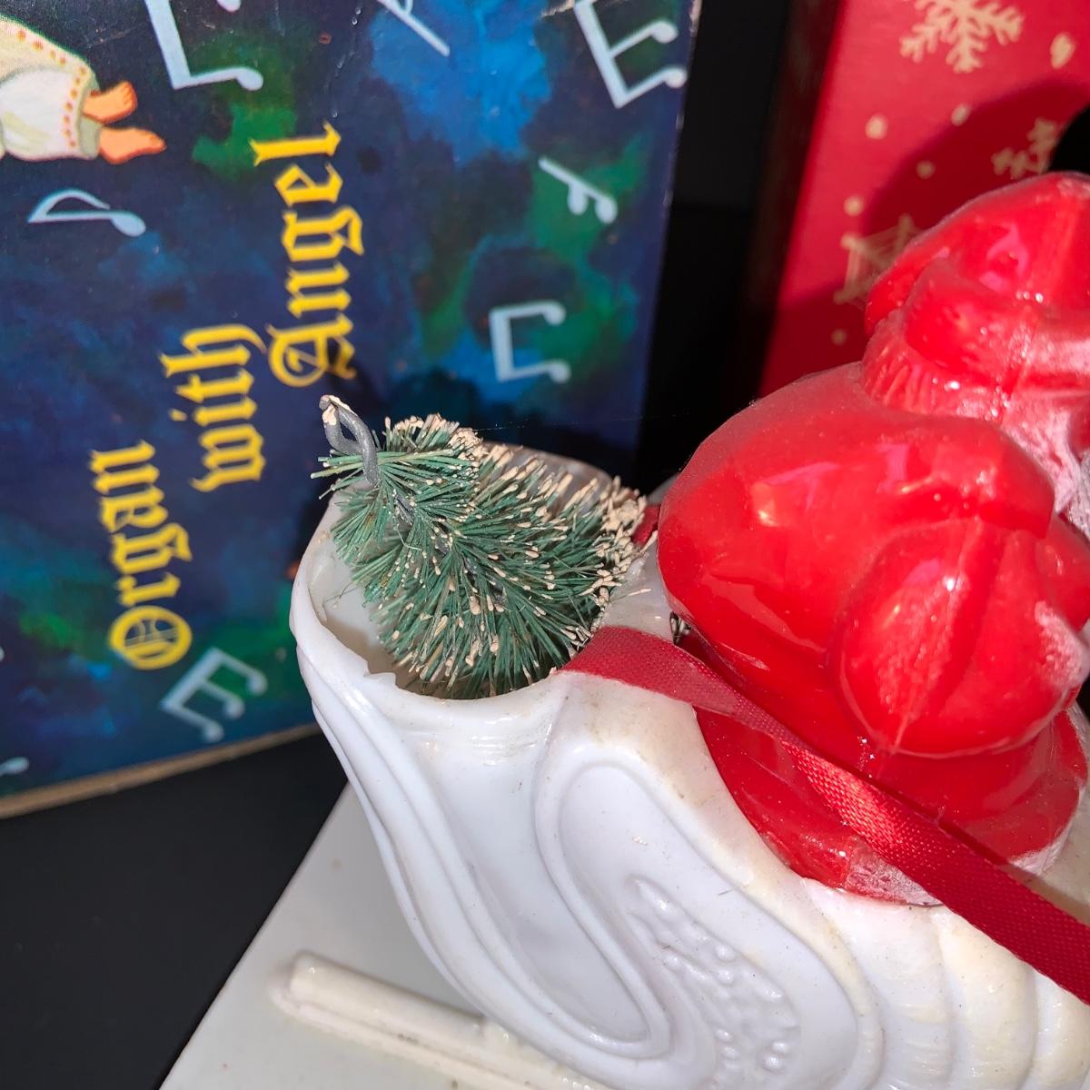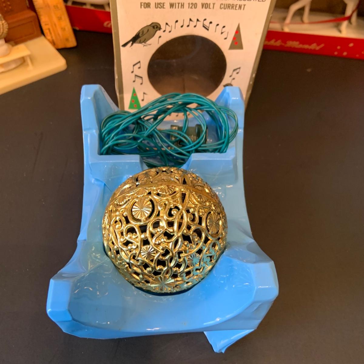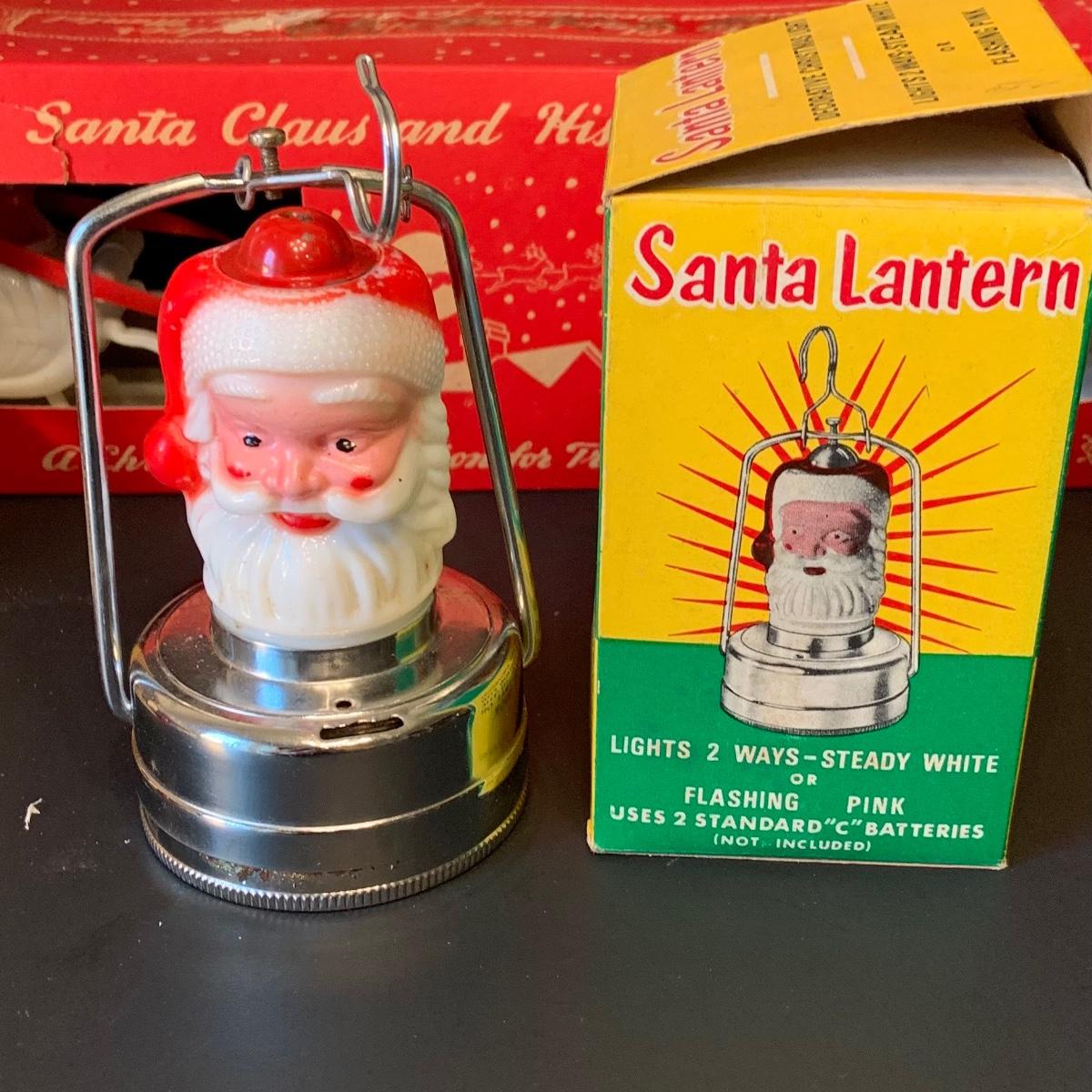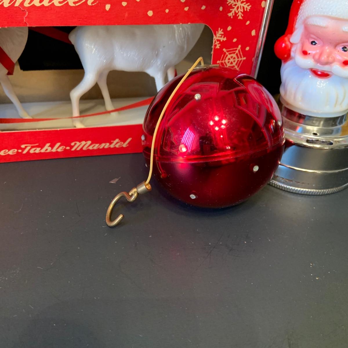 LOT:292G: Vintage Christmas Decor Including Including Plastic Bobble Head Reindeer, Santa's Sleigh, Musical Ornaments, Santa Head Lanter and More
