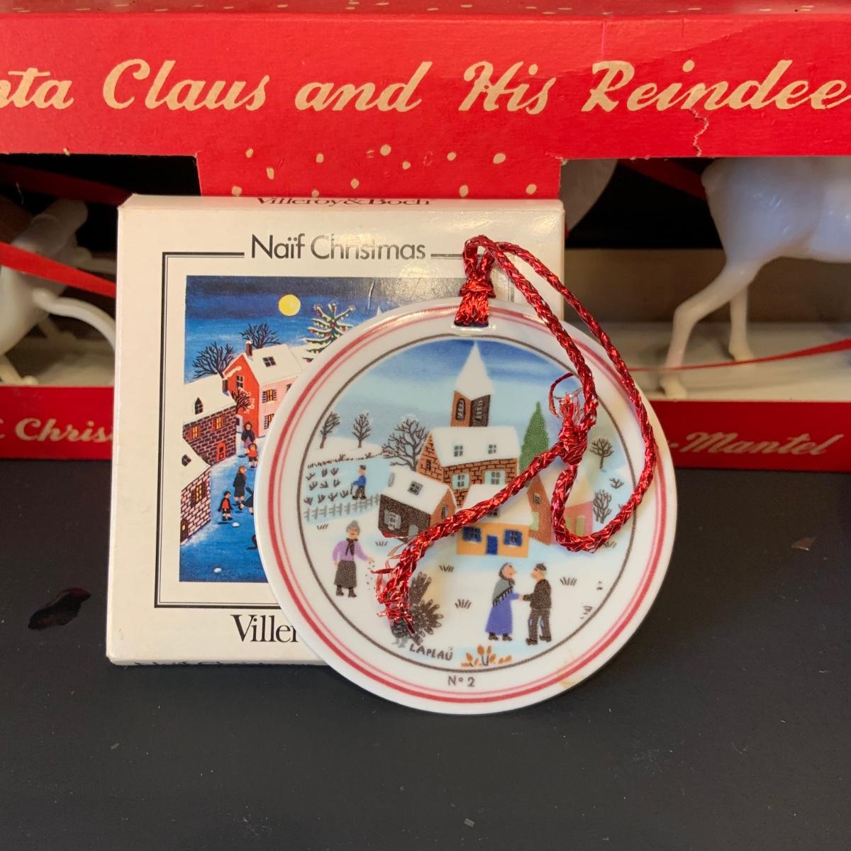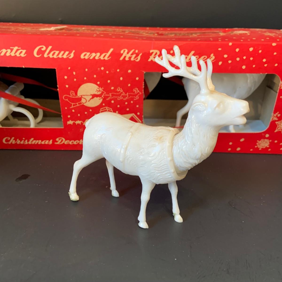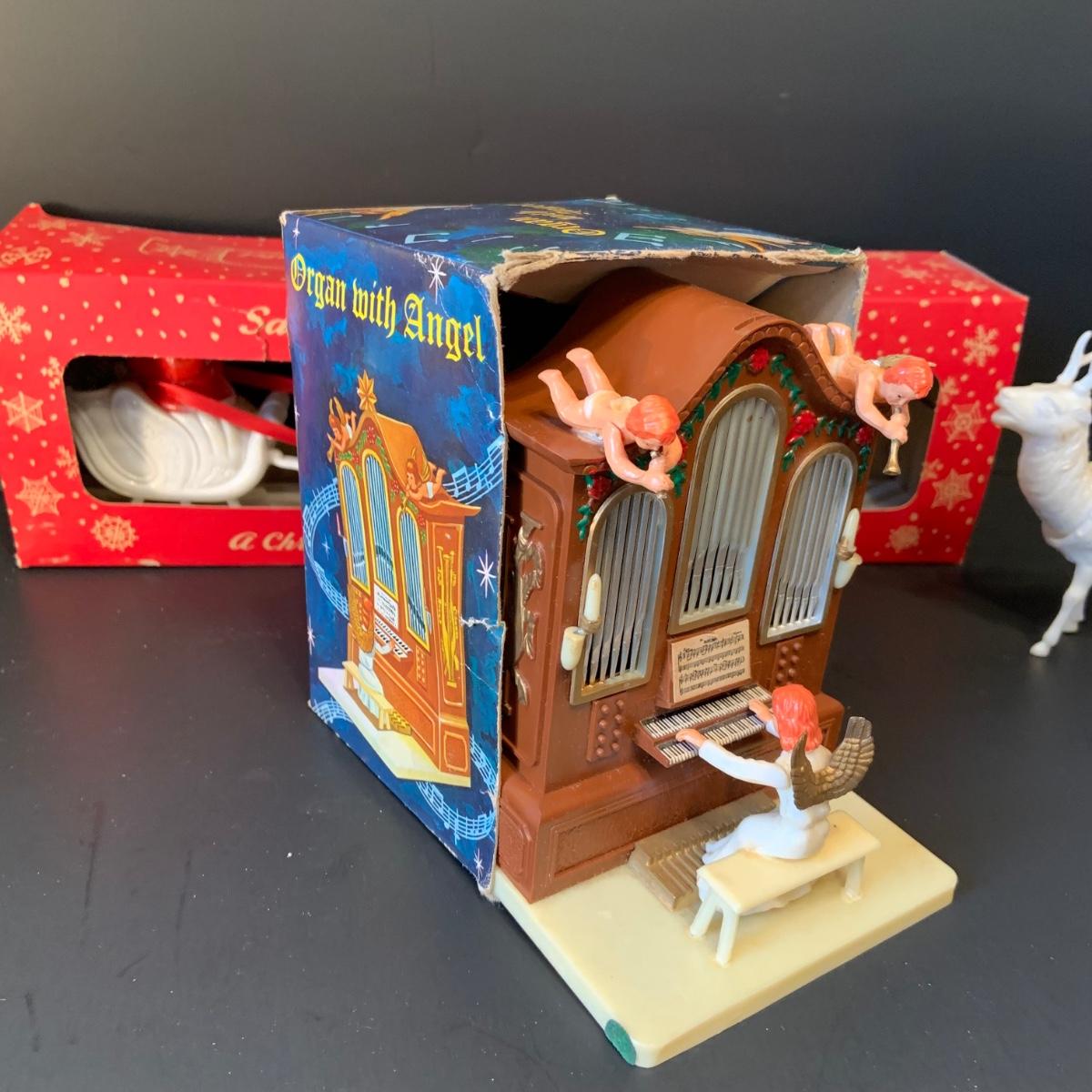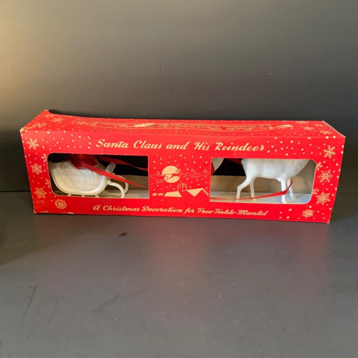 LOT:292G: Vintage Christmas Decor Including Including Plastic Bobble Head Reindeer, Santa's Sleigh, Musical Ornaments, Santa Head Lanter and More