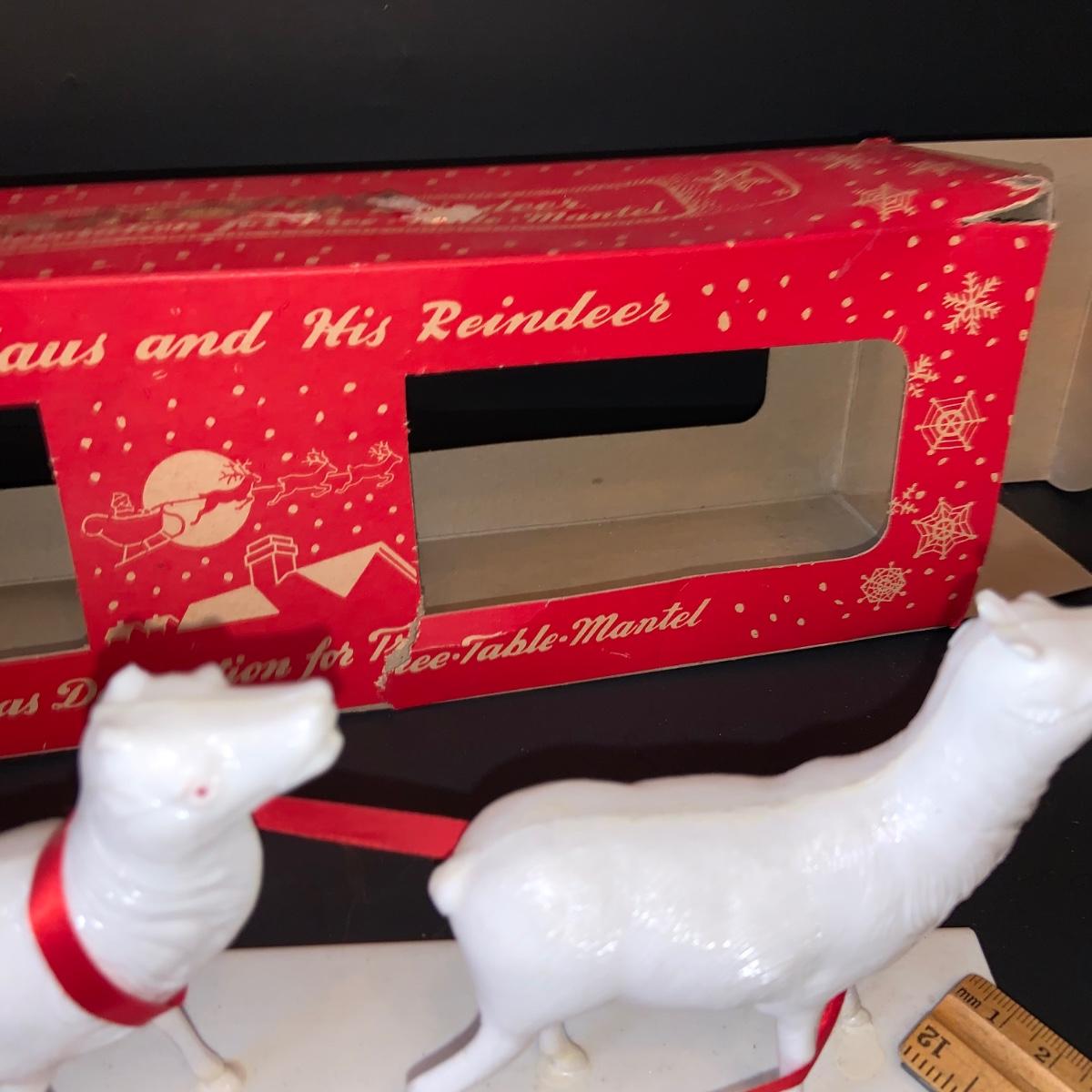 The Reindeer on Santa's Sleight are missing antlers Please see all pictures as they are the best representation of the items. The pictures show condition, measurements if taken, and what is included in the lot. Due to the large amount that we photograph and the time frame, we are not always able to take measurements. All items unless noted, are pre-owned and have been used. If you purchased furniture, you must bring help. We do not allow one person to carry large furniture out on their own. Bring help, tools and a truck for the safety of our client’s homes, and your personal safety. Any damages that result to the property including walls, and floors due to moving of the furniture will be charged to the buyer. Company policy. Thank you.
