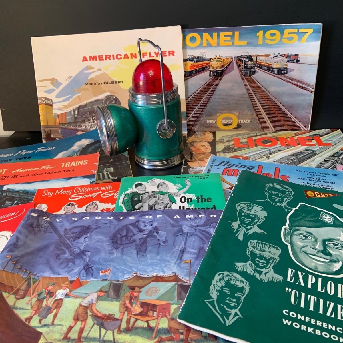 LOT:294G: Vintage Railroad Signal Lantern, Minature Railroad and Boy Scout Ephermera
