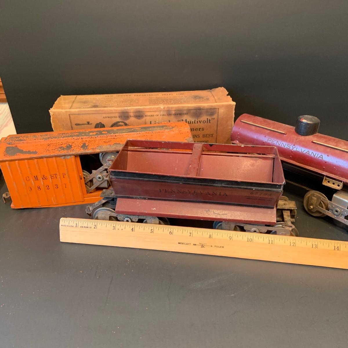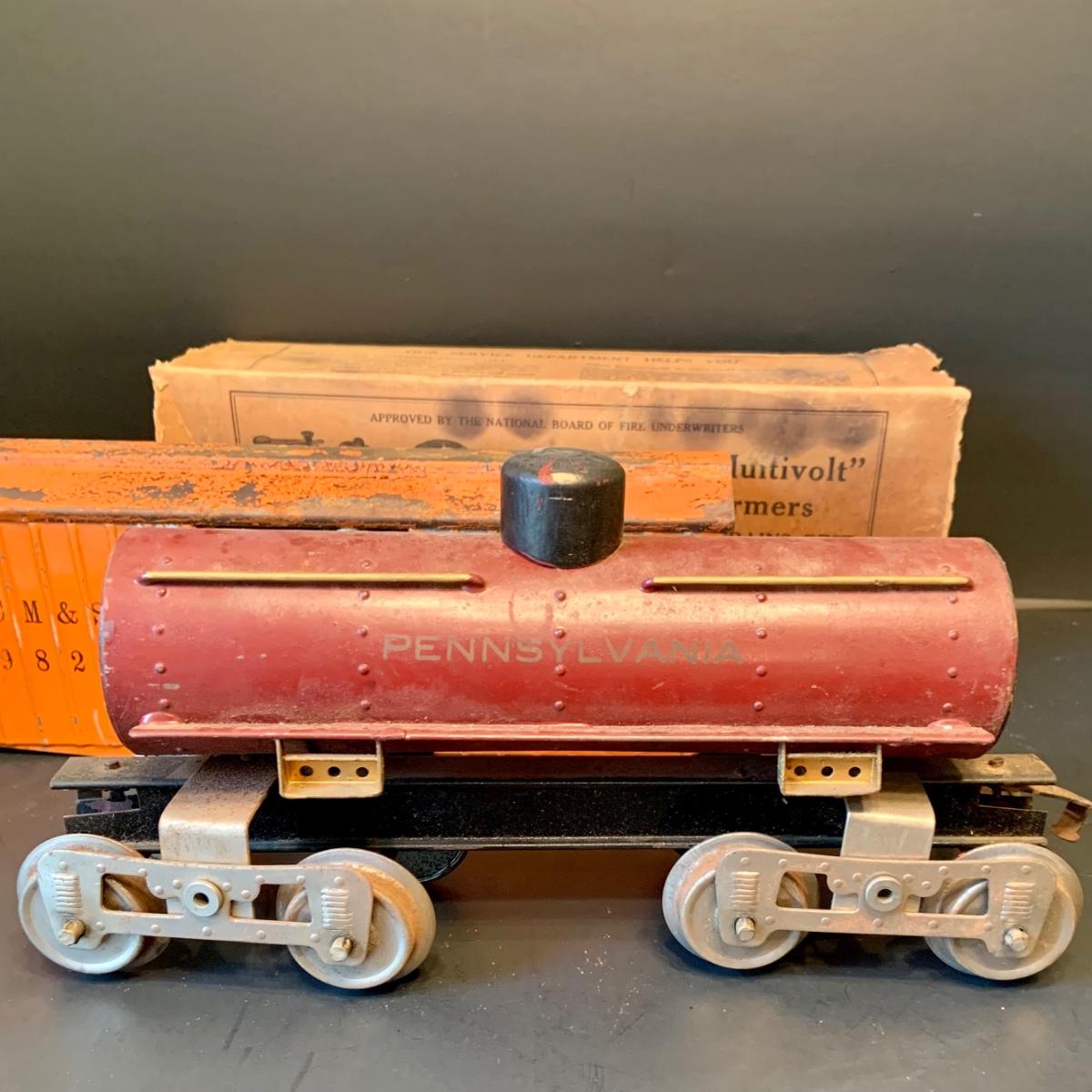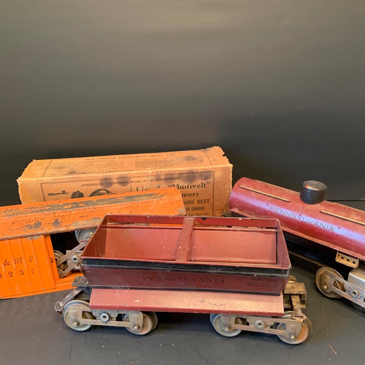 LOT:297G: Vintage Lionel Train Cars, Coal Car, Box Car and Tanker Car.