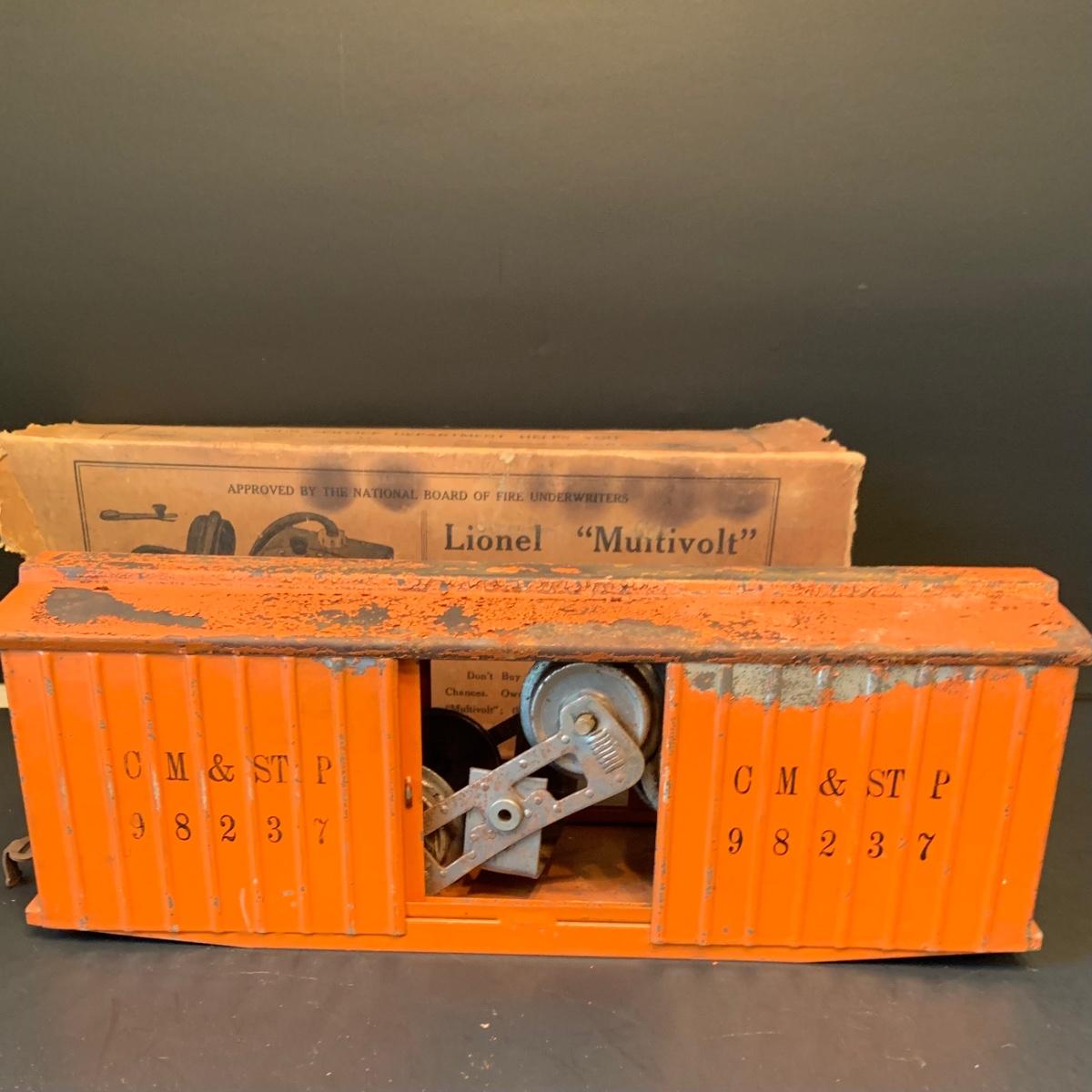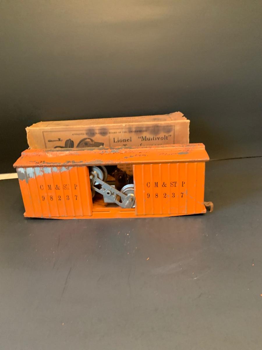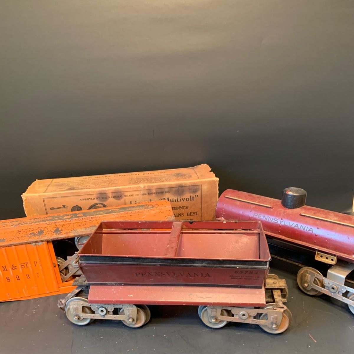 LOT:297G: Vintage Lionel Train Cars, Coal Car, Box Car and Tanker Car.