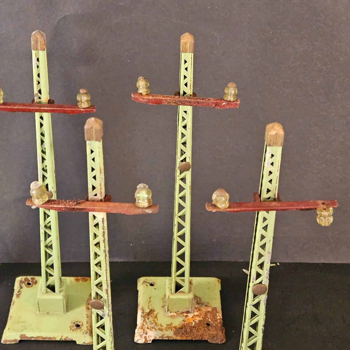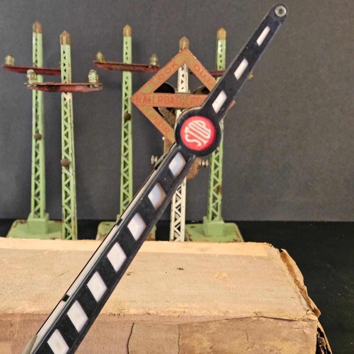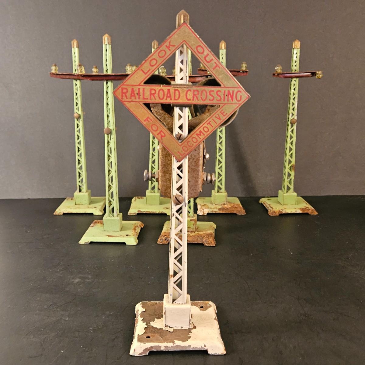 LOT 300S: Antique Lionel O Gauge Crossing Gate, Lionel Tinplate #60 Telegraph Poles, Lionel #69 Look Out