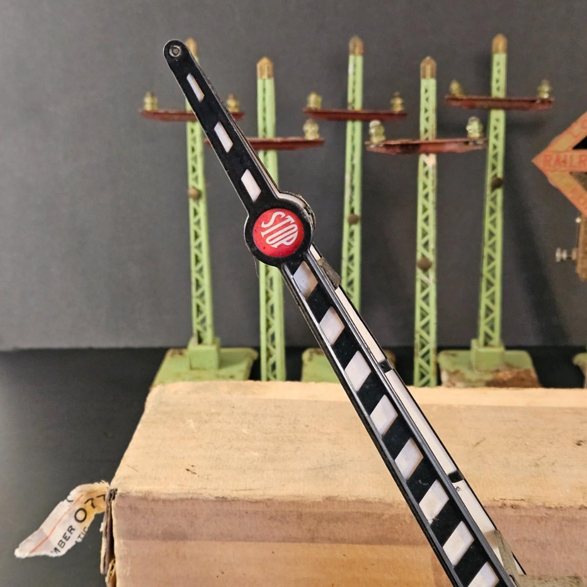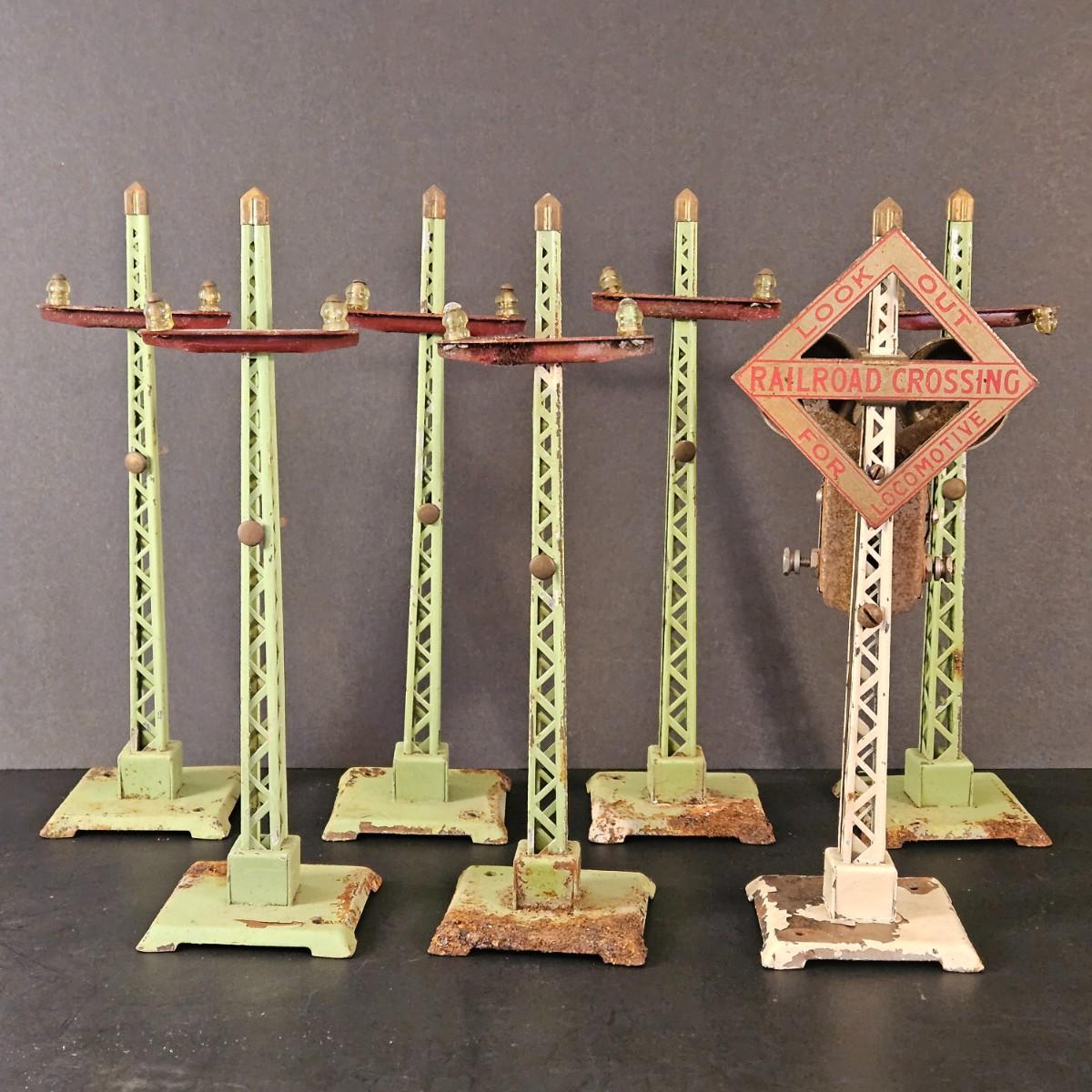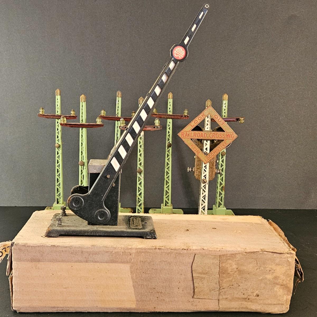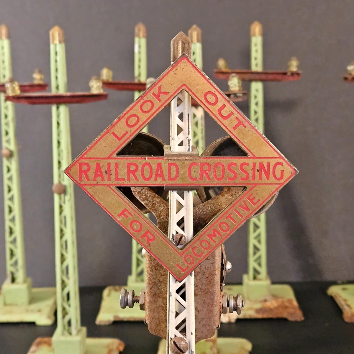 LOT 300S: Antique Lionel O Gauge Crossing Gate, Lionel Tinplate #60 Telegraph Poles, Lionel #69 Look Out