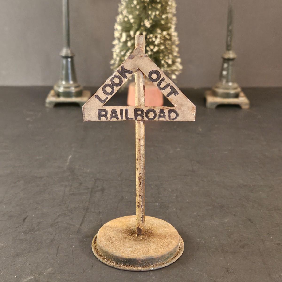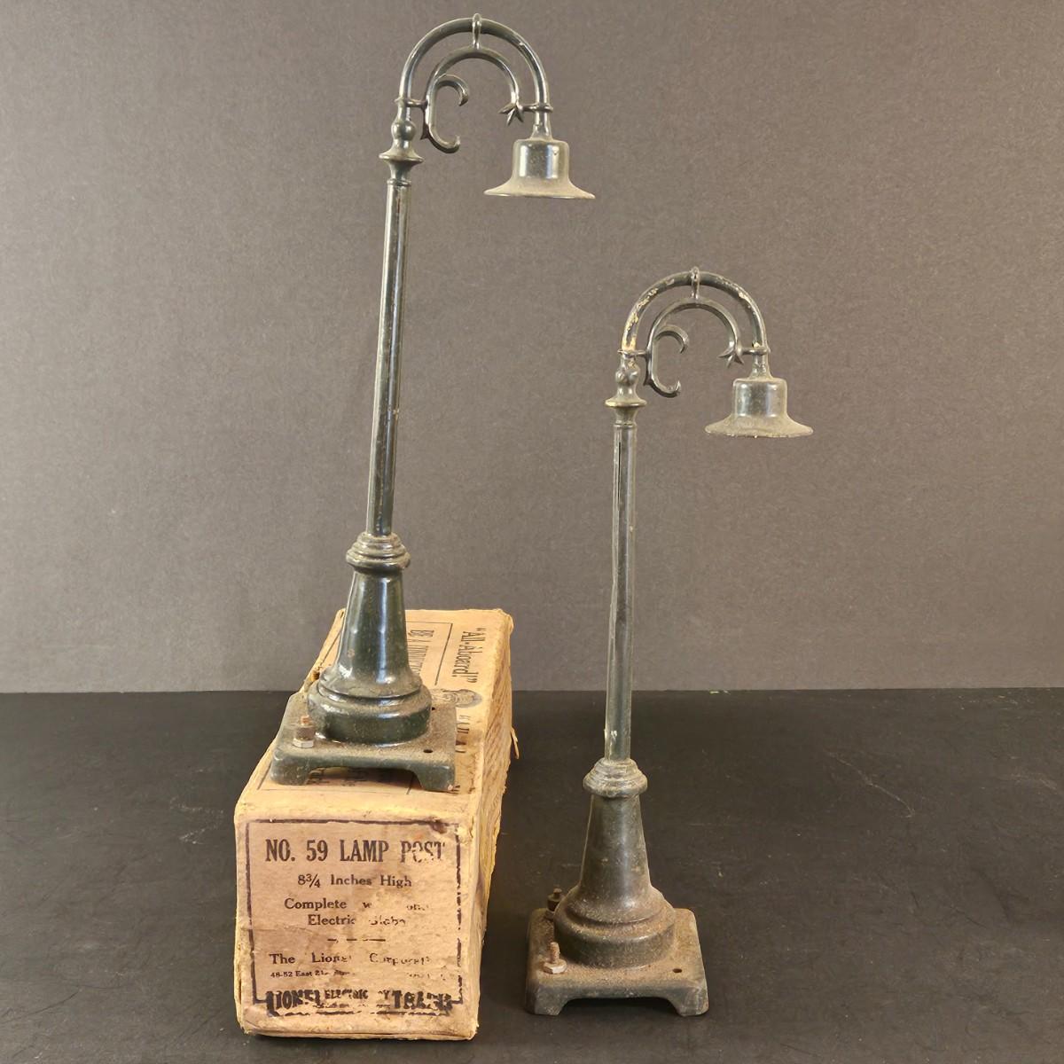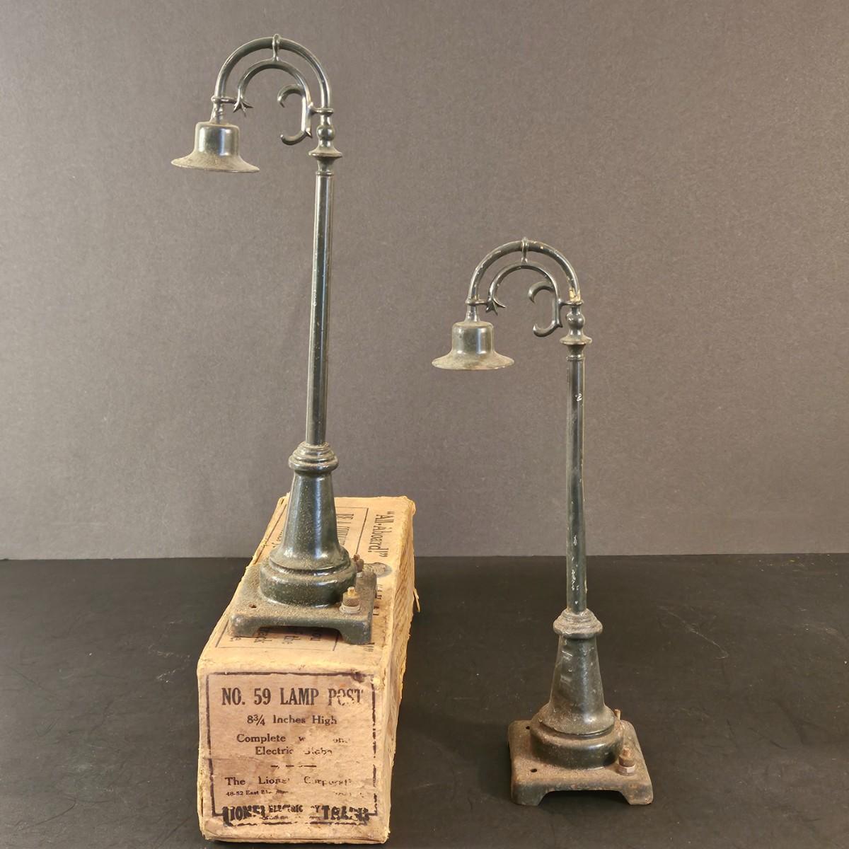 LOT 303S: Vintage Lionel #58, O Gauge Lamp Posts w/Box, Railroad Lookout Sign & Bottle Brush Tree
