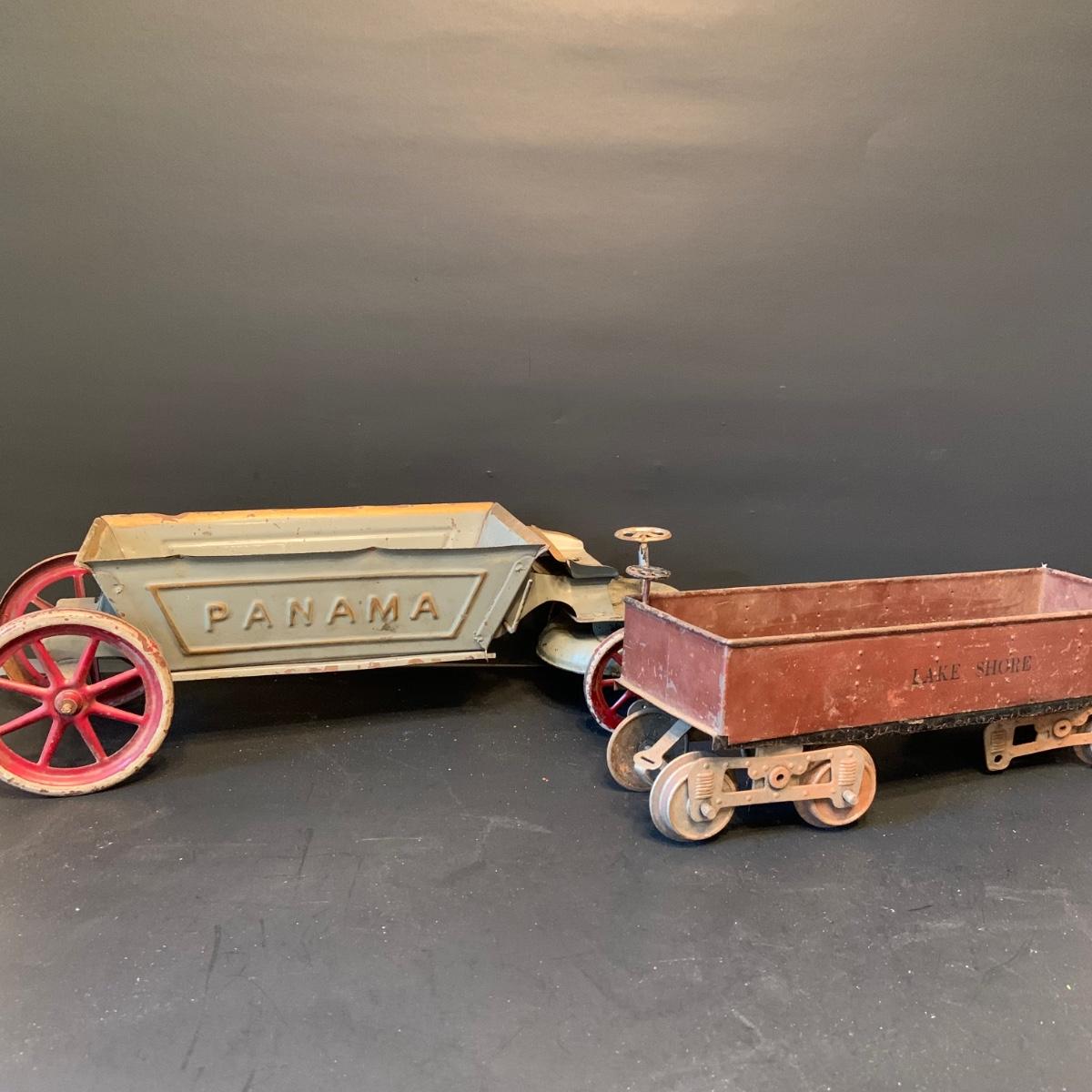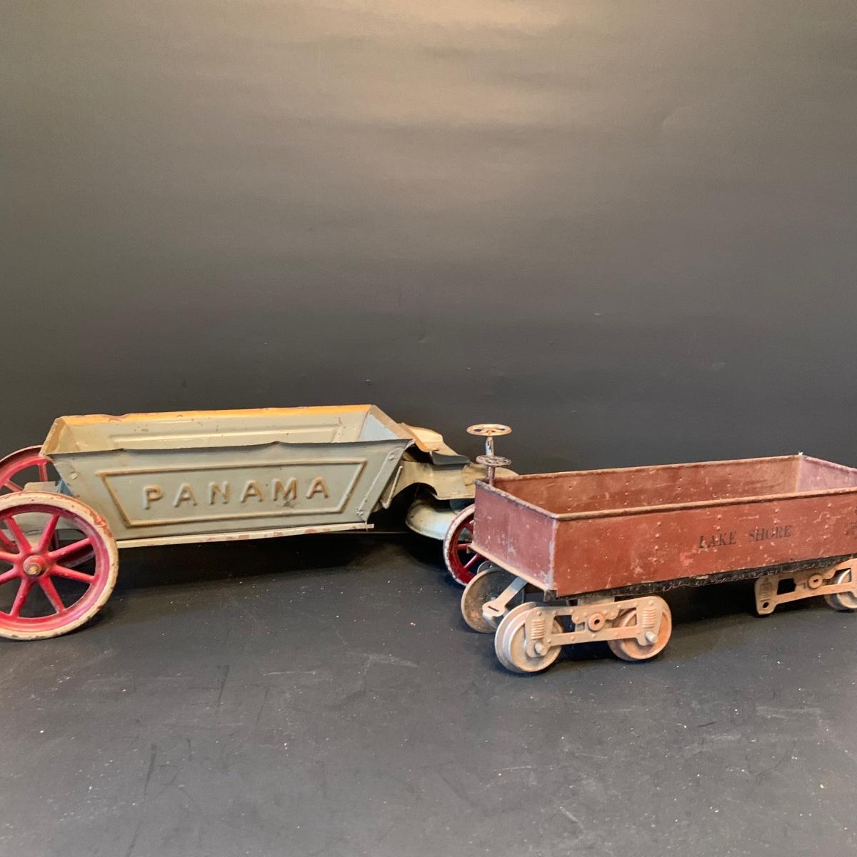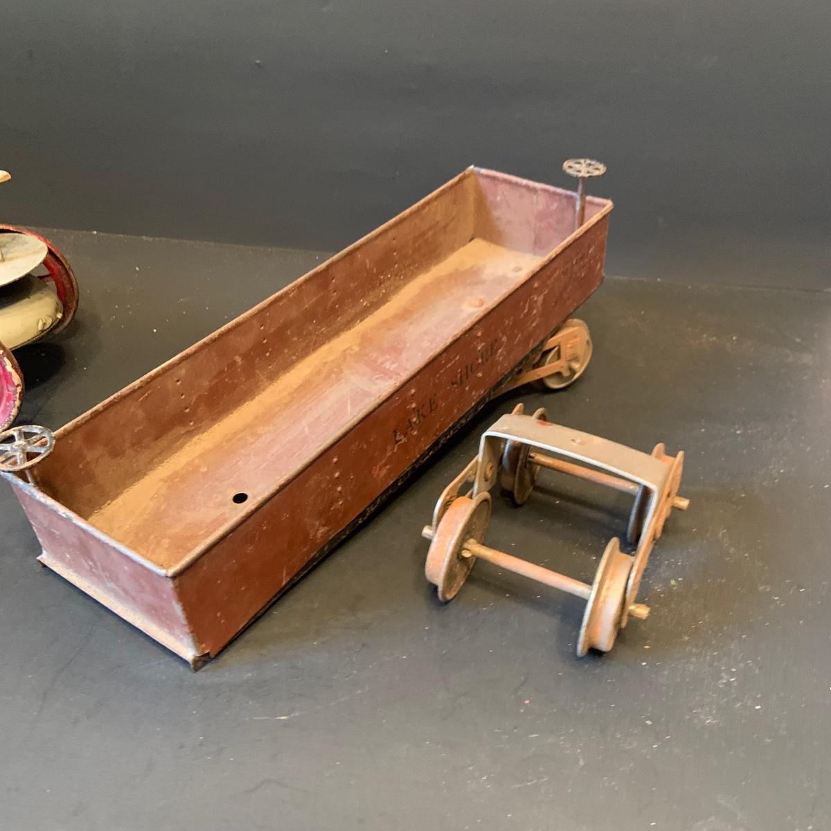 LOT:305G: Vintage Lionel Gondola Car and Vintage/Antique Steel Cart Truck