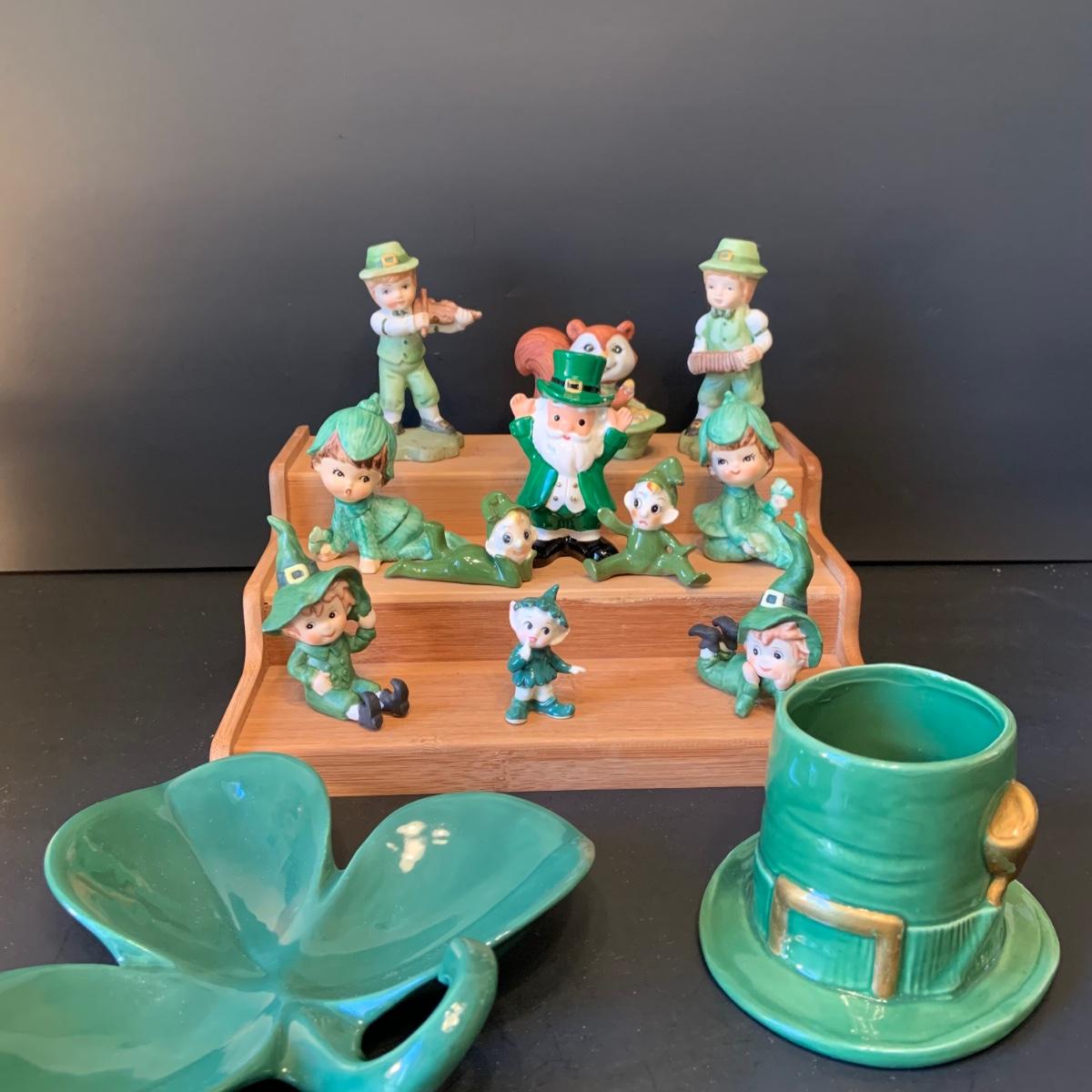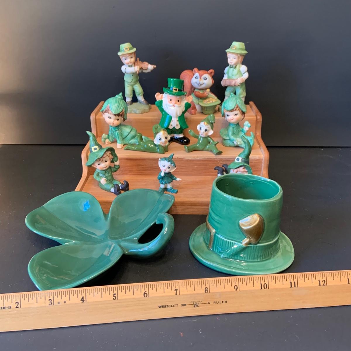 LOT:310G: Luck of the Irish Collection Featuring Vintage Leprechaun Pixie Figurines and More