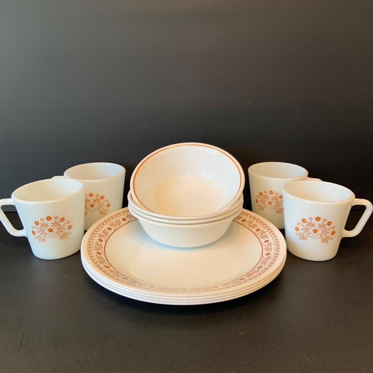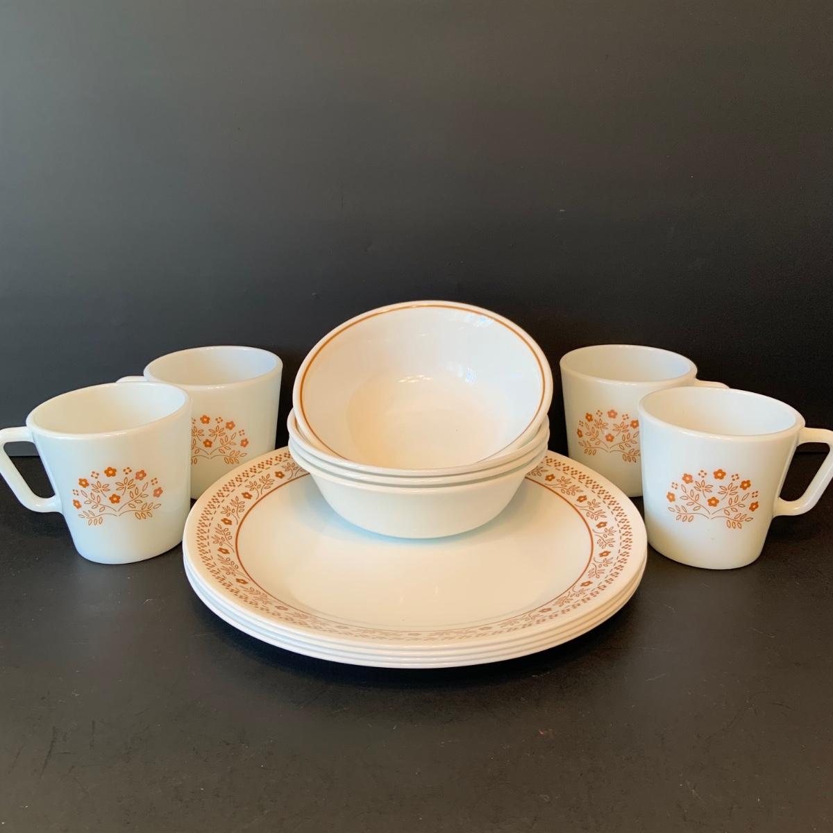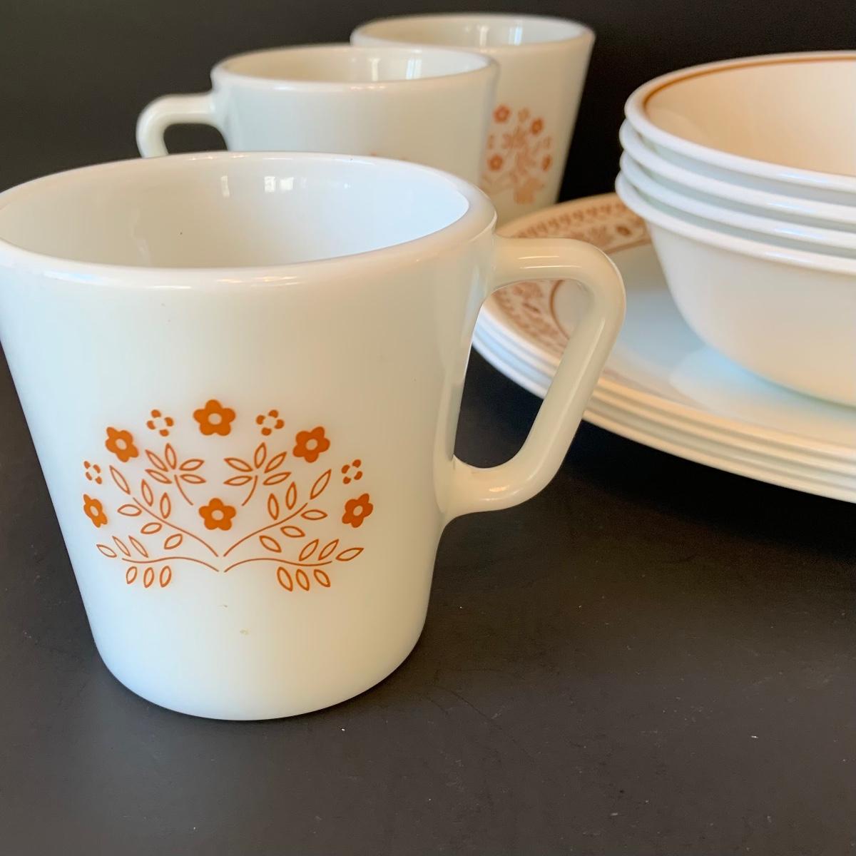 LOT:314G: Corelle Summer Impressions Dishes and Bowls and Pyrex Summer Impression Coffee Mugs