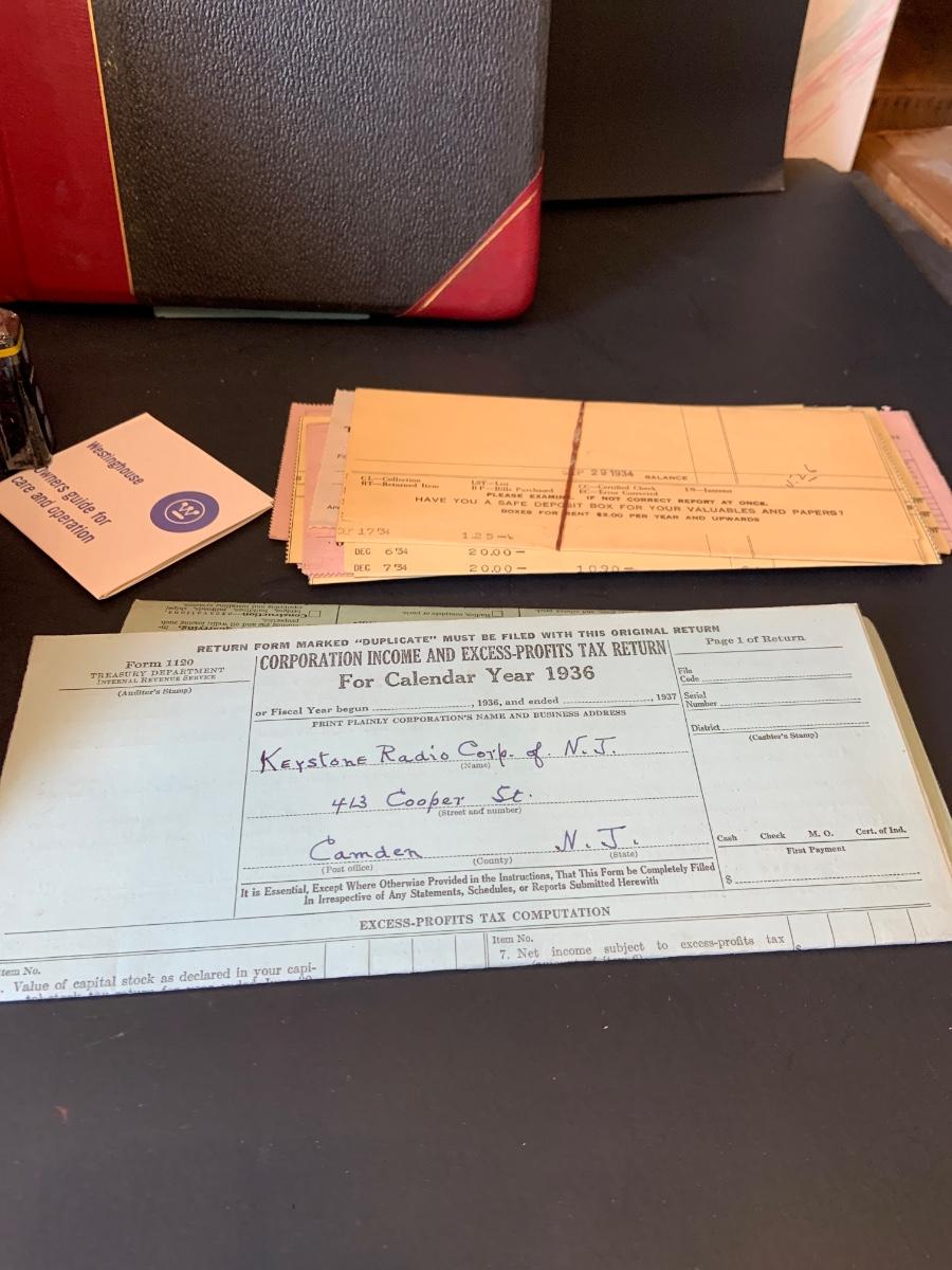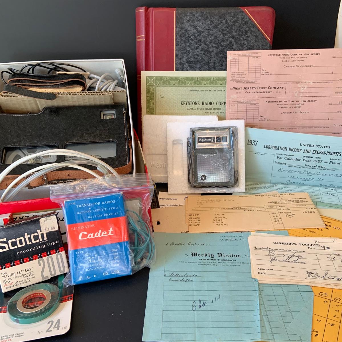 LOT:316G: Vintage Office Recorders and Ephemera Including TR-900 Transistor Portable Tape Recorded, Westinghouse Radio, Keystone Radio Corp Paperwork and More