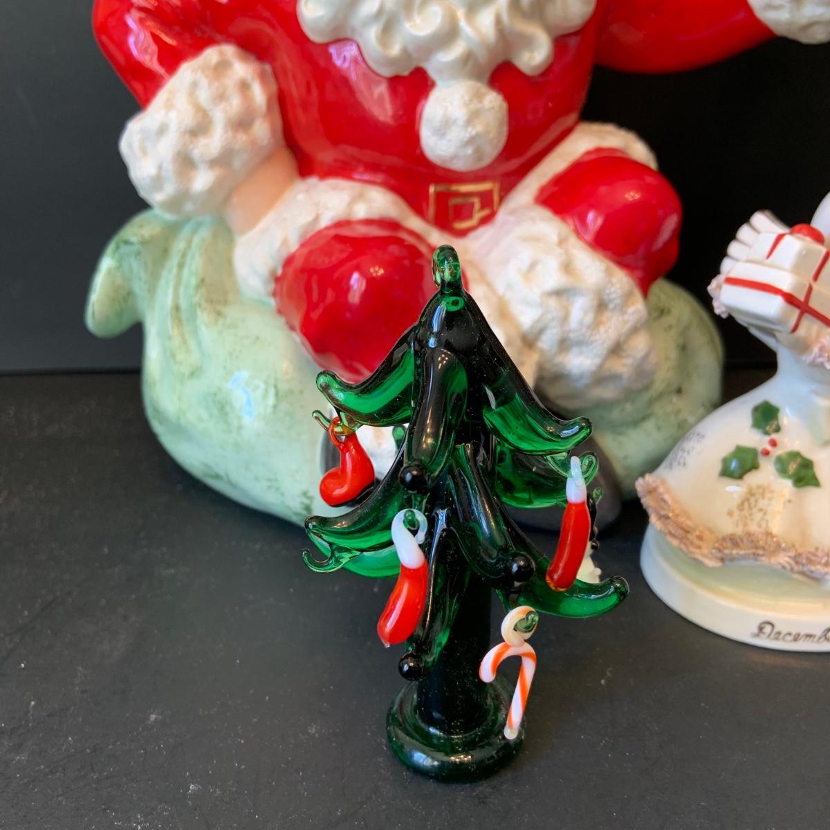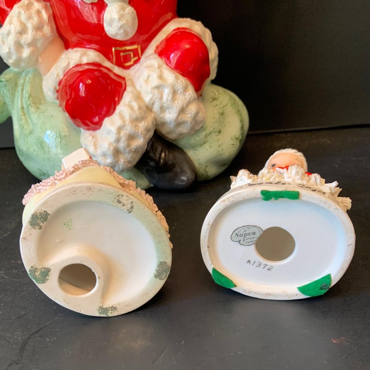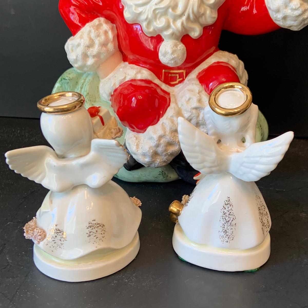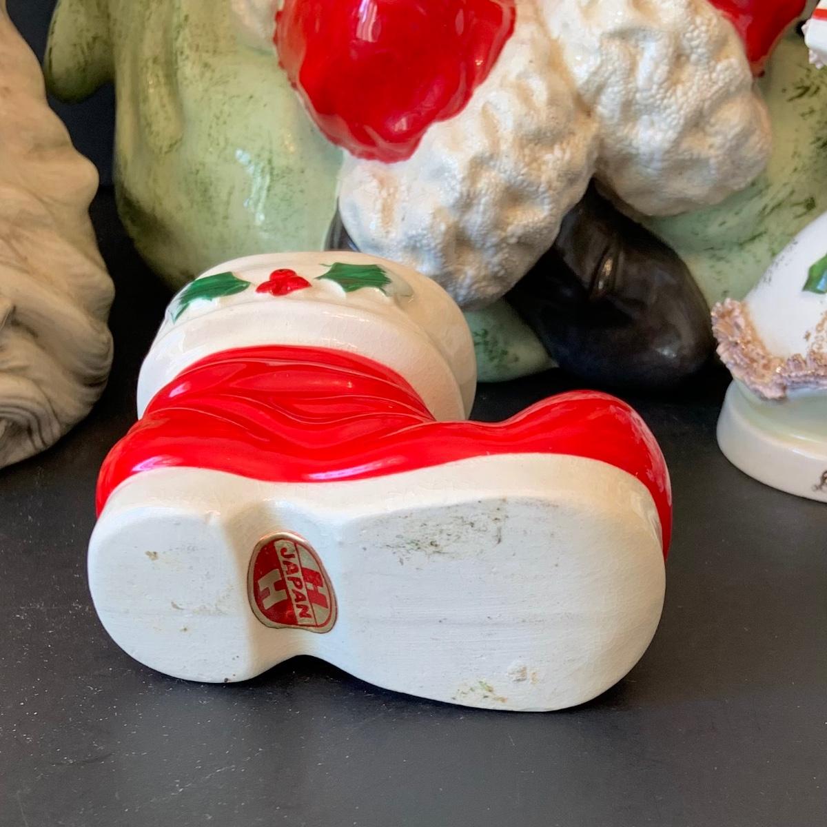 LOT:317G: Old Fashion Christmas Collection with Vintage Ceramic Santas - Holland Mold Santa Head Bank, Atlantic Mold Wind-upSanta with Bell, Glass Tree, Napco December Angles and More