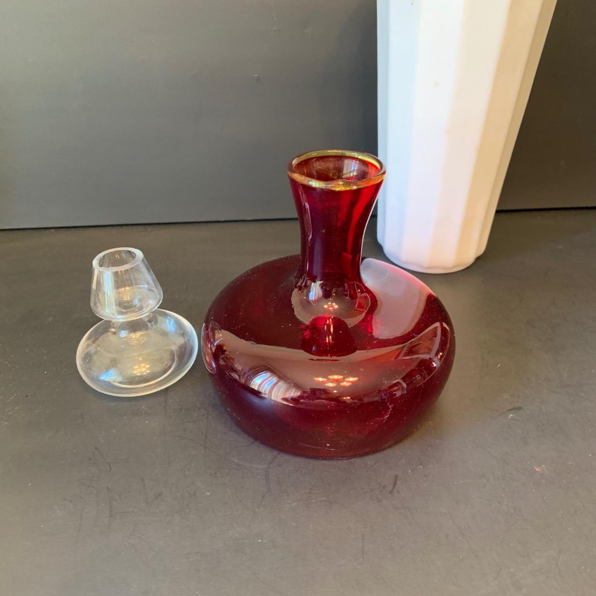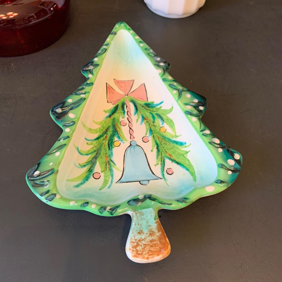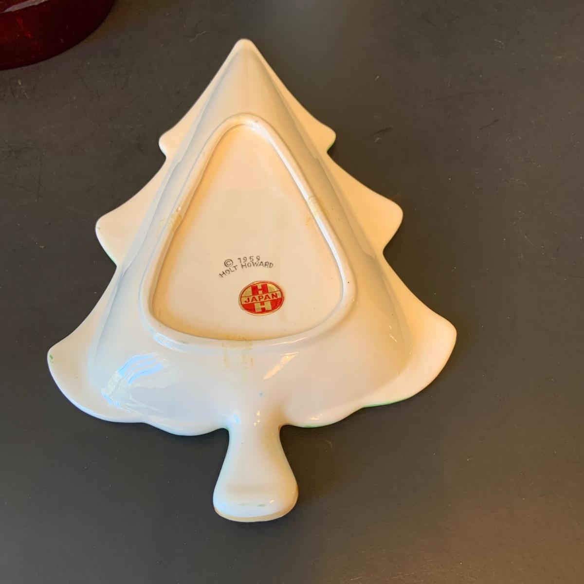 LOT:319G:  Vintage Christmas Decor Featuring 1959 Holt Howard Japan Tree Dish, Milk Glass Vase and Ruby Red Decanter and More