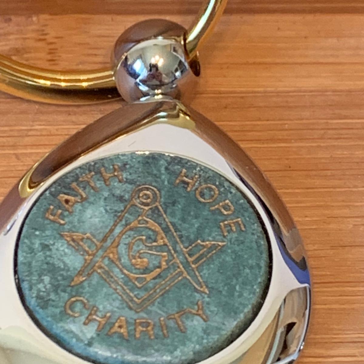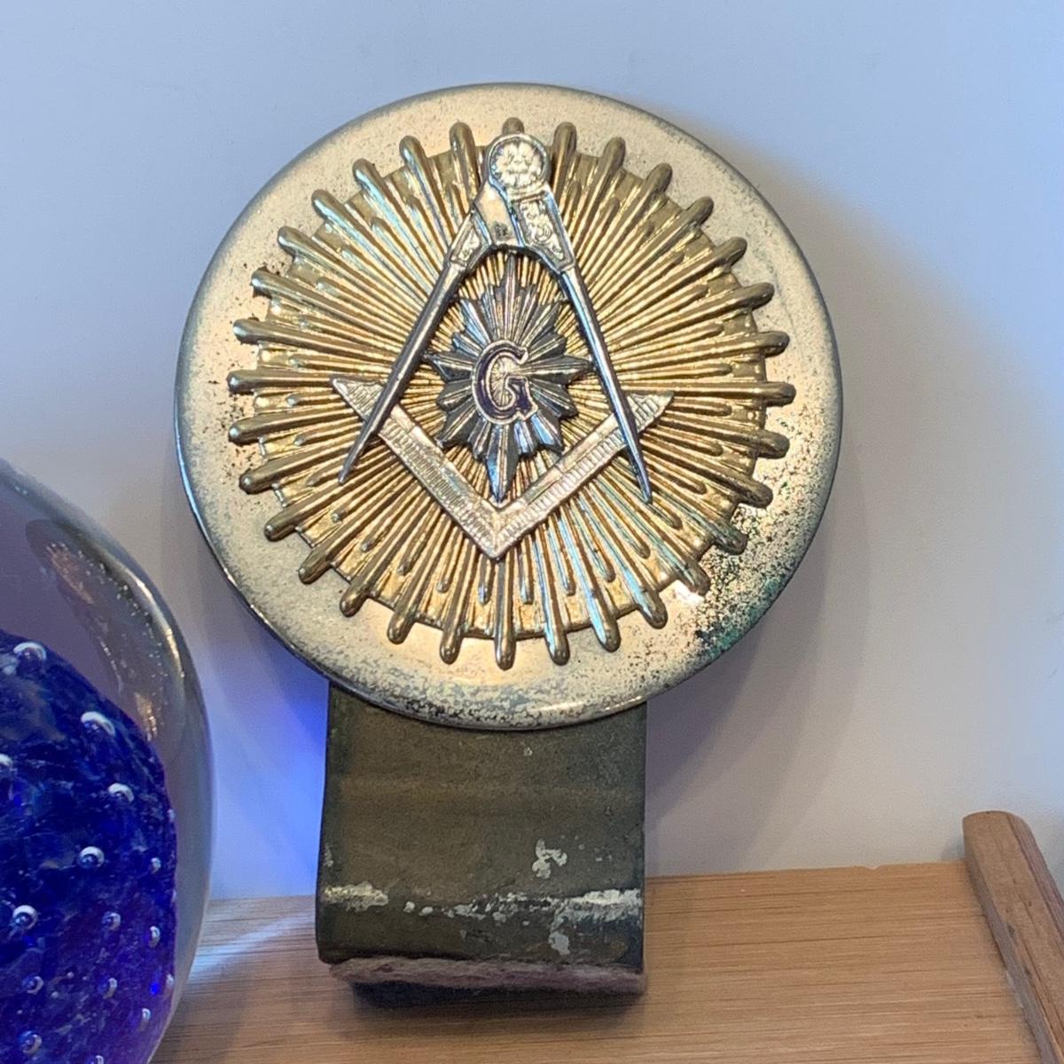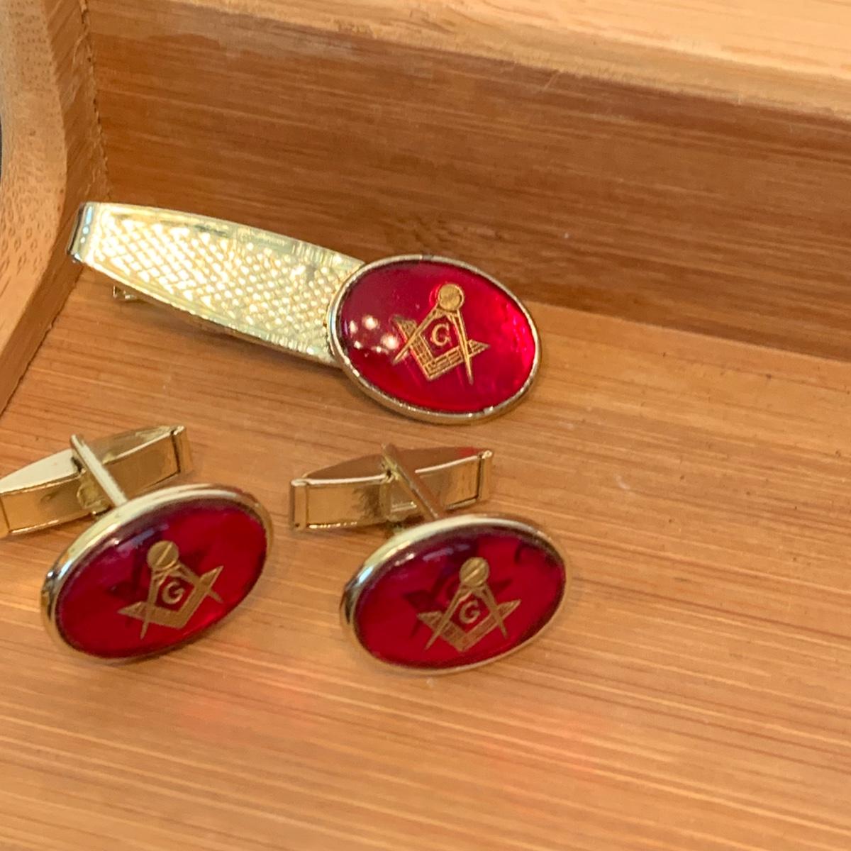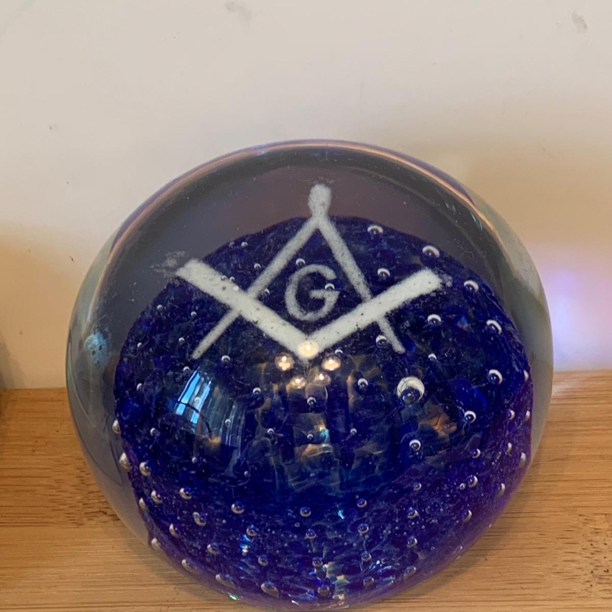 LOT:320G: Vintage FREEMASON Collection; Bible, John Gentile Paperweight,Cuff Links, Tie Pins, Commemorative Trowel Dated March 20th, 1907 & More