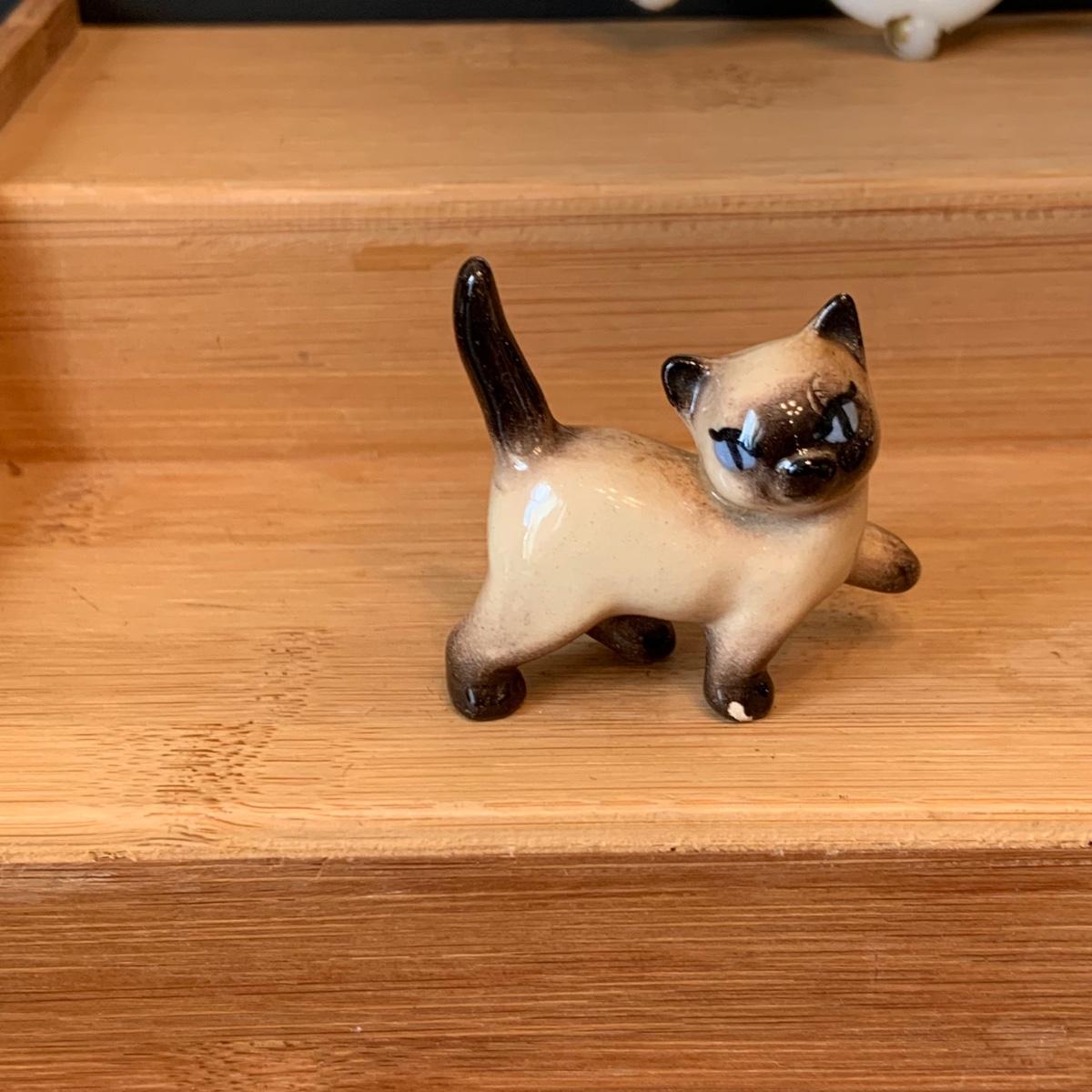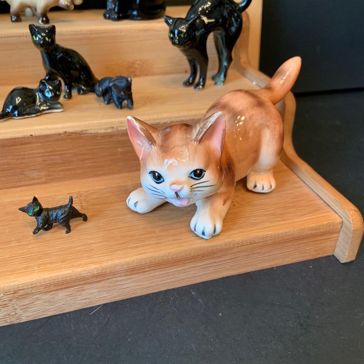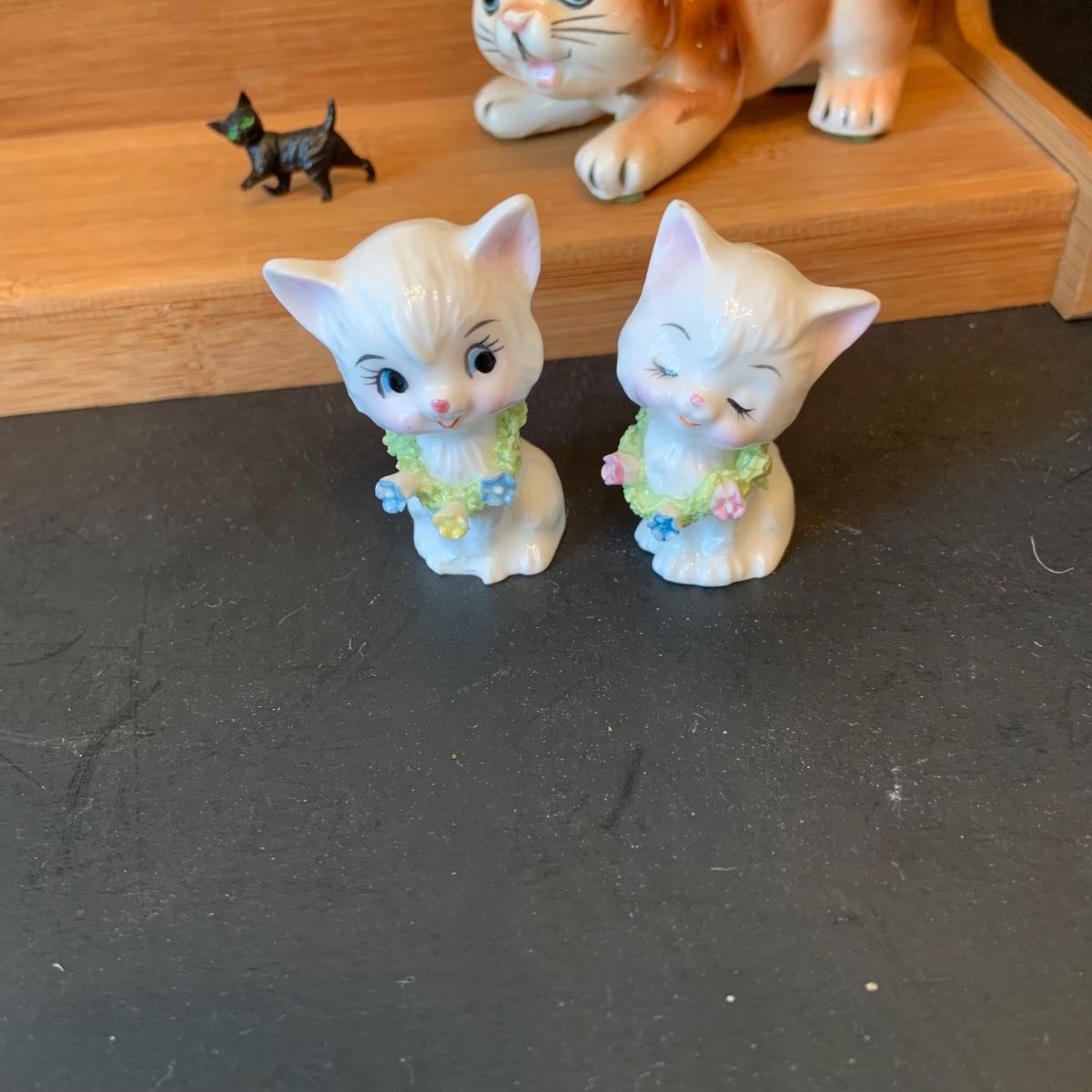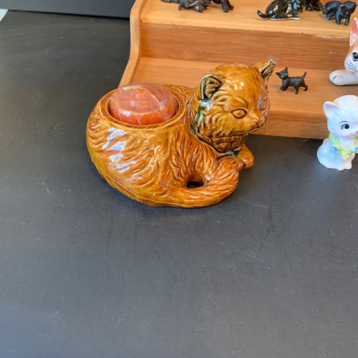 LOT:322G: Vintage Cat & Kitten Figurines; 1940's Robert Summon Tutsy Siamese cats, Mosser Glass Cat, Milk Glass Cat Plate & More