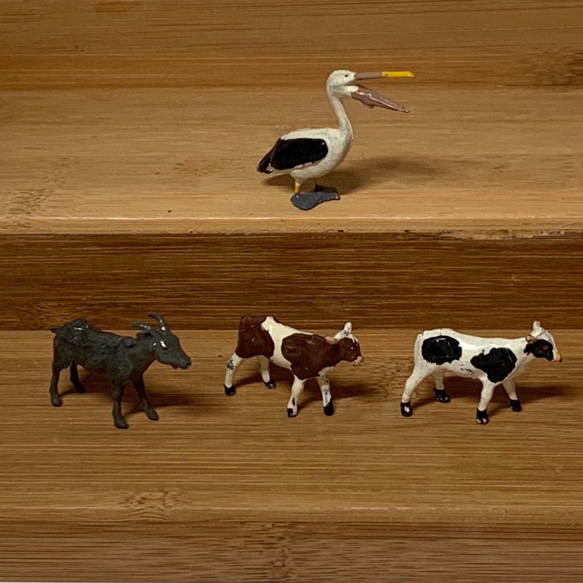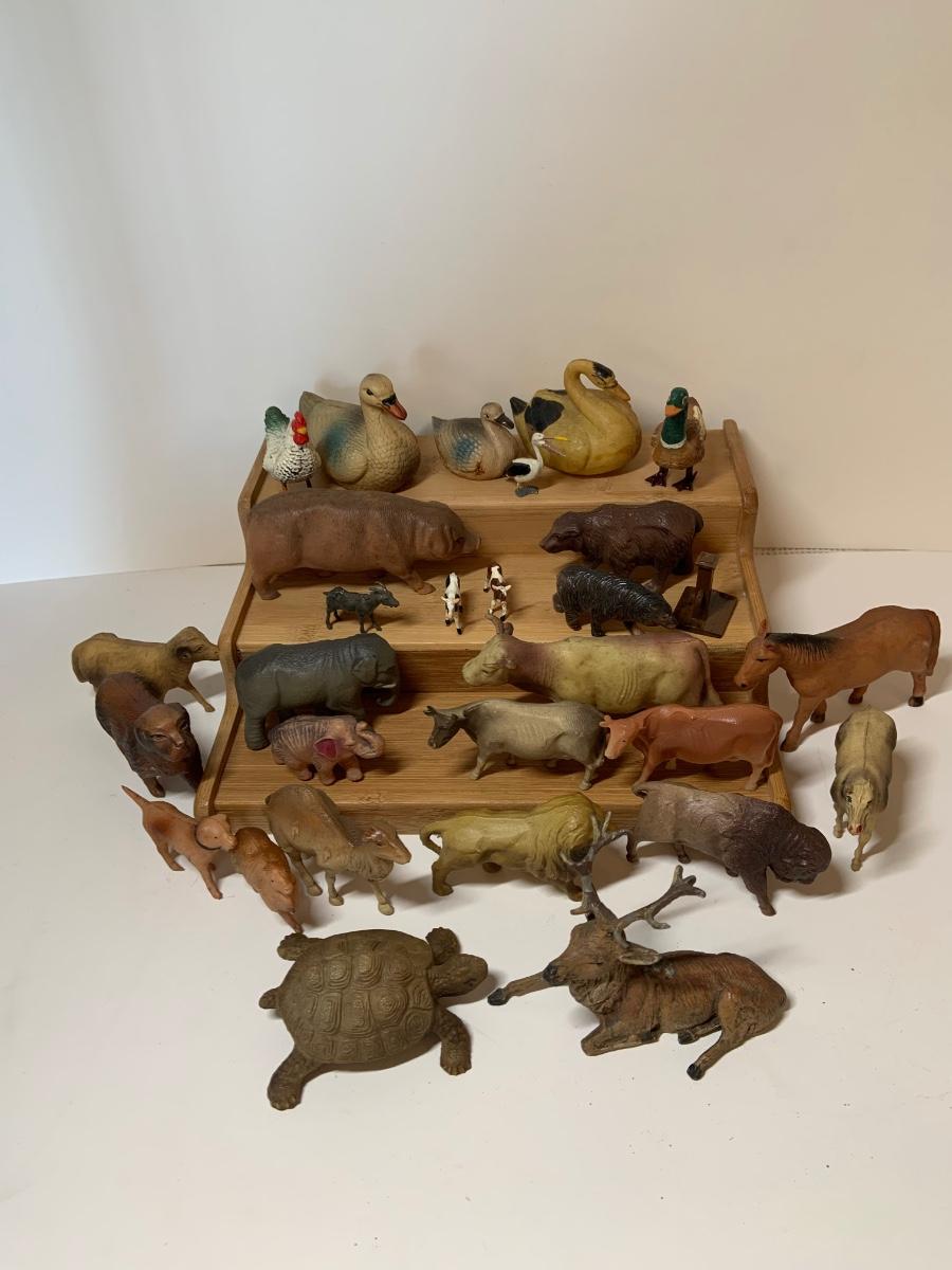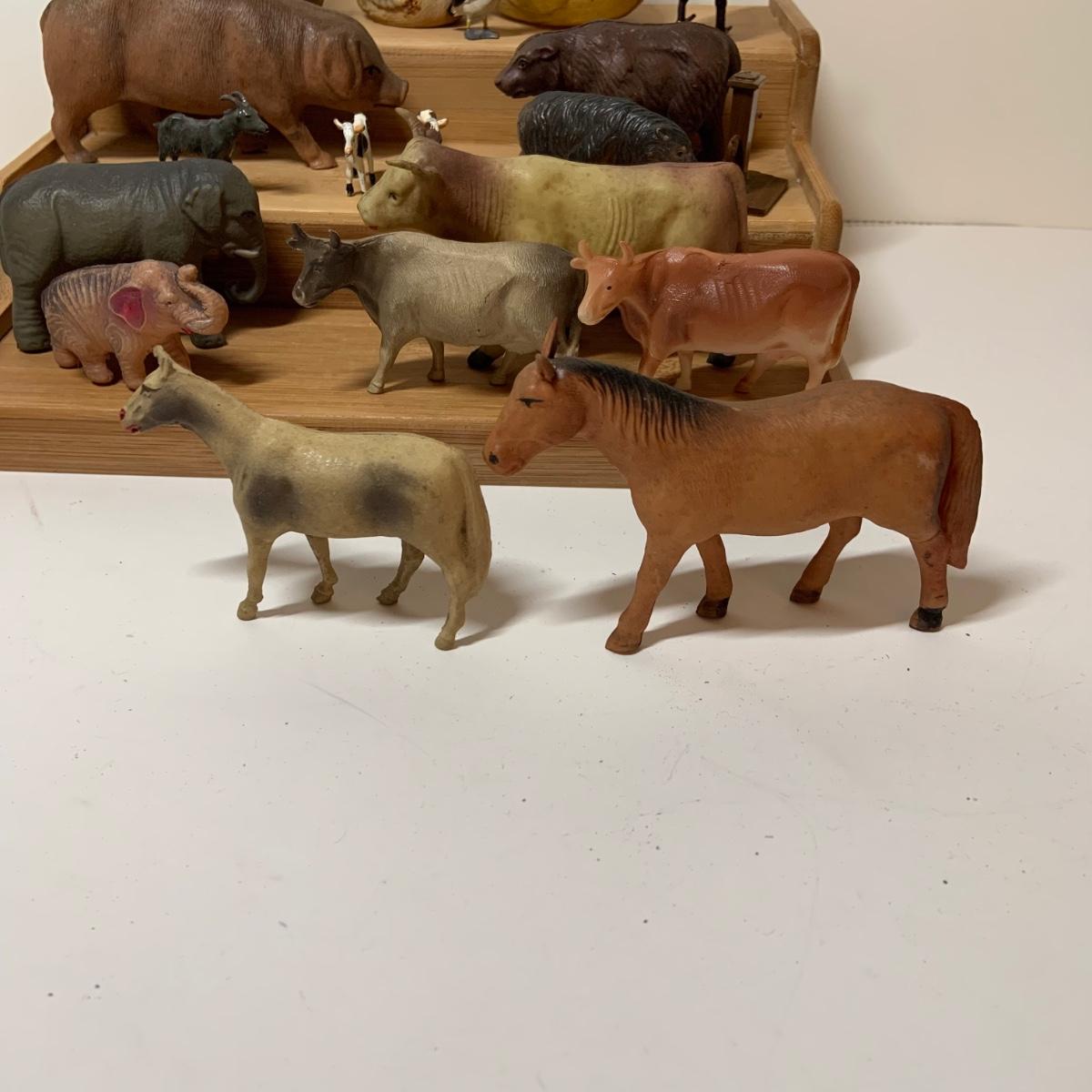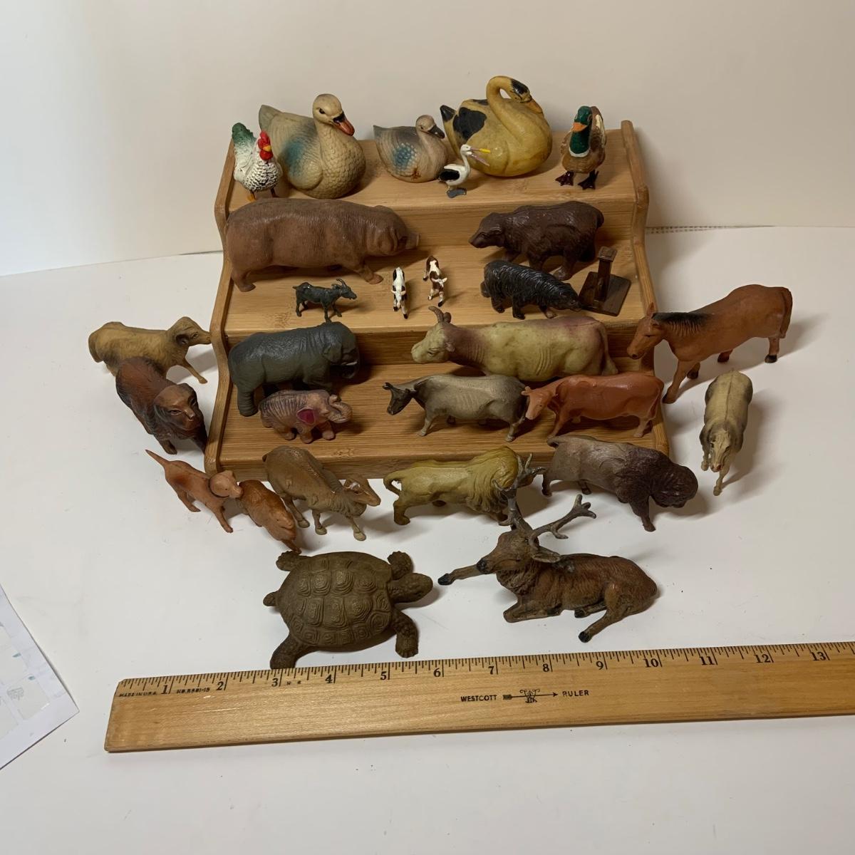 LOT:324G: Large Assortment of Vintage Plastic Animals and Miniature Cast Iron Animals