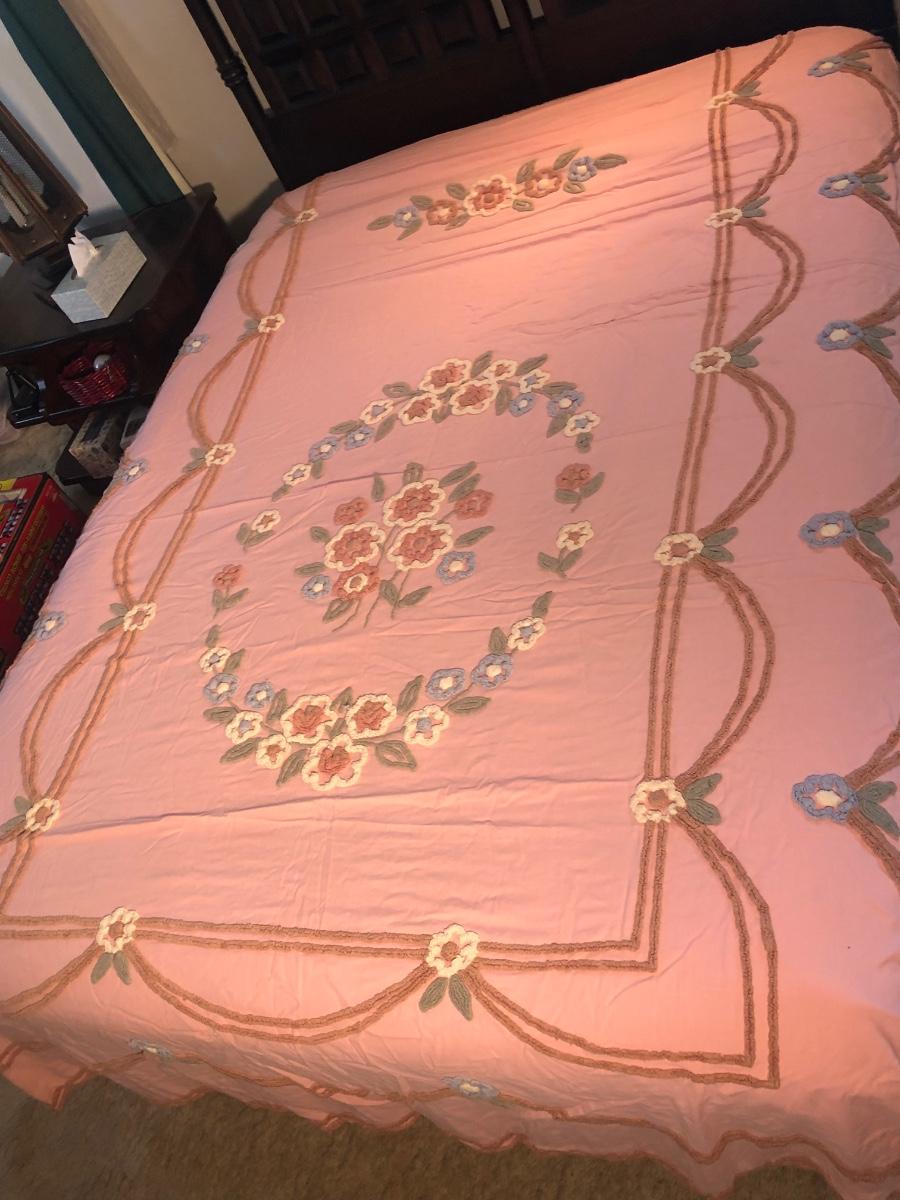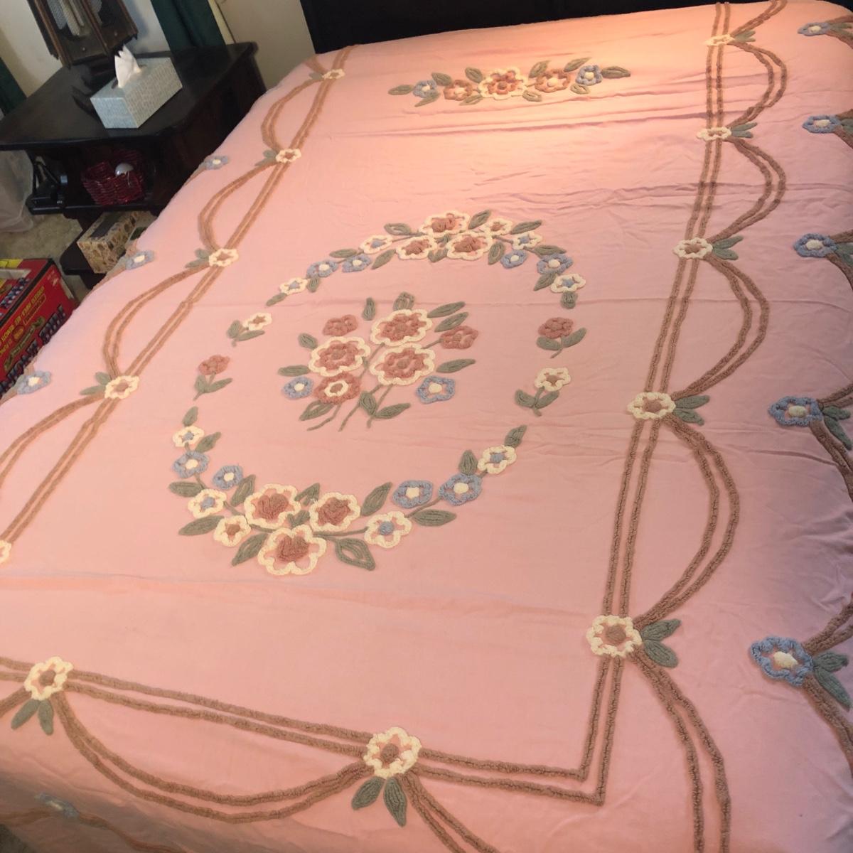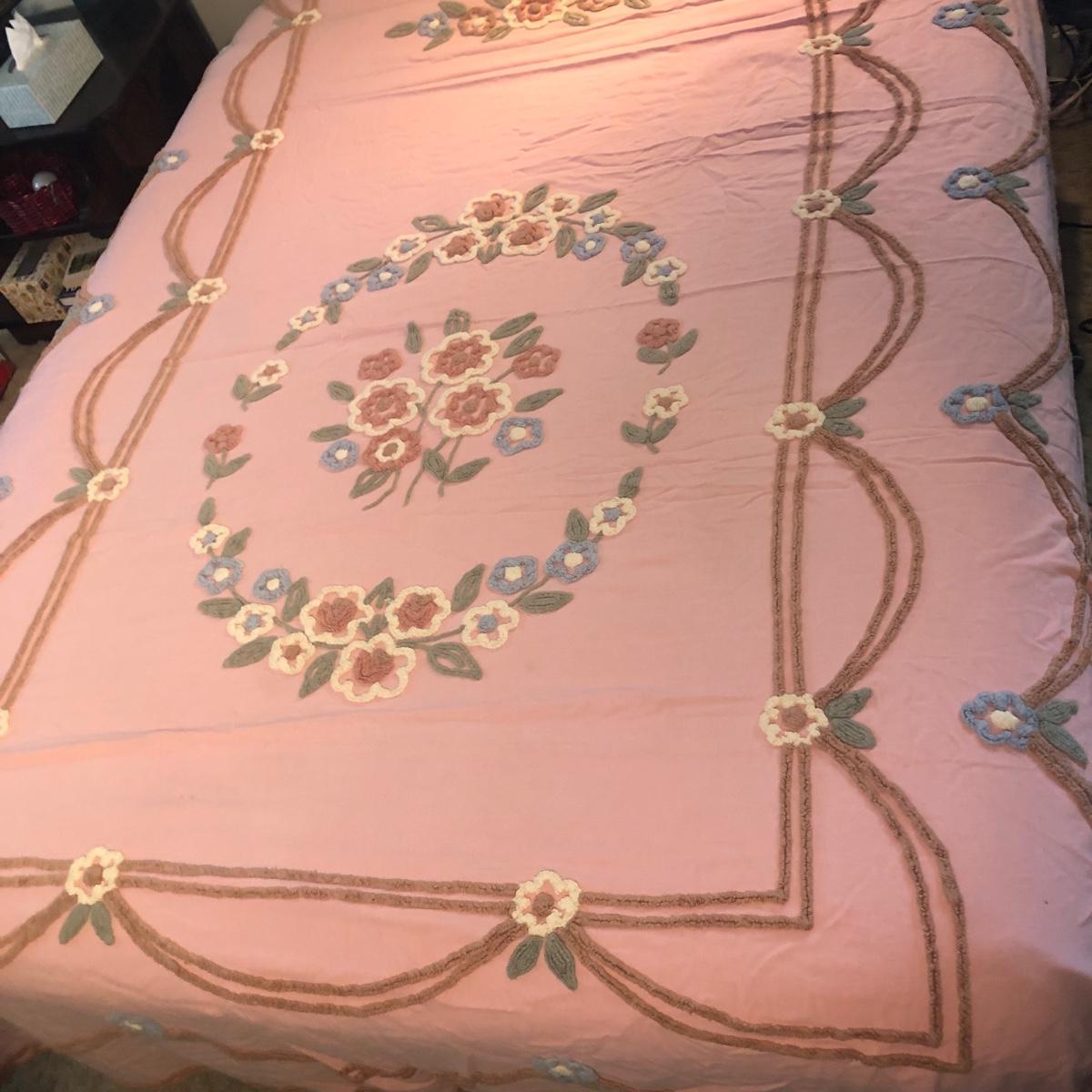 LOT 328M: Two Vintage Matching Pink Chenille Bedspreads/Blankets