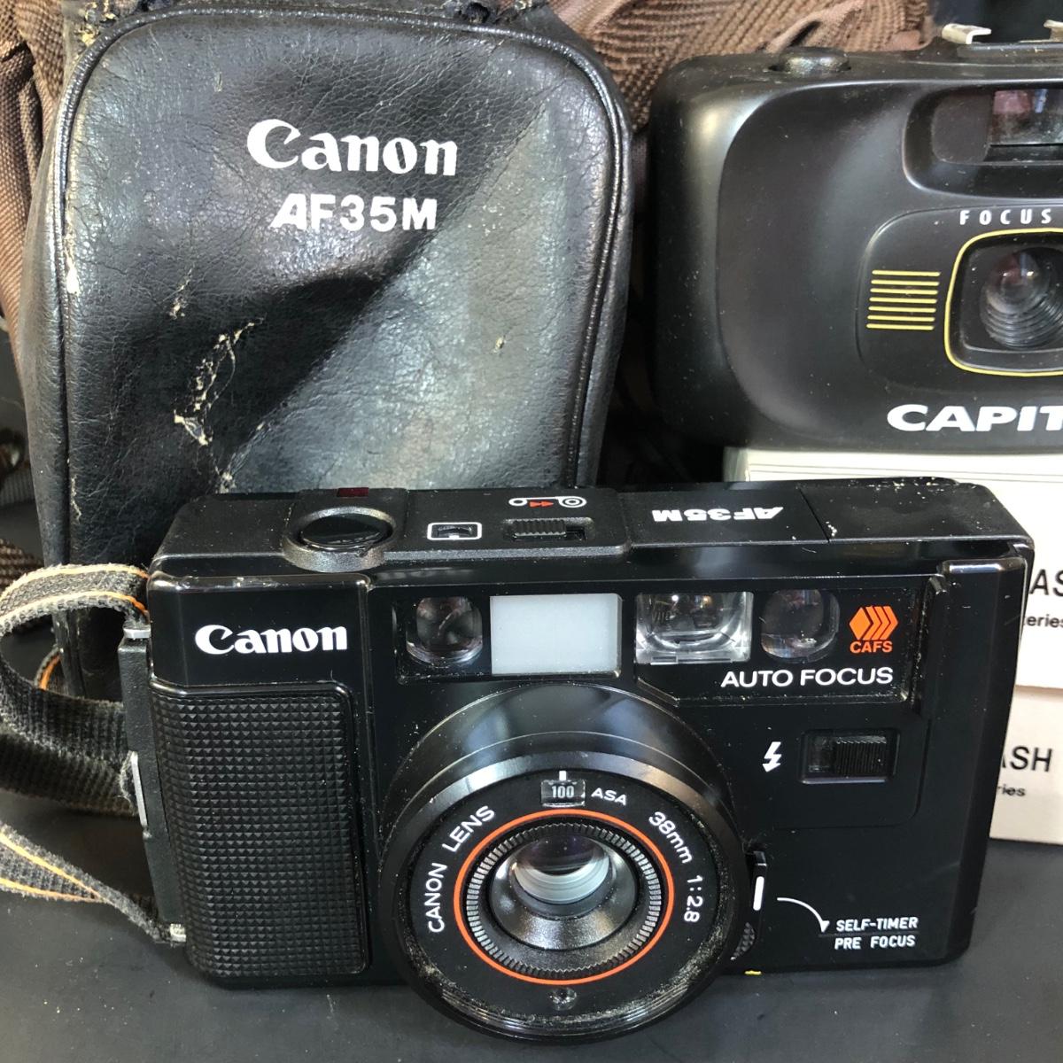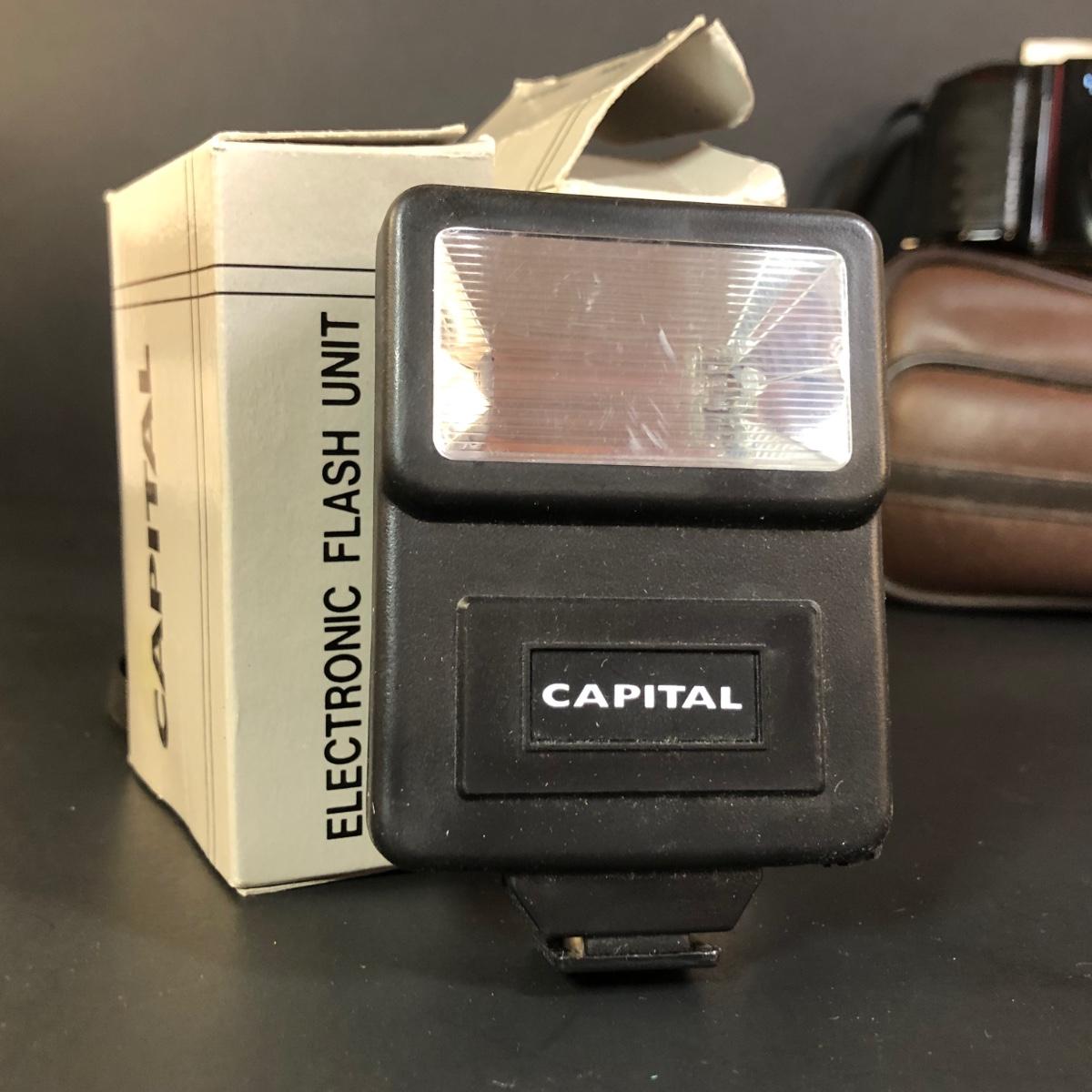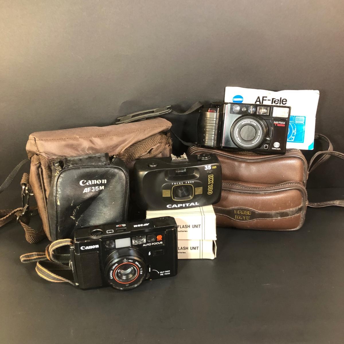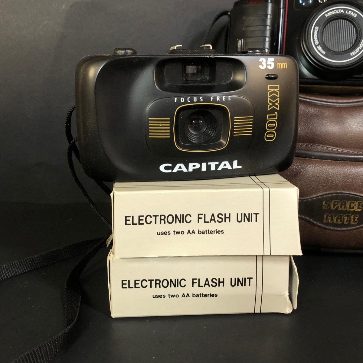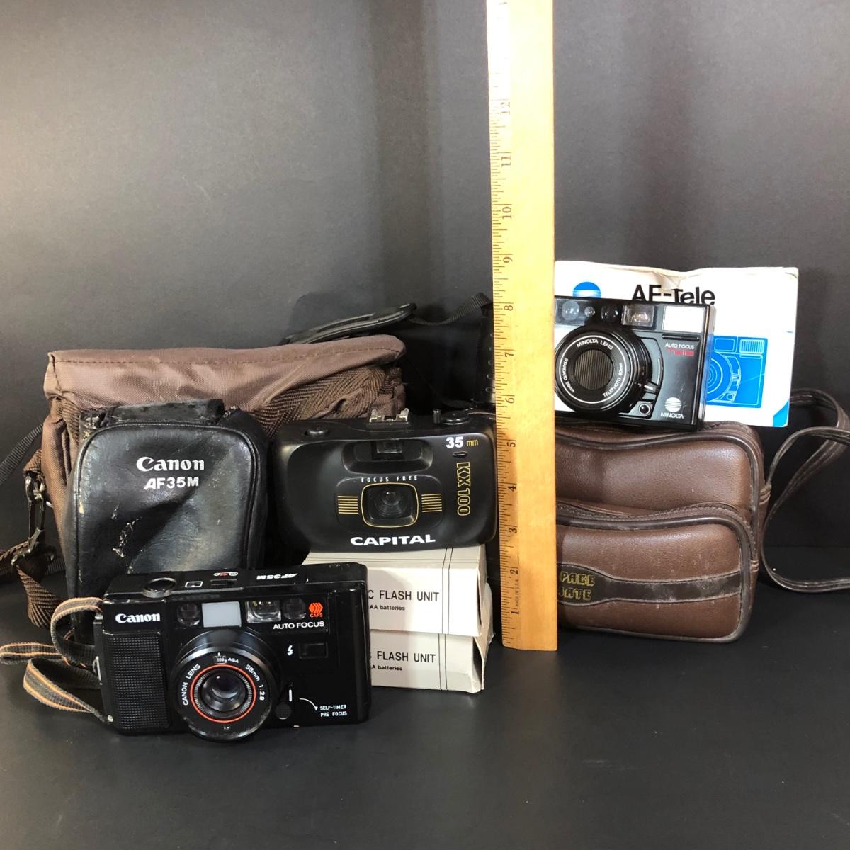 LOT 346M: 35mm Cameras & More - Canon AF, Capital KX100, Minolta AF-Tele, Space Mate Bag, Capital External Flashes