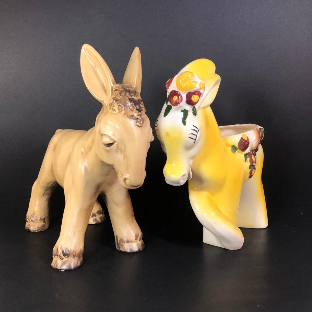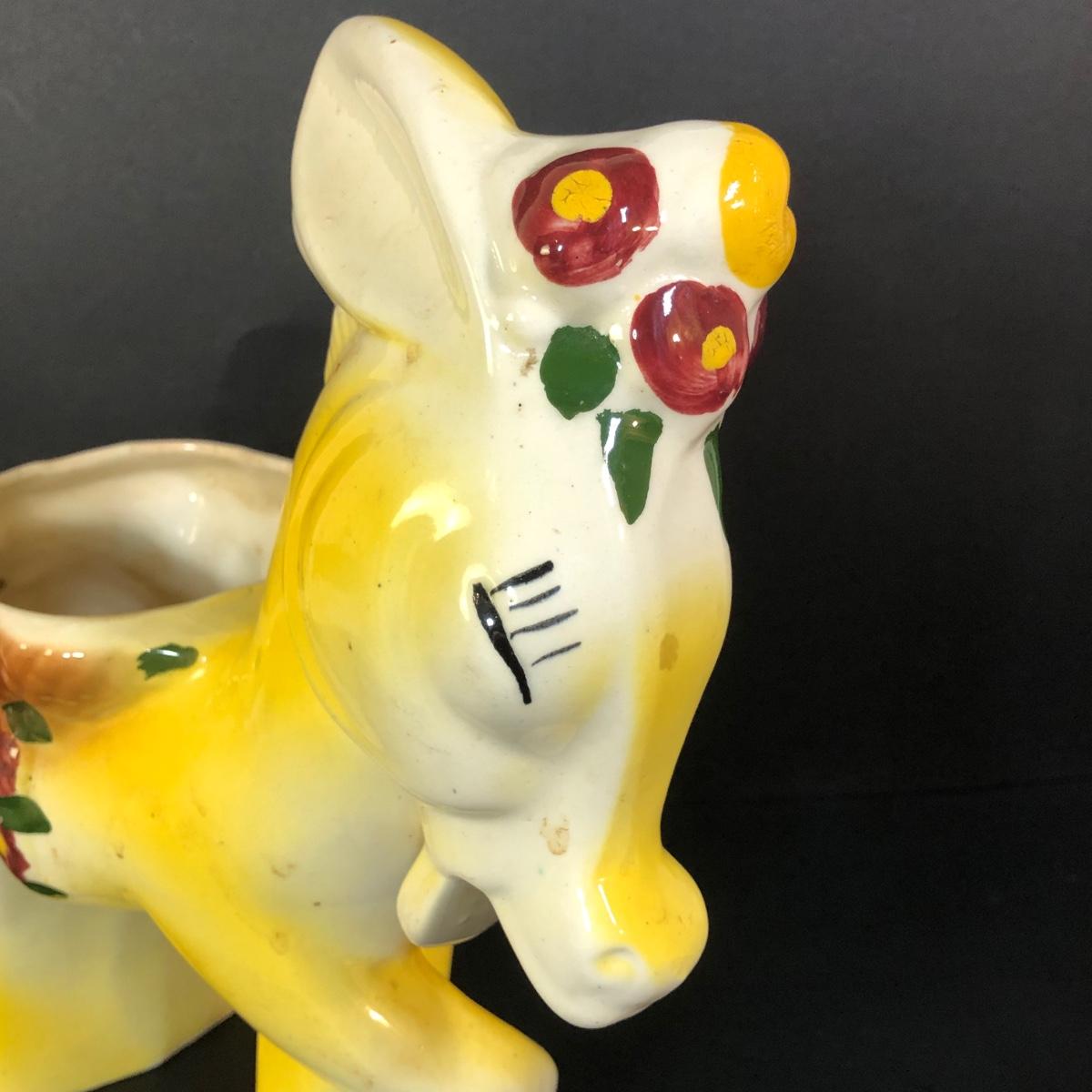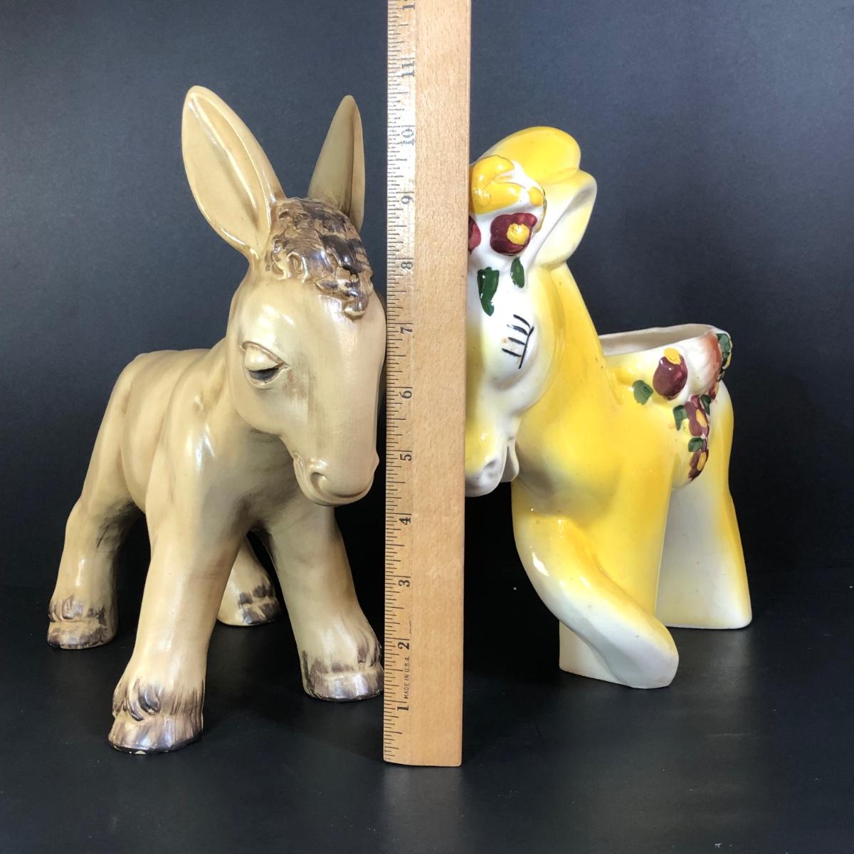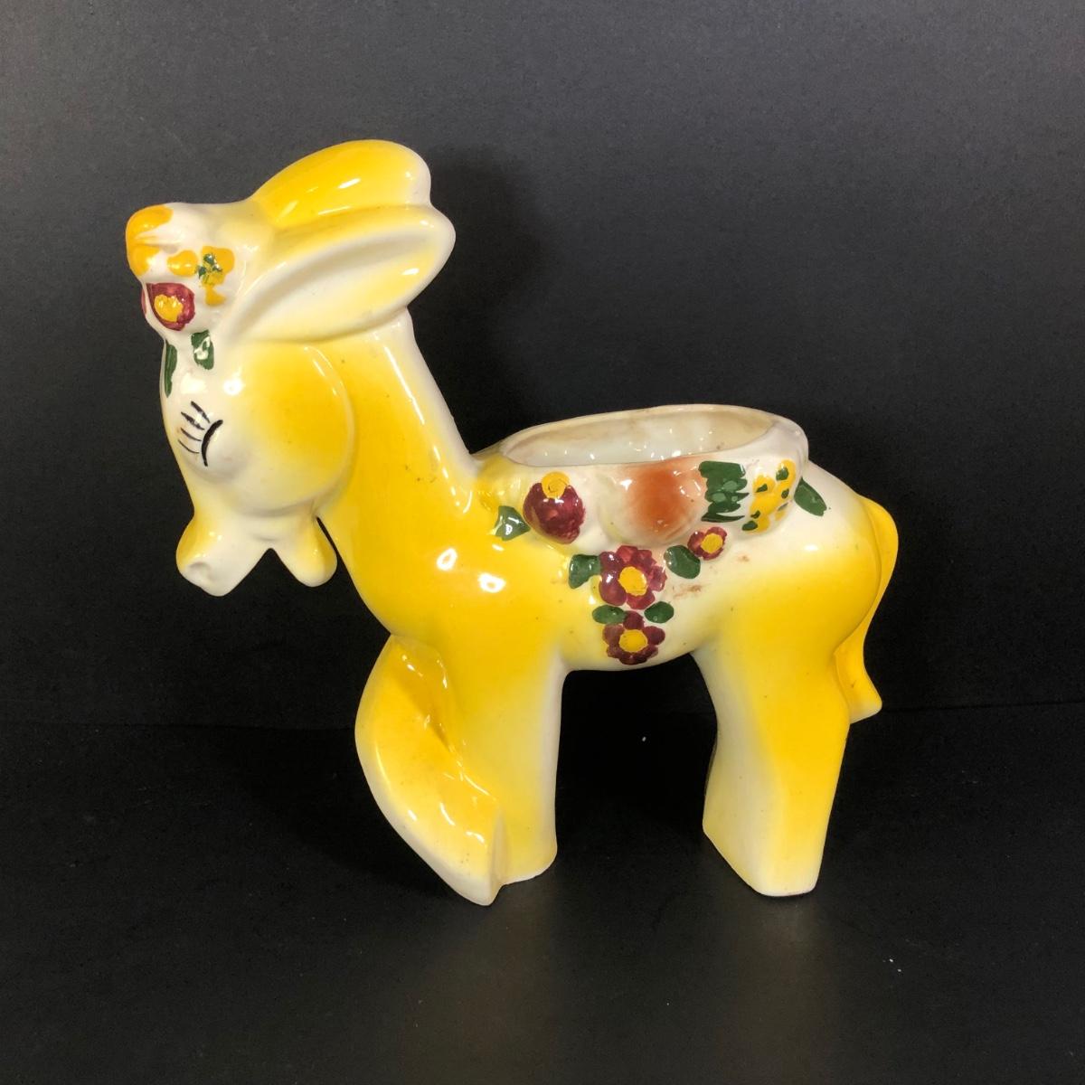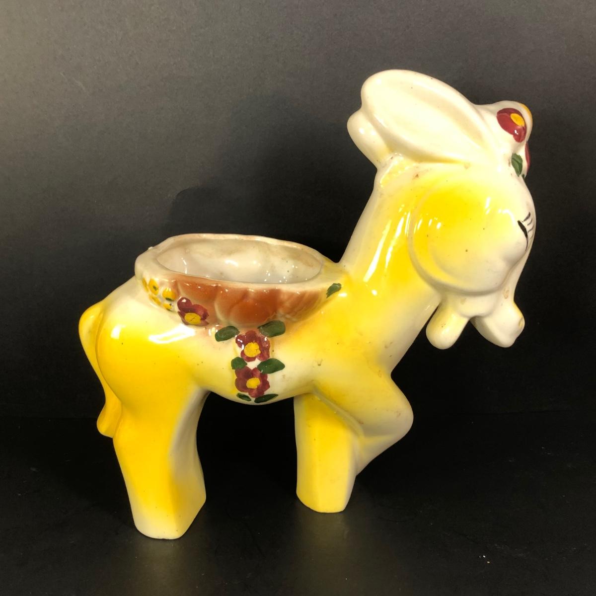 LOT 347M: Vintage Yellow Donkey Planter & Large Fiqurine