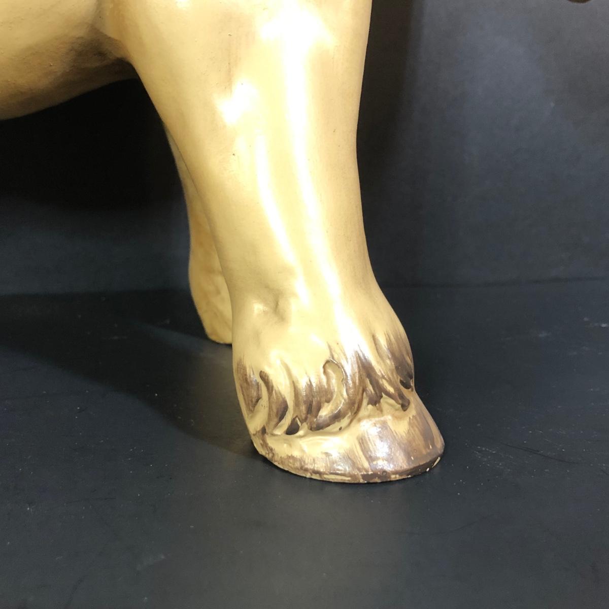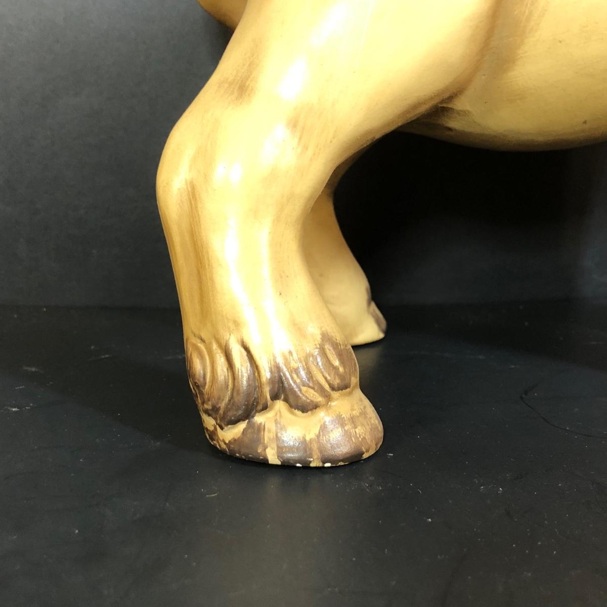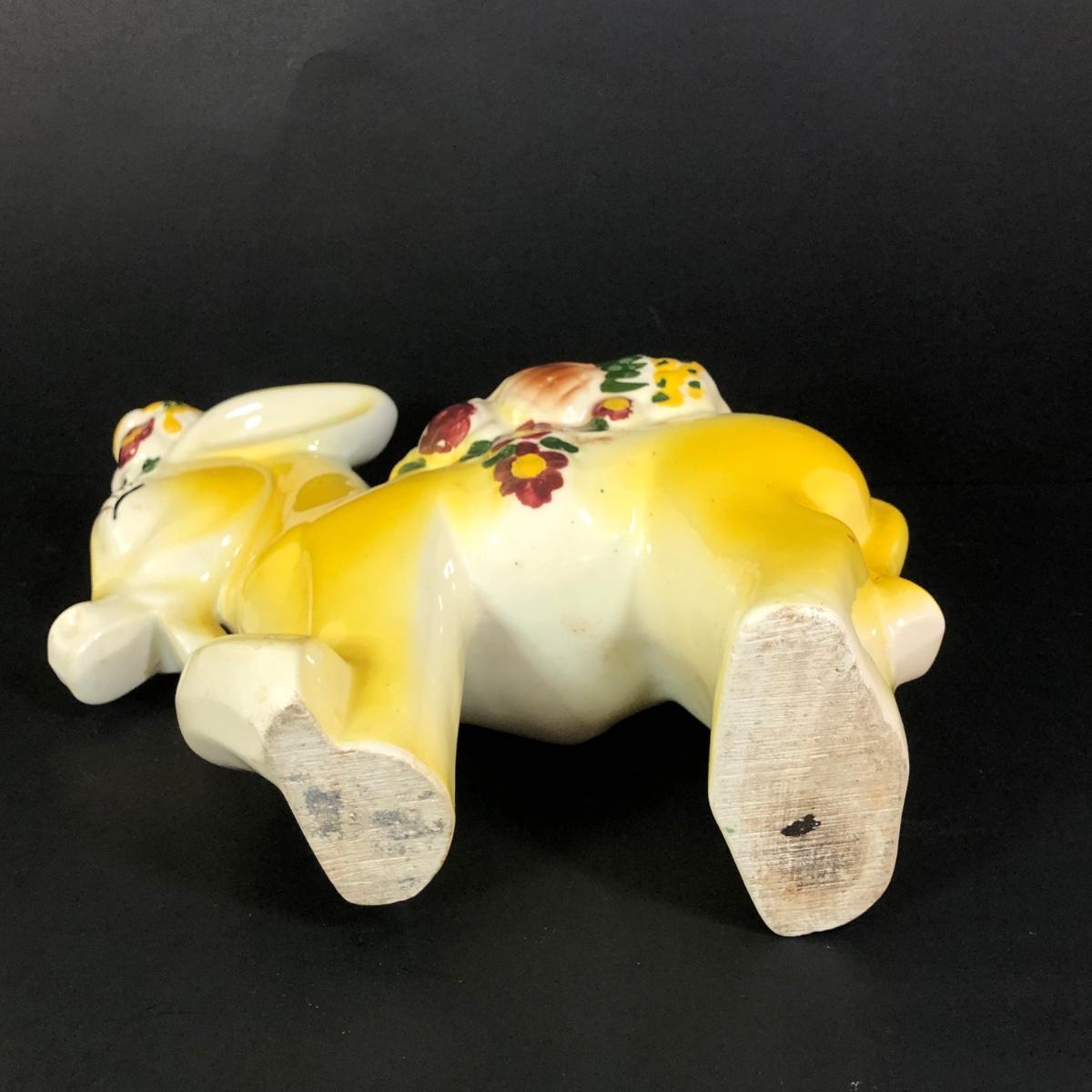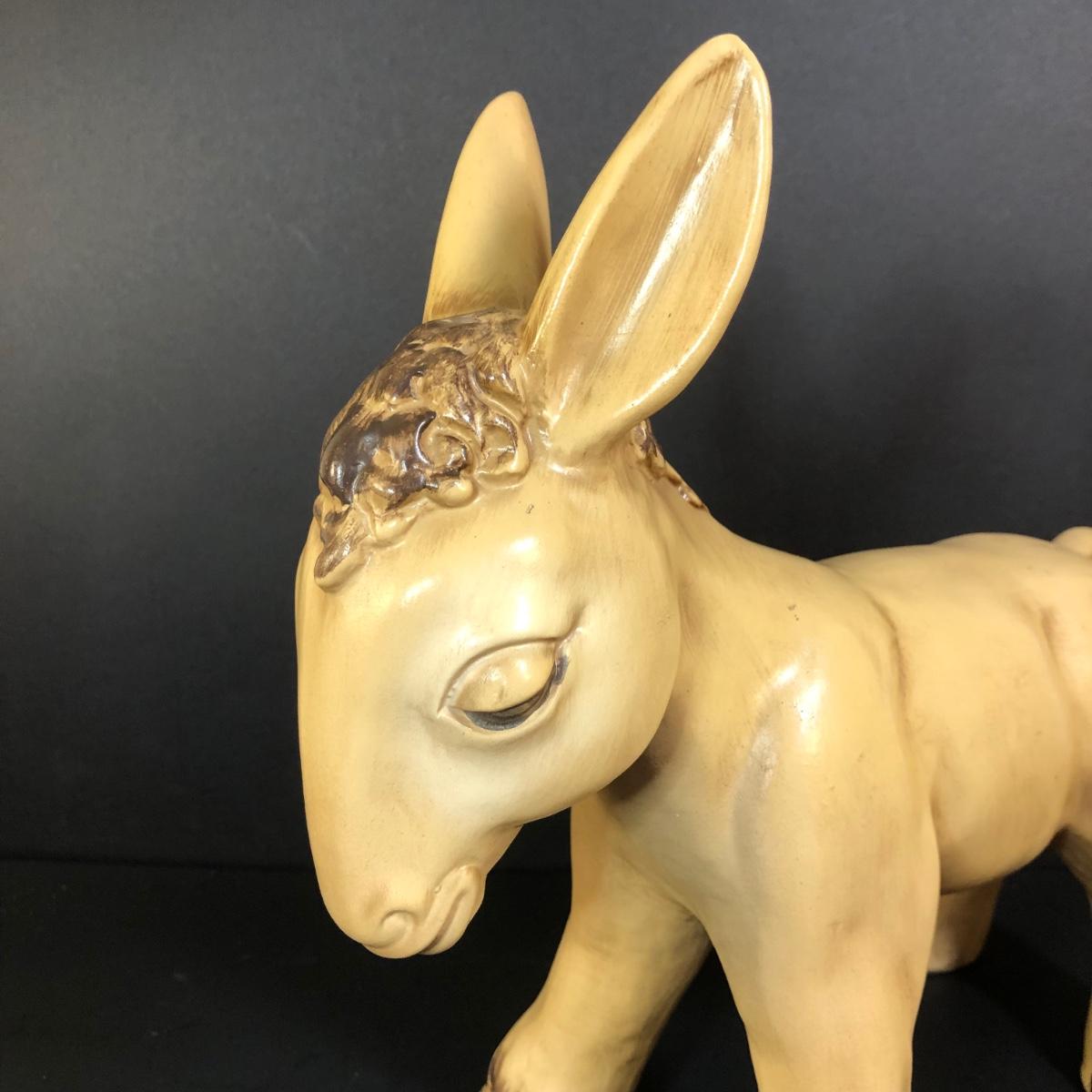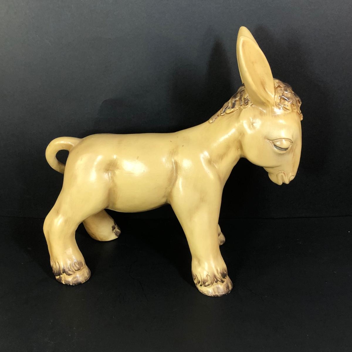 LOT 347M: Vintage Yellow Donkey Planter & Large Fiqurine