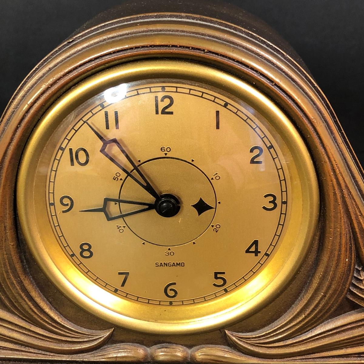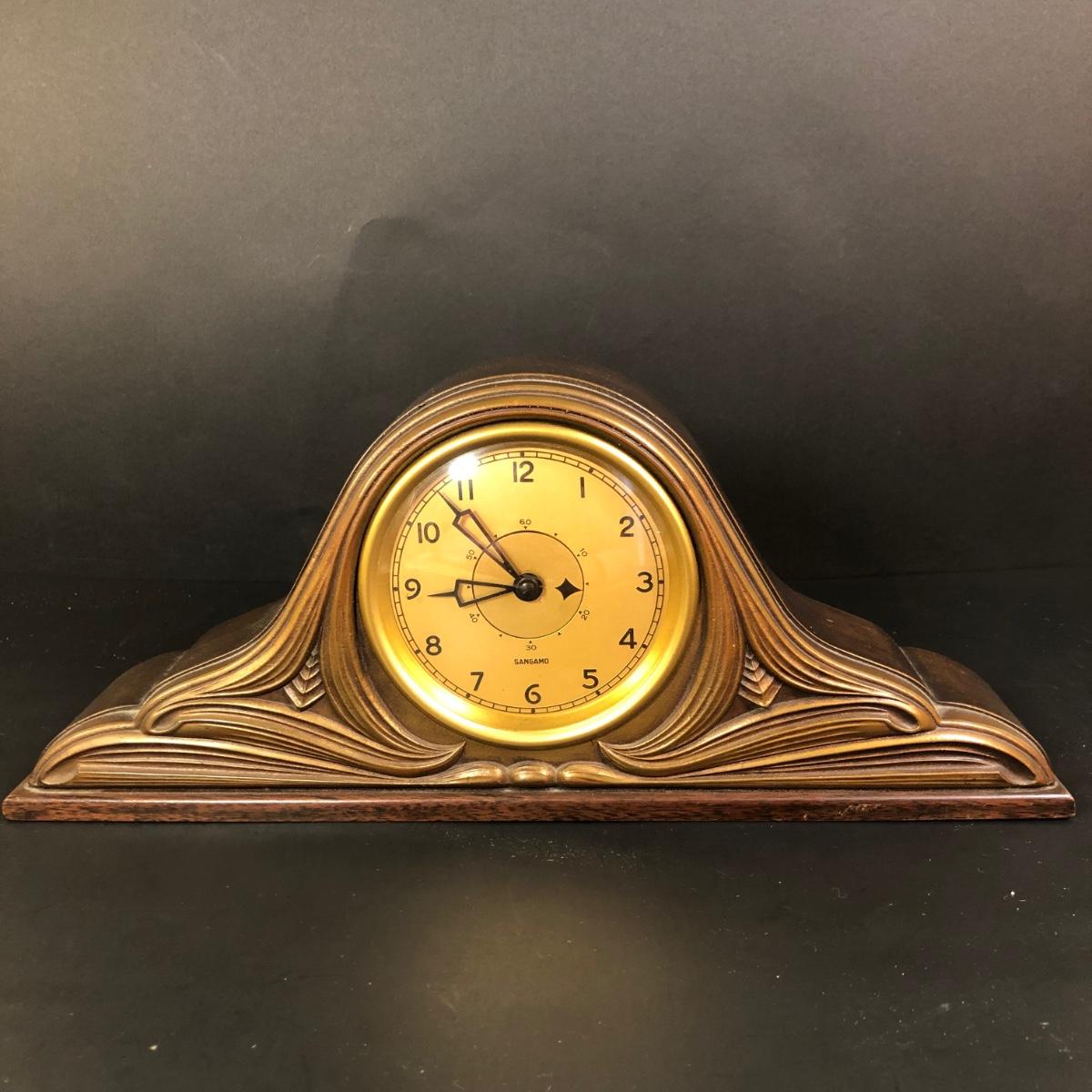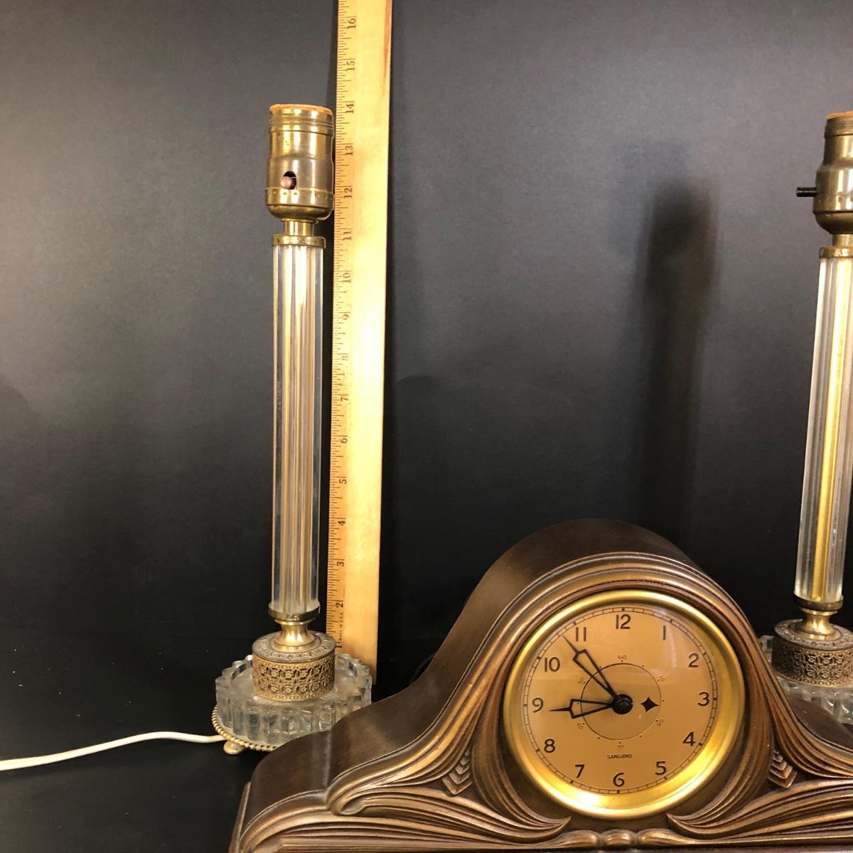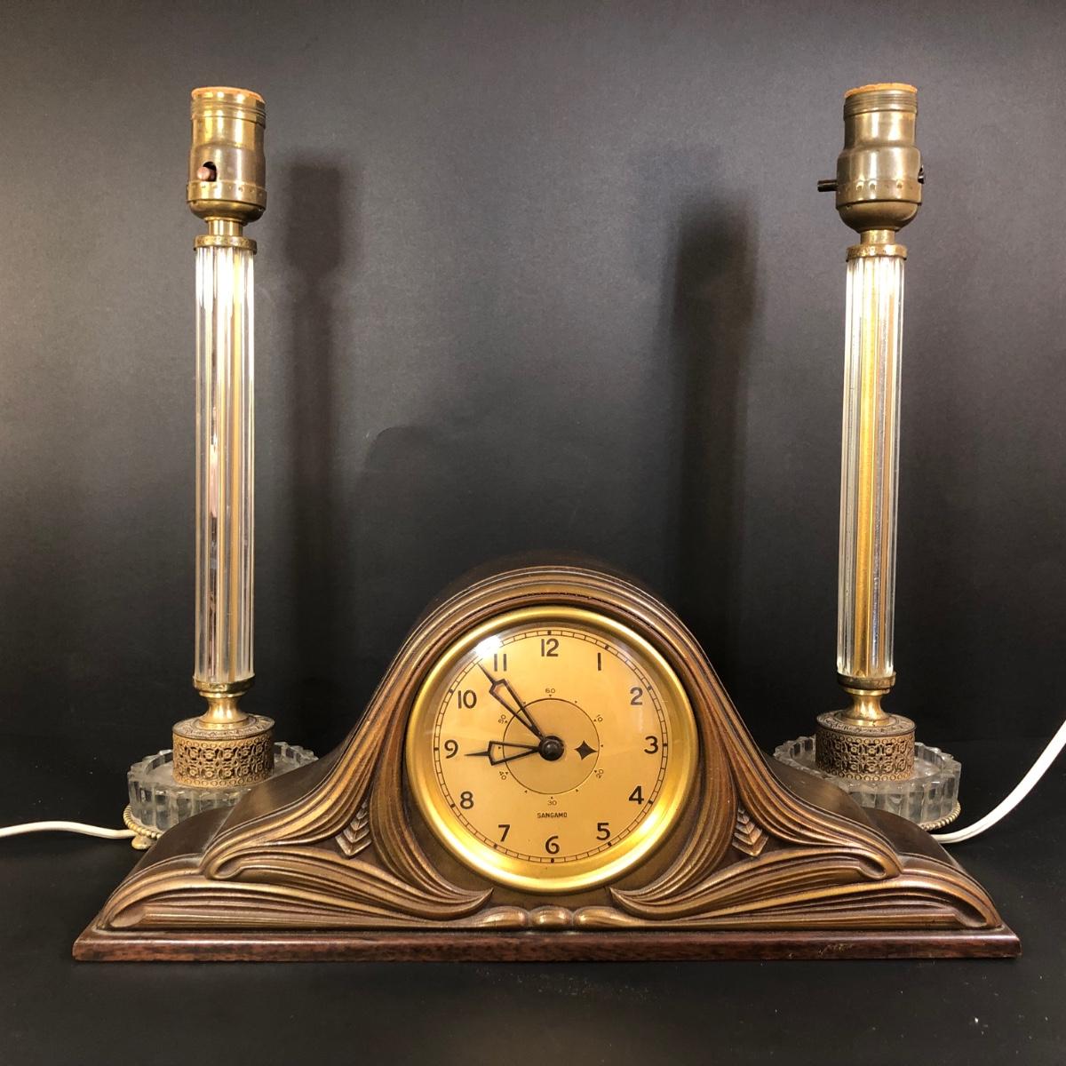 LOT 350M: Vintage Sangamo Electric Mantle Clock w/ Pair of Art Deco Candlestick Lamps