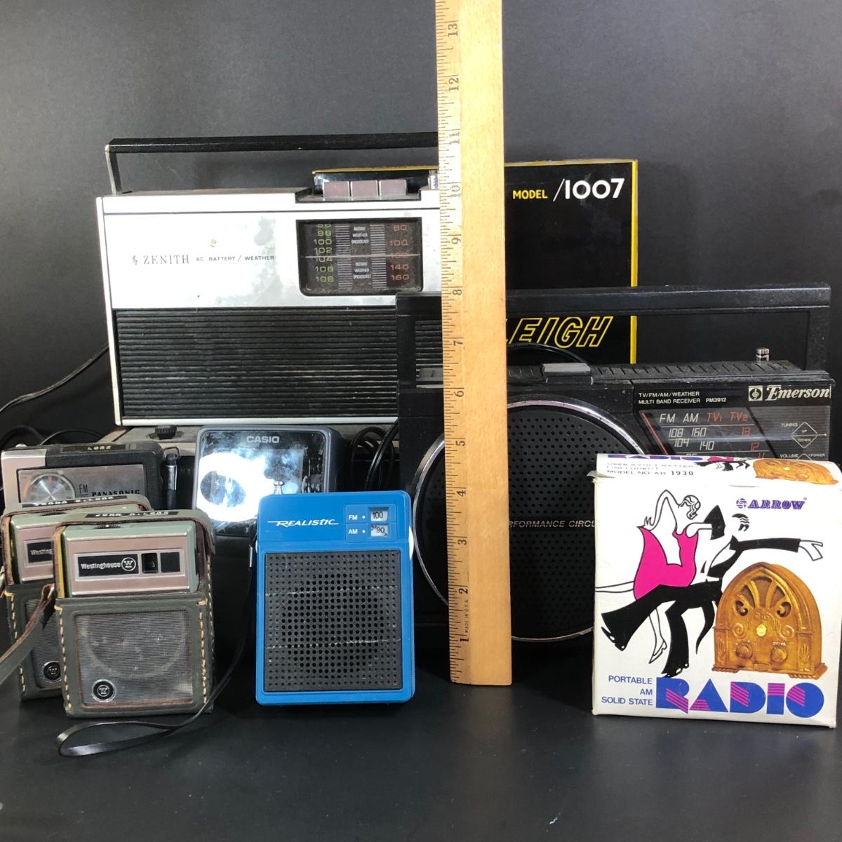LOT 352M: Vintage Radios/Electronics - Westinghouse Transistors, Casio Model TV-770B, Panasonic Model RF-619, Emerson Model PM3912, Panasonic AM-FM Clock Radio RC-7469 & More
