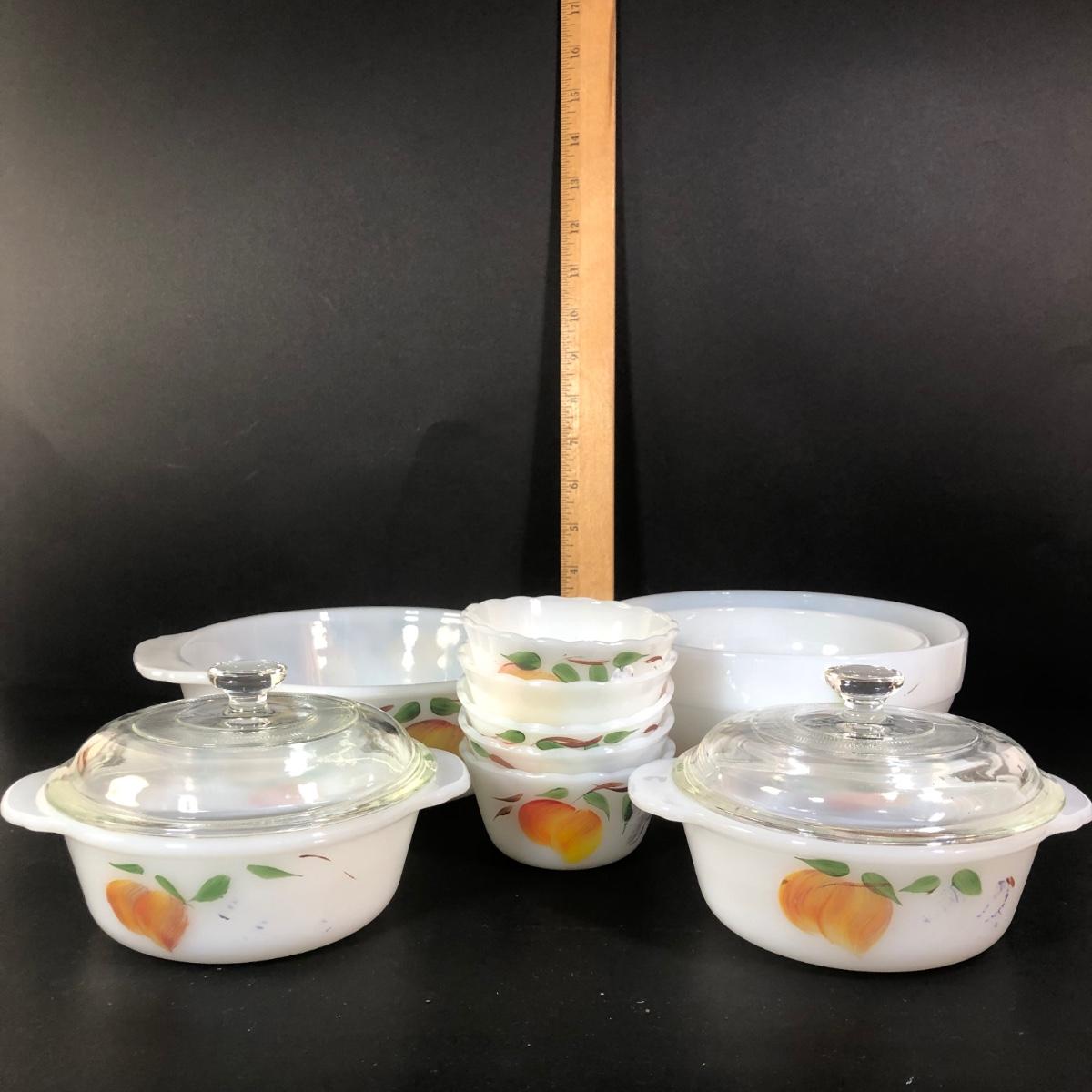 LOT 361M: Vintage Hand Painted Anchor Hocking Fire King Baking/Serving Dishes