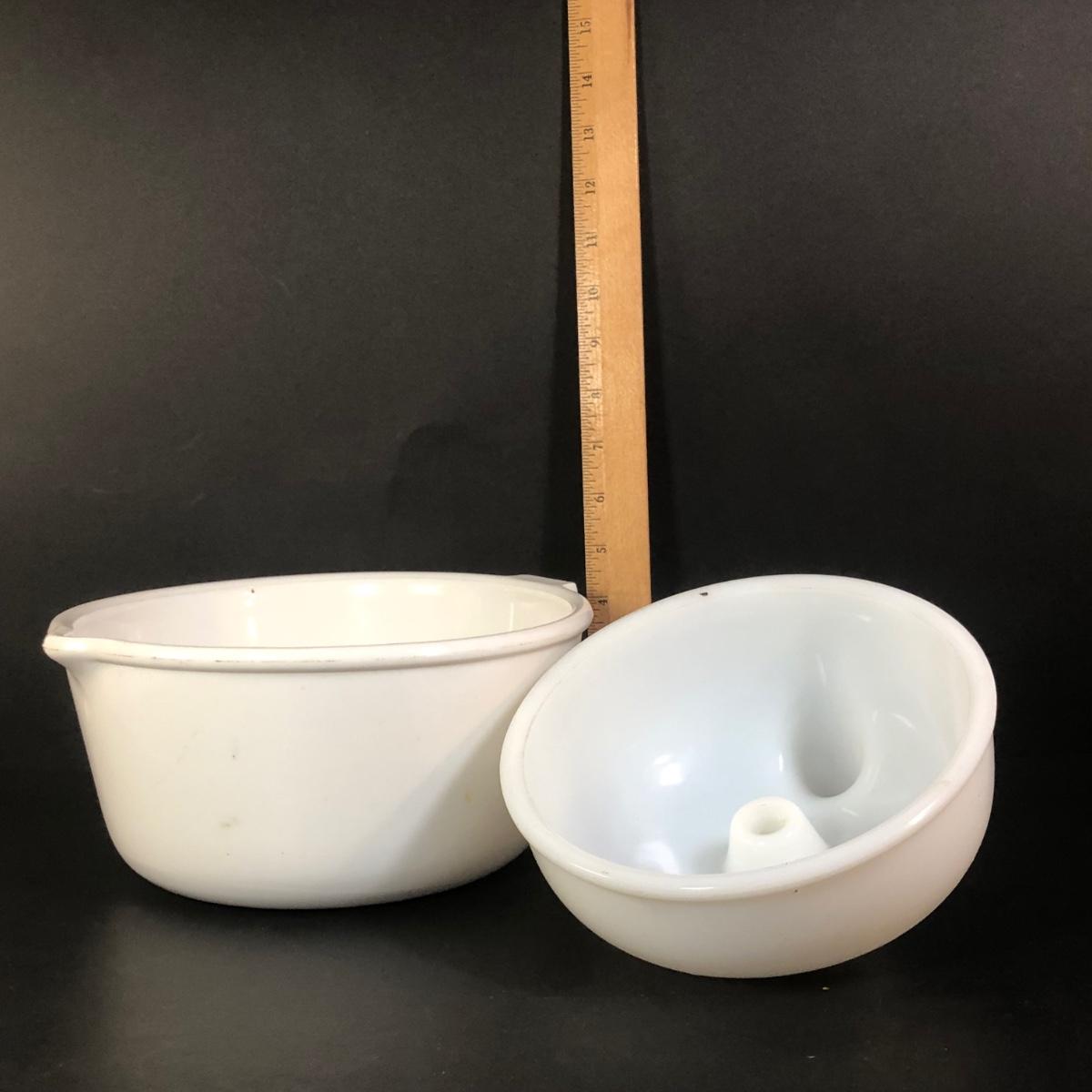LOT 364M: Vintage 1950s Milk Glass Funnel Attachment & Mixing Bowl