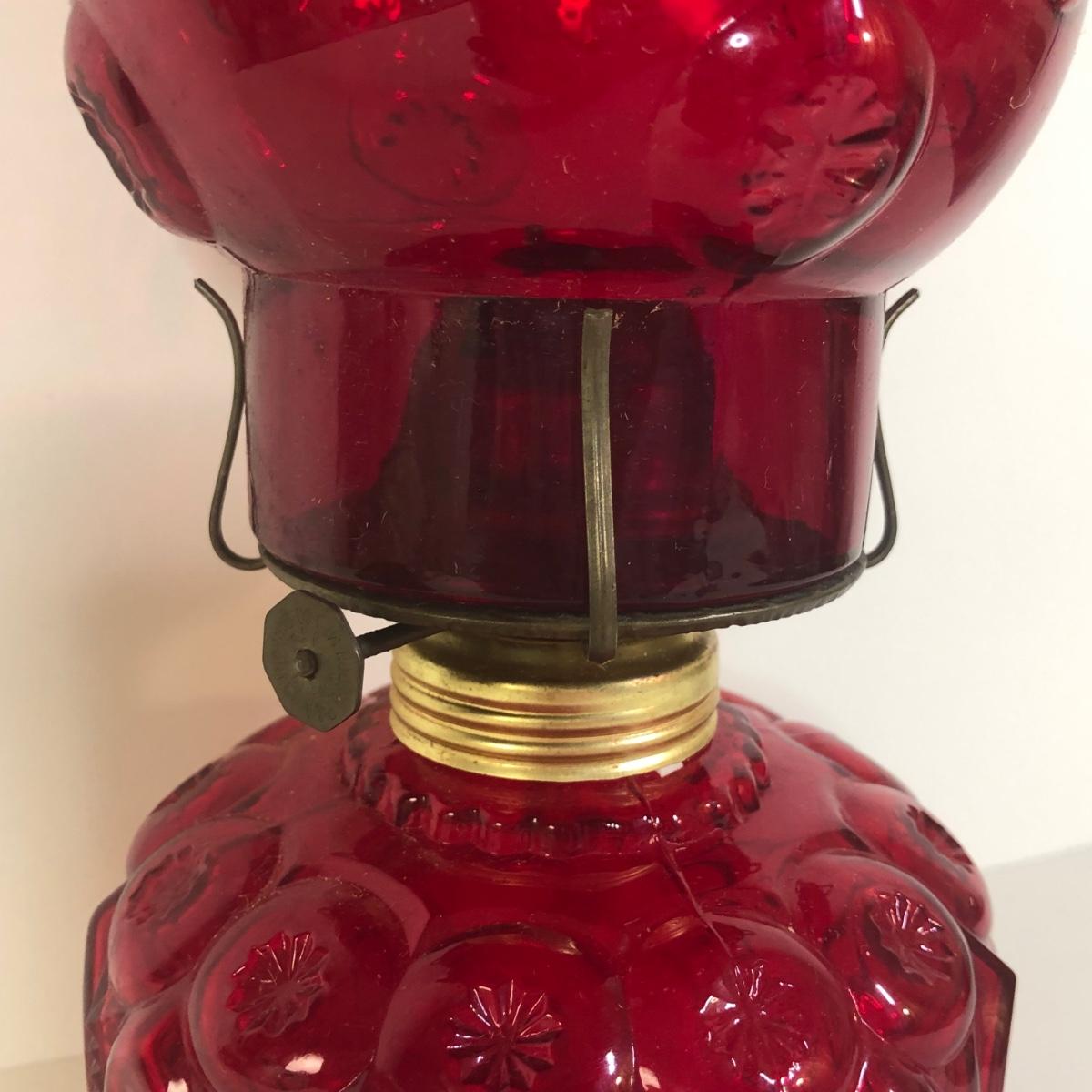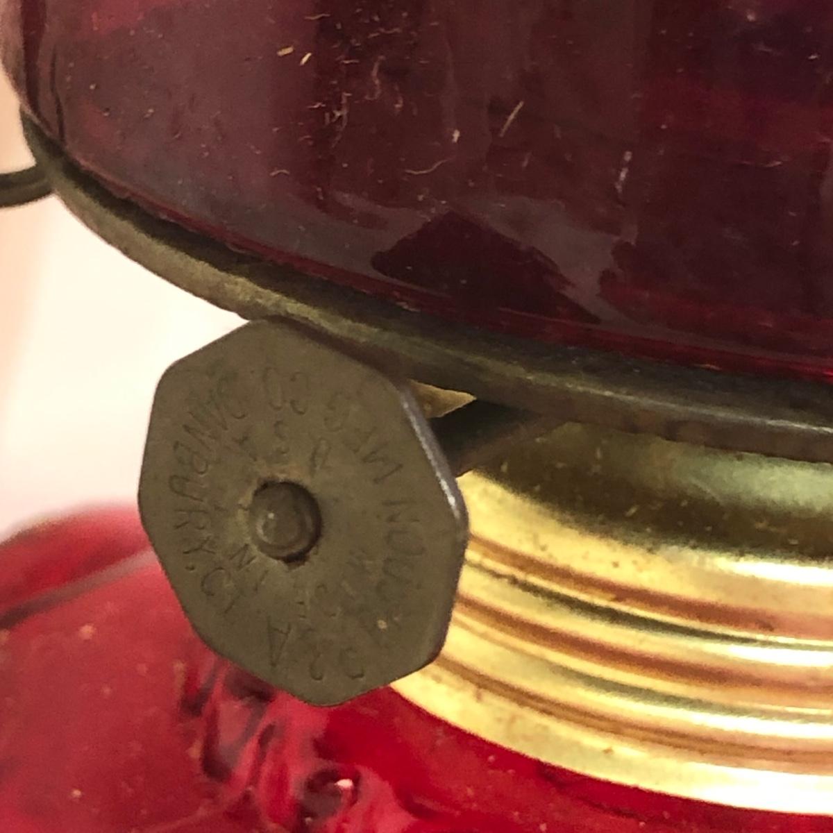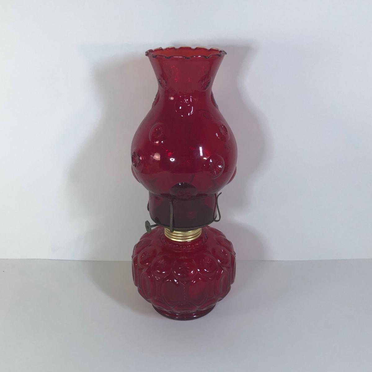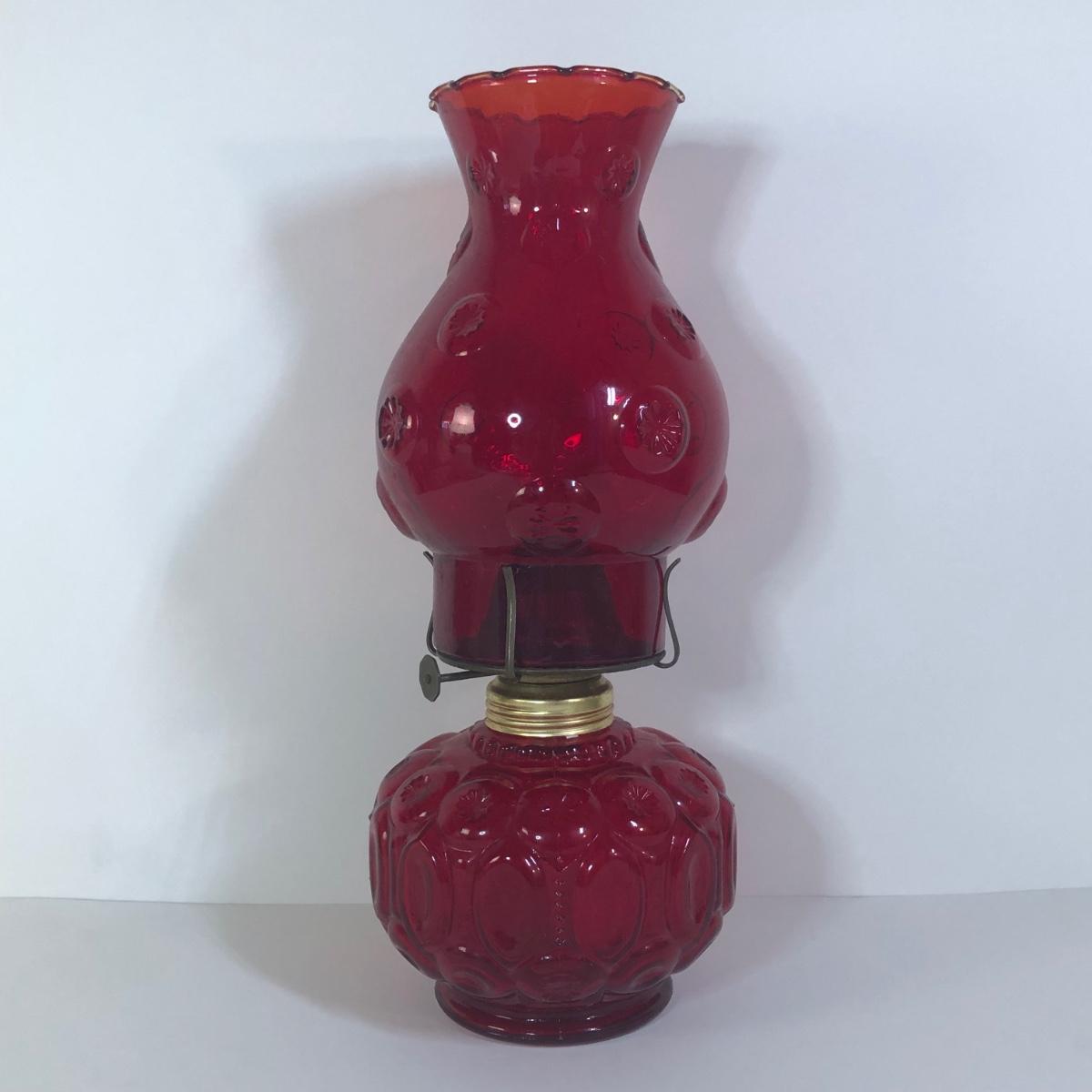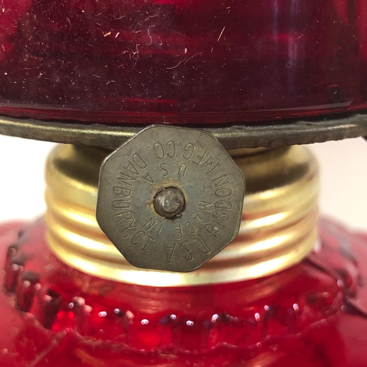 LOT 369M: Vintage Ruby Red Glass Moon & Stars Oil Lamp, Fitz & Floyd Reindeer Candle Holder, Pinecone Candle Holder & Long Matches