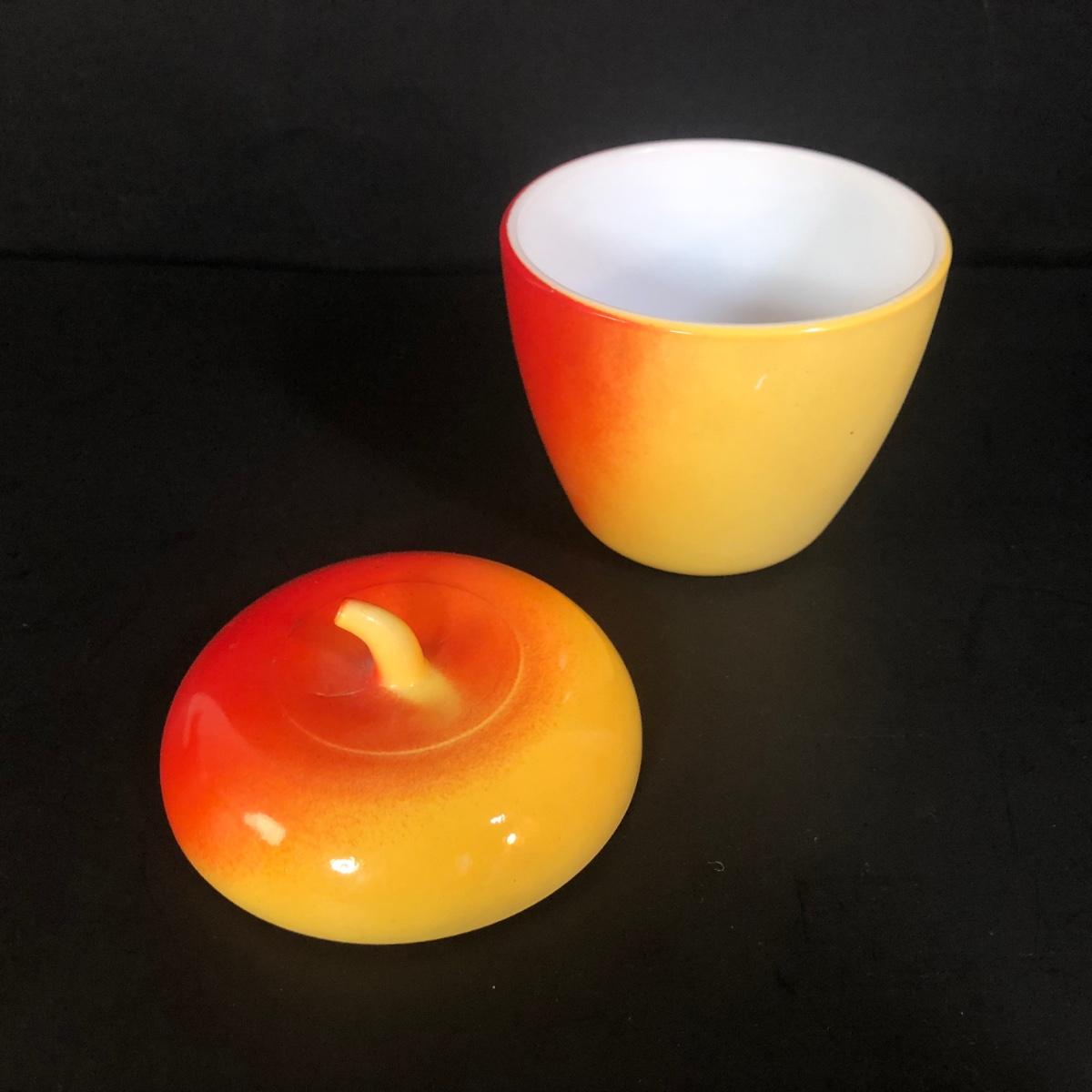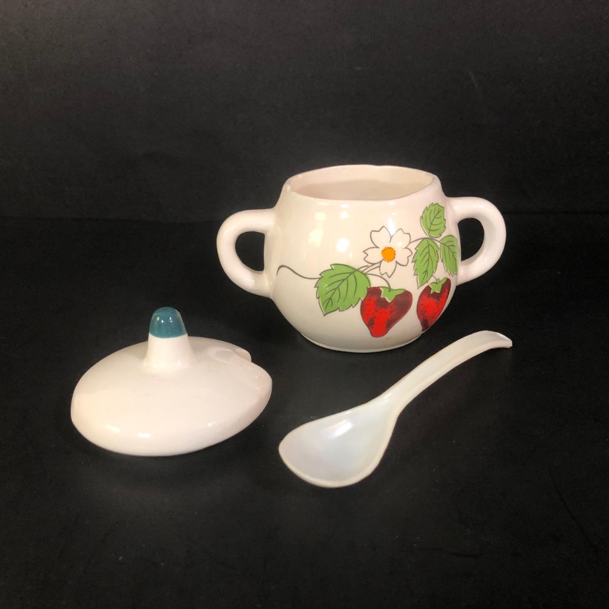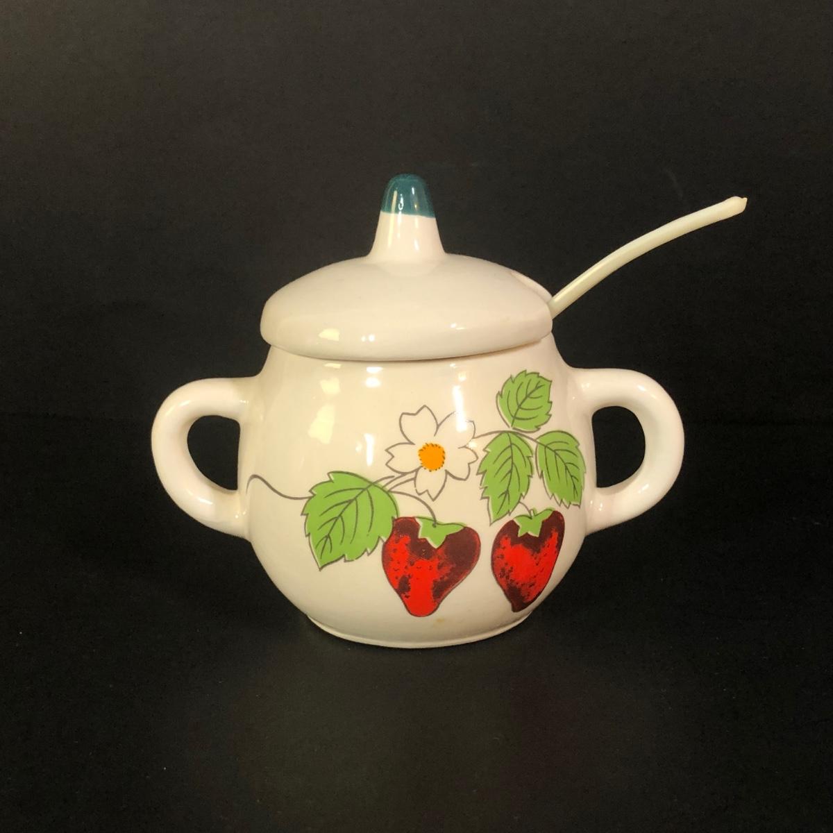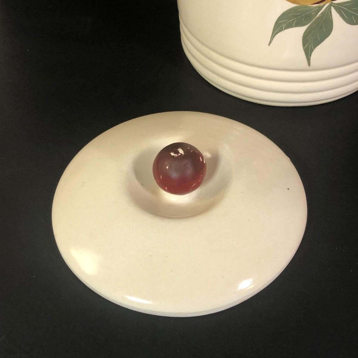LOT 374M: Fruit Collection - Large Pottery Cookie Jar, Apple Jar & Sugar Bowl w/ Spoon