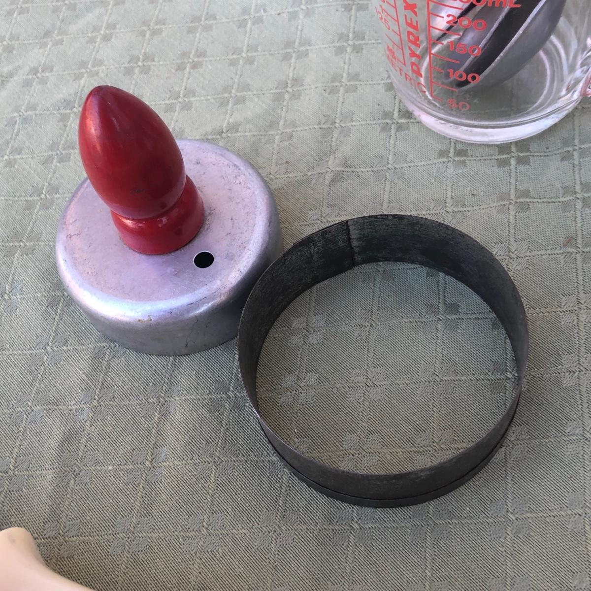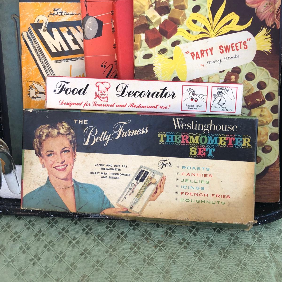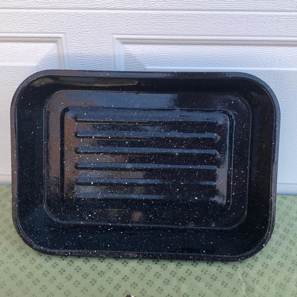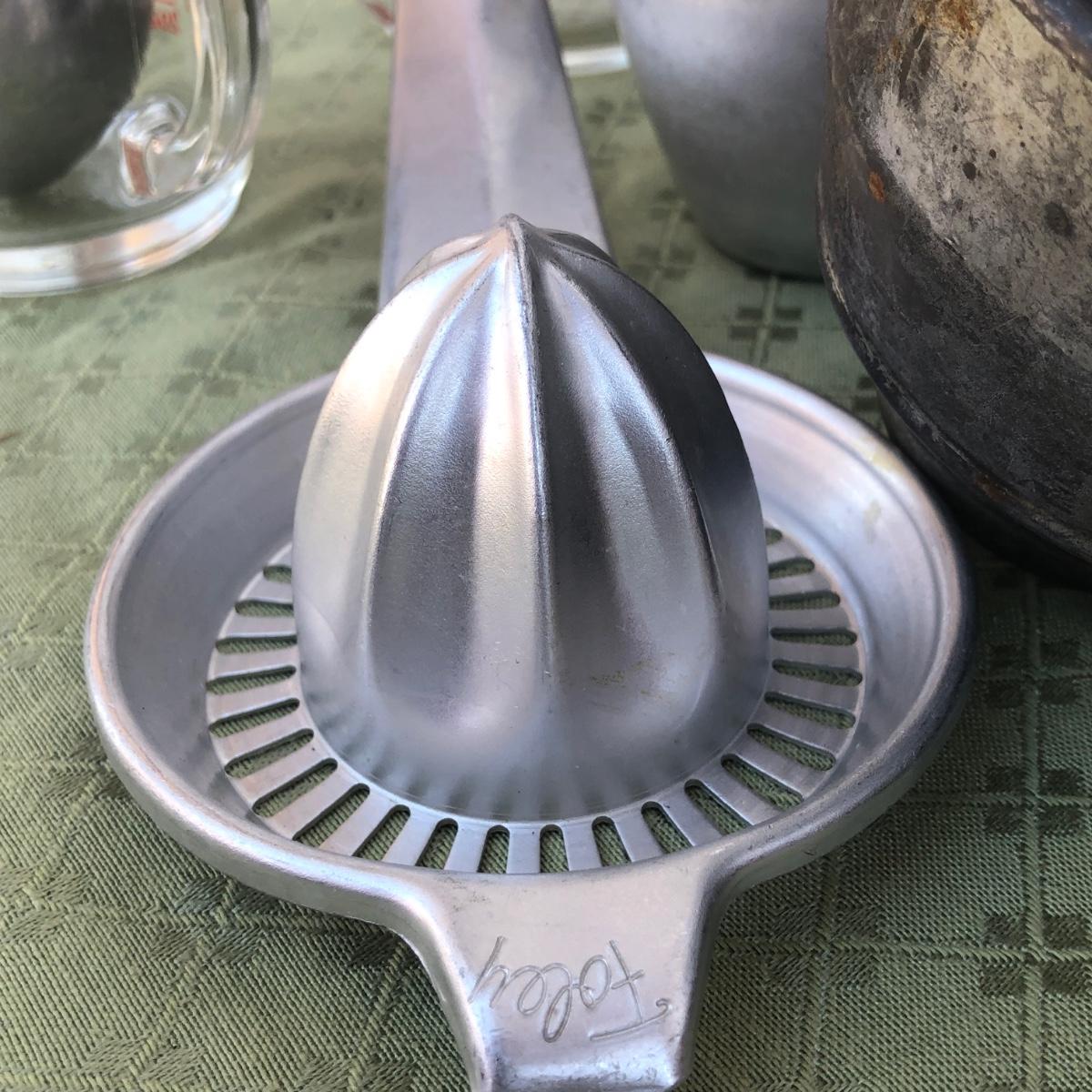 LOT 377M: Vintage Kitchen Collection incl. Pyrex Measuring Cups, Sifters, Large Enamel Pan & More