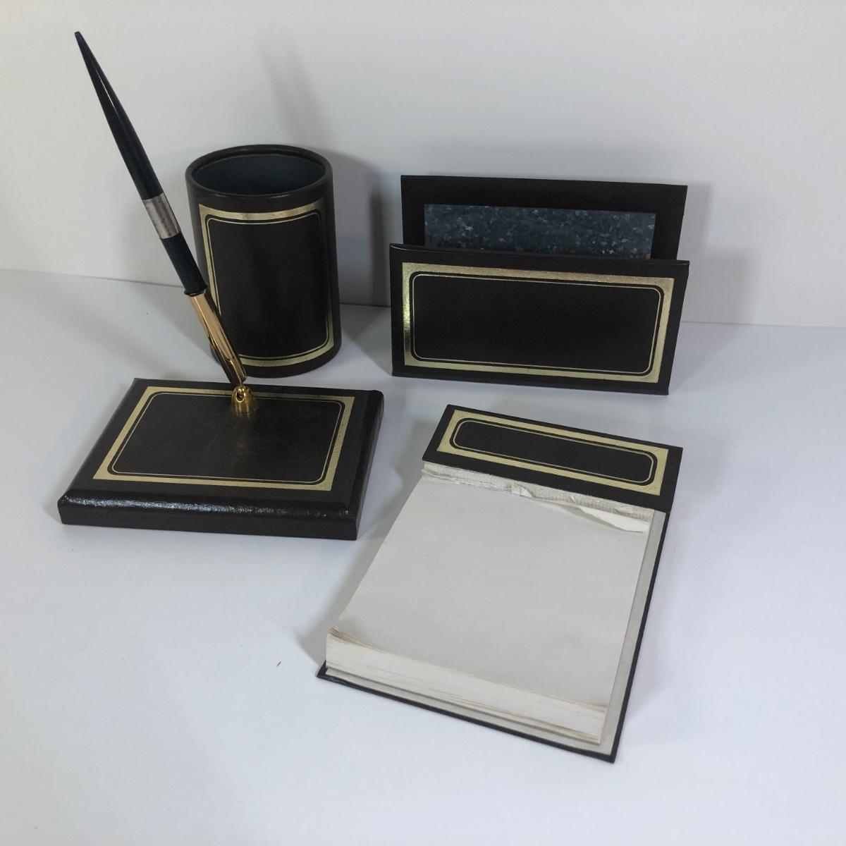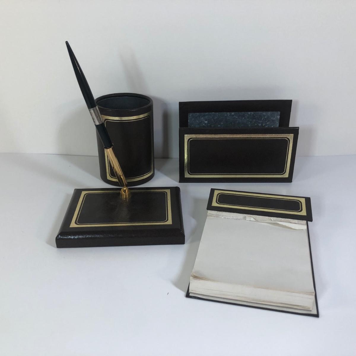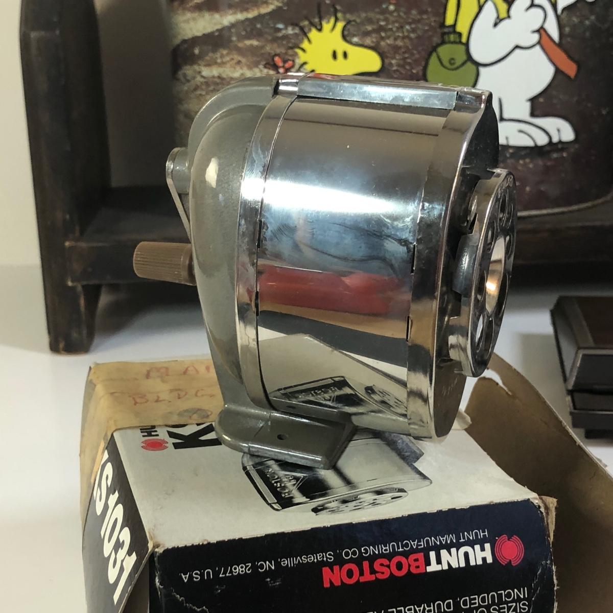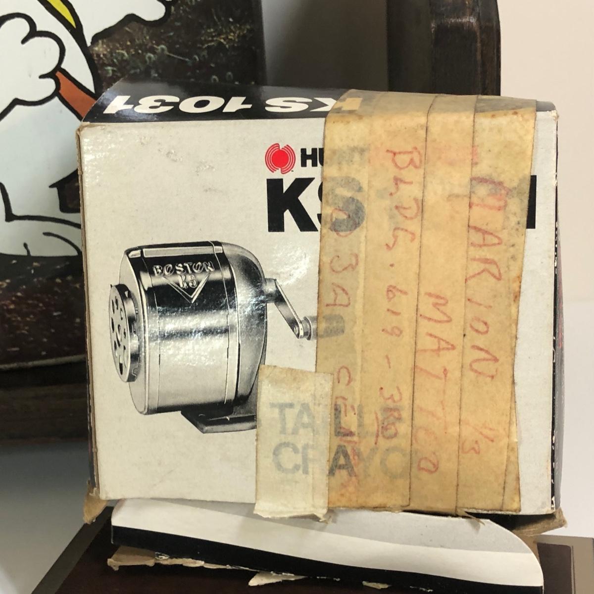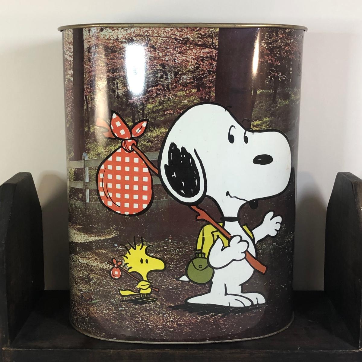 LOT 379M: Vintage Office Collection - Snoopy Waste Bin, Wooden Book Rack, Apex Clock, C.R. Gibson Desk Set, Mounted Pencil Sharpener & More