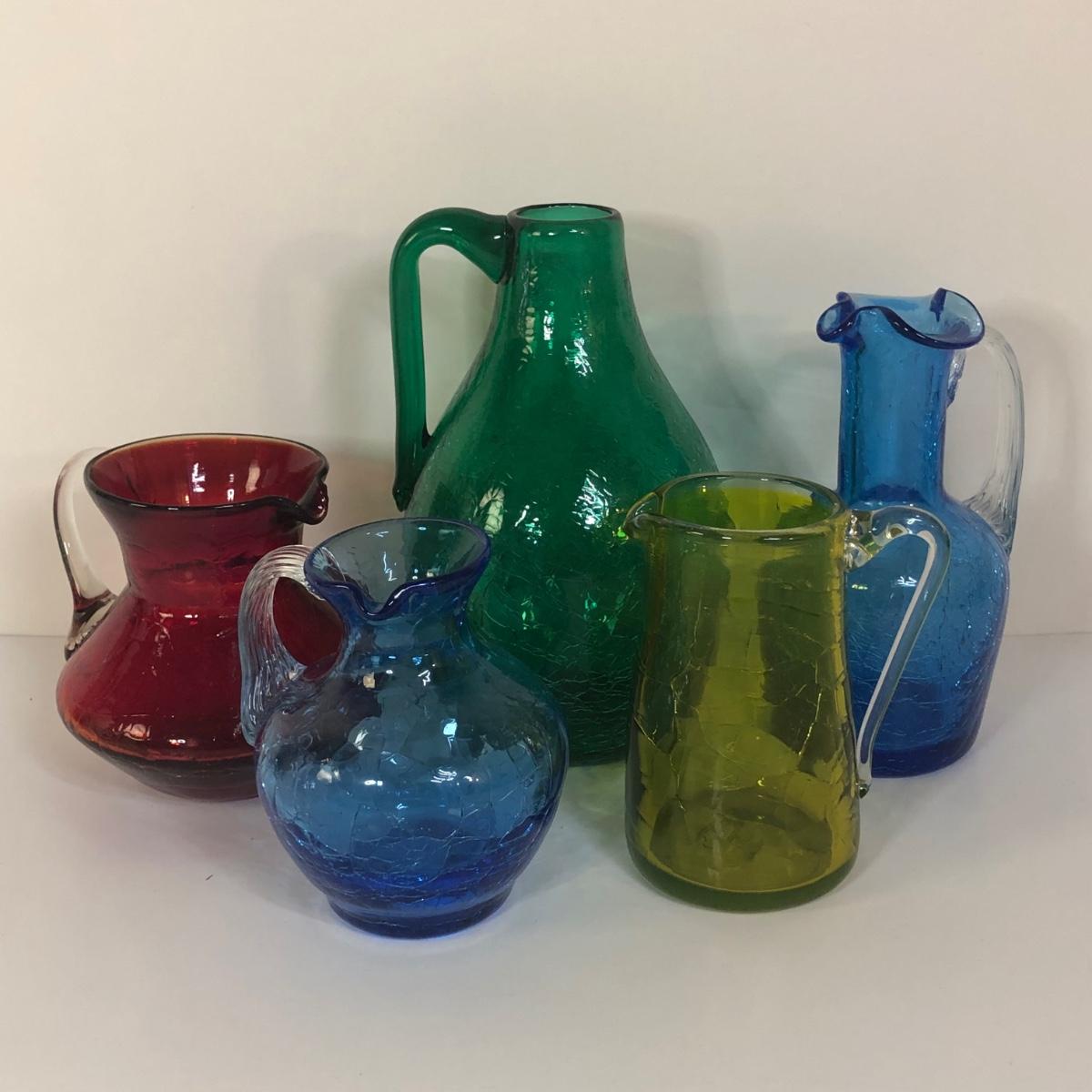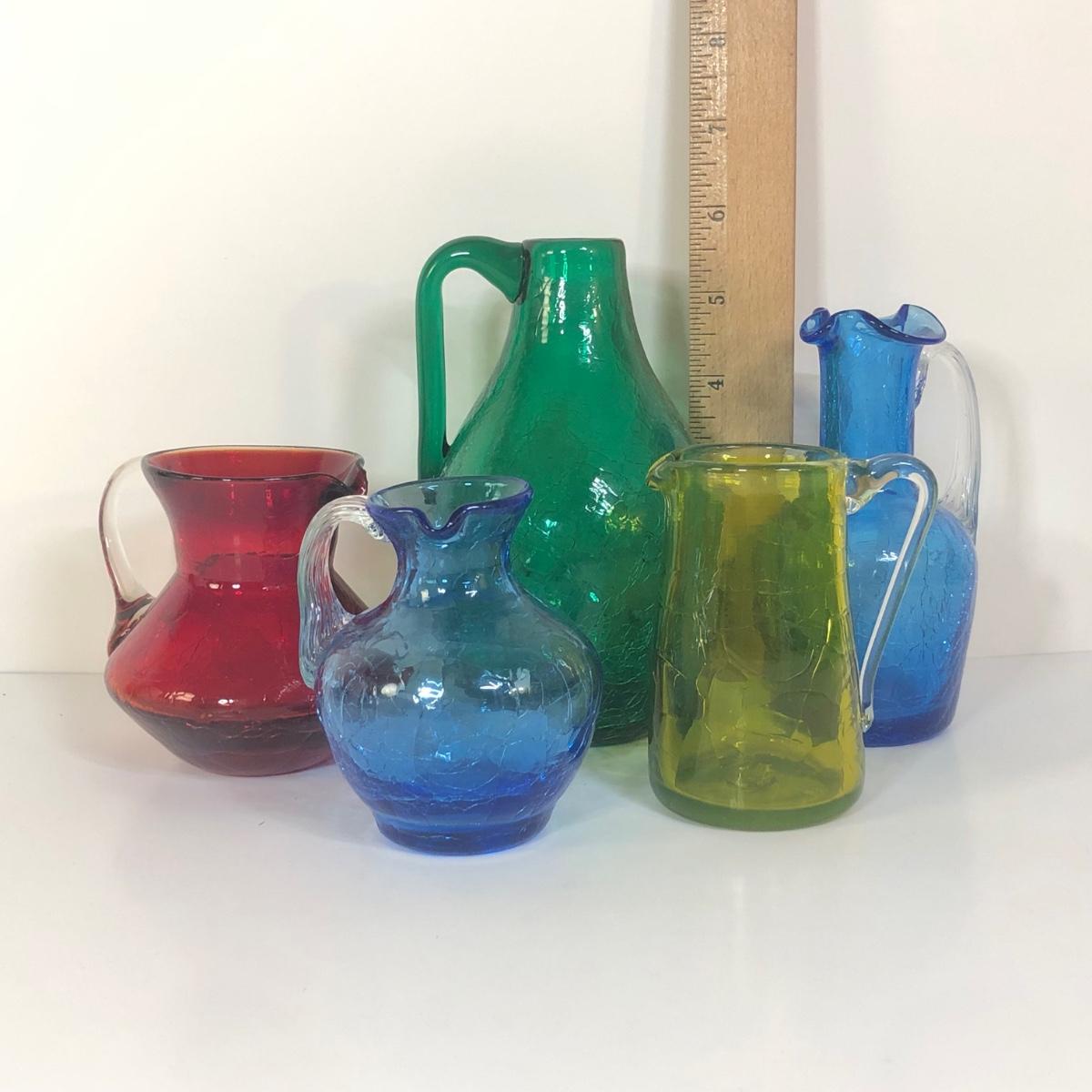 LOT 383M: Vintage Colorful Crackle Glass Pitchers