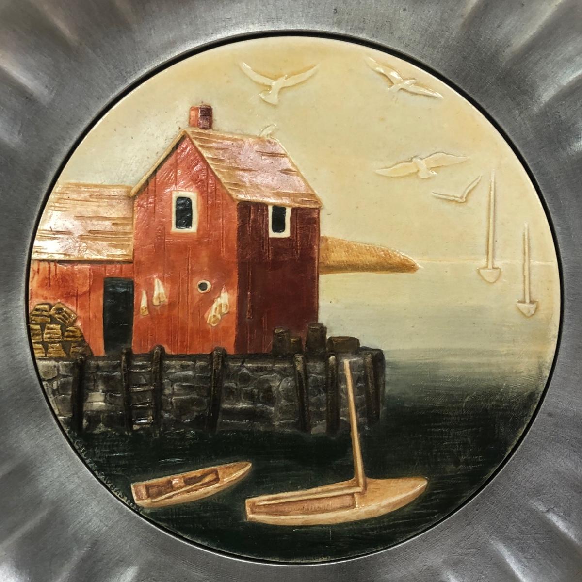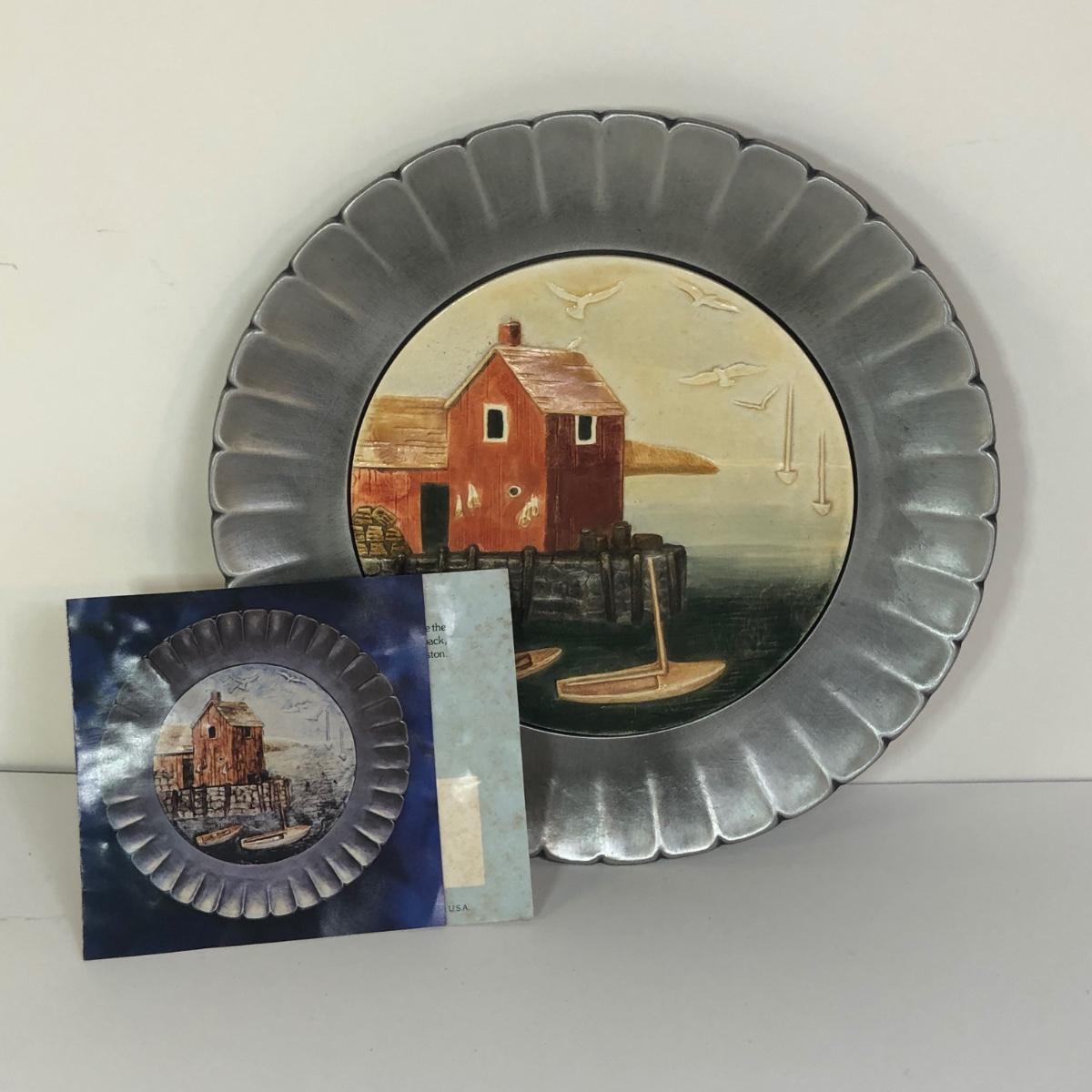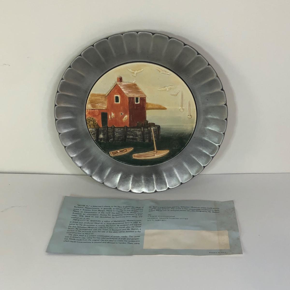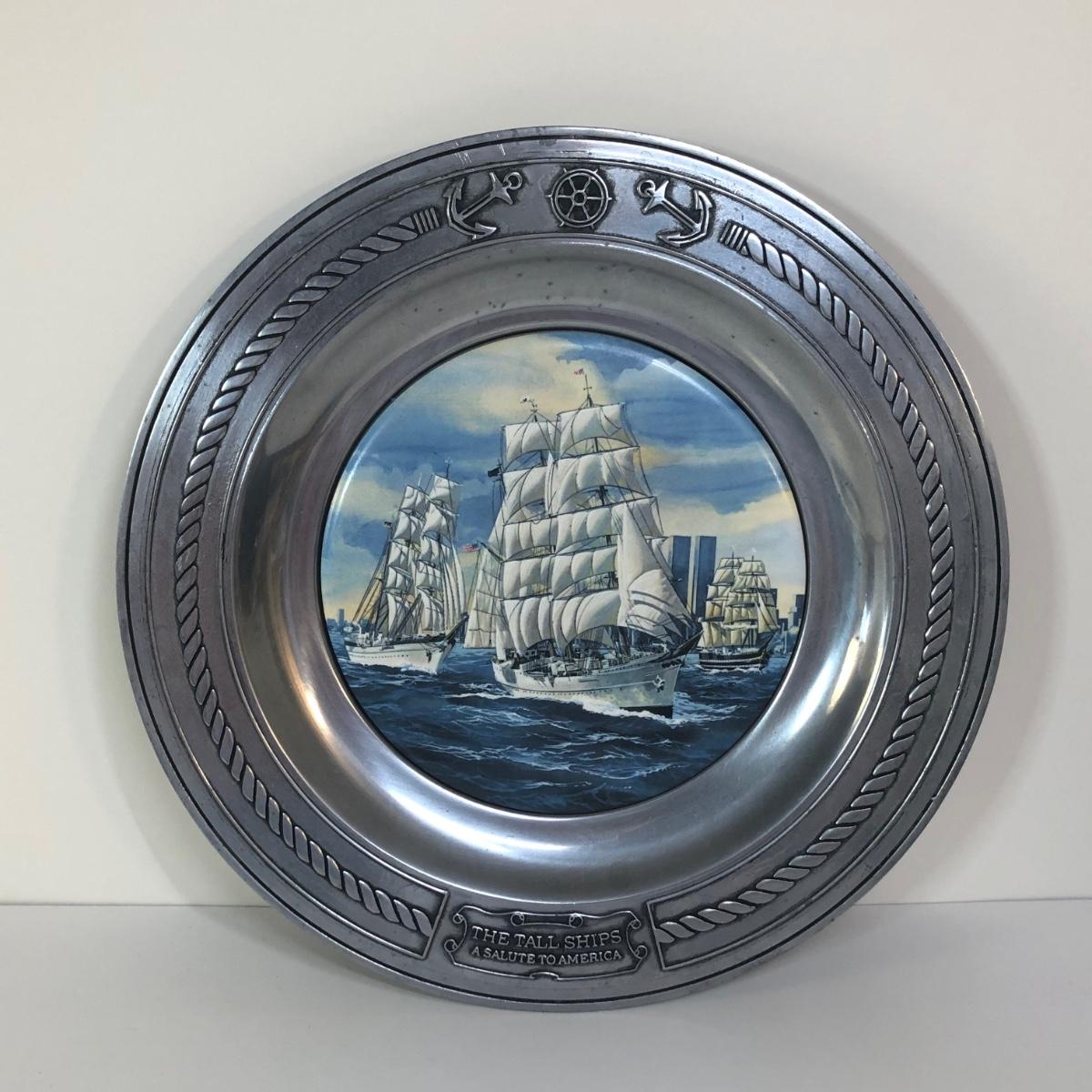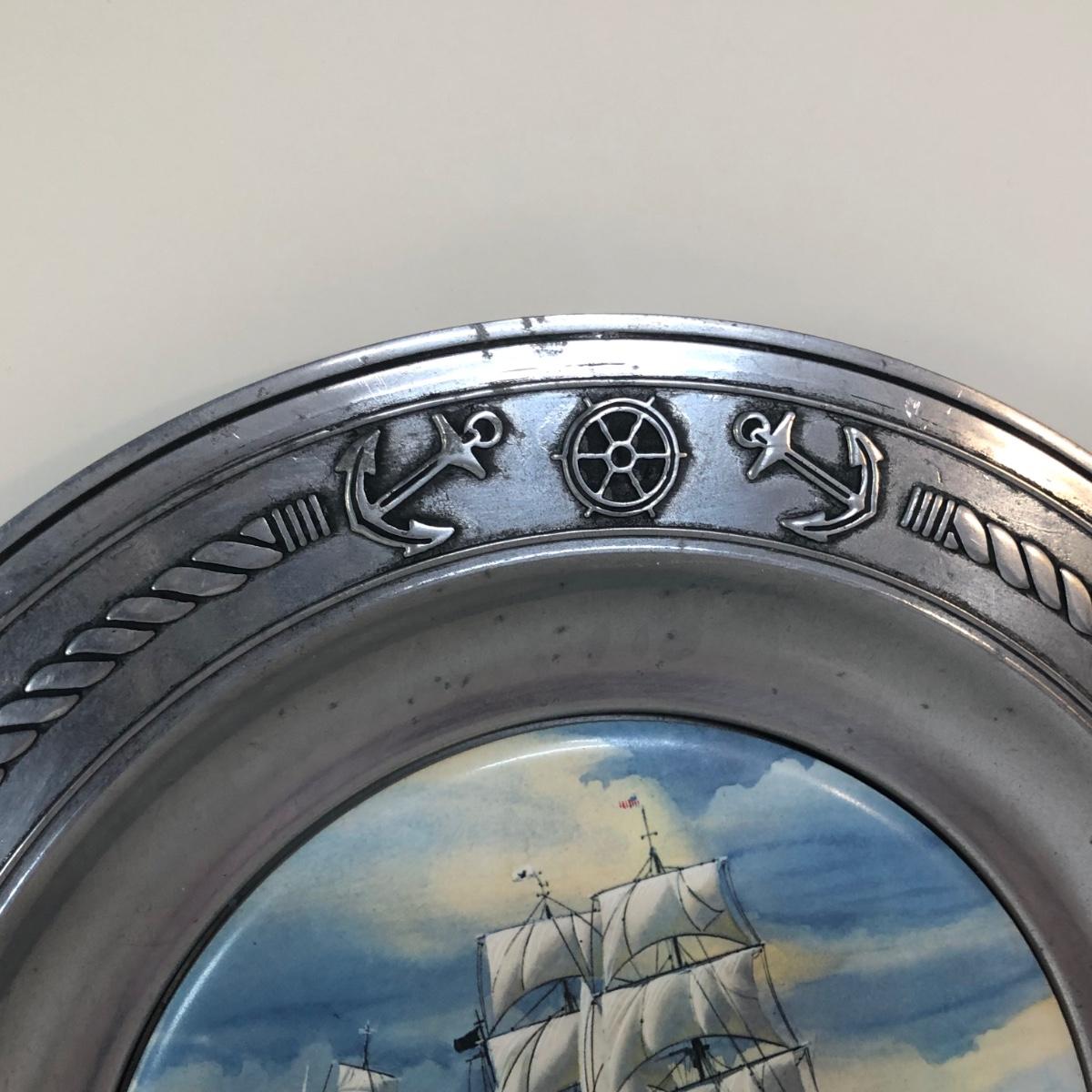 LOT 386M: Nautical Collection - Large Wooden Anchor Clock, 1978 Motif #1 Plate (7522/10000), 1970 Hand Painted Italian Sailor Mug, Lady Clare Bookends & American Racing Clipper Silhouettes