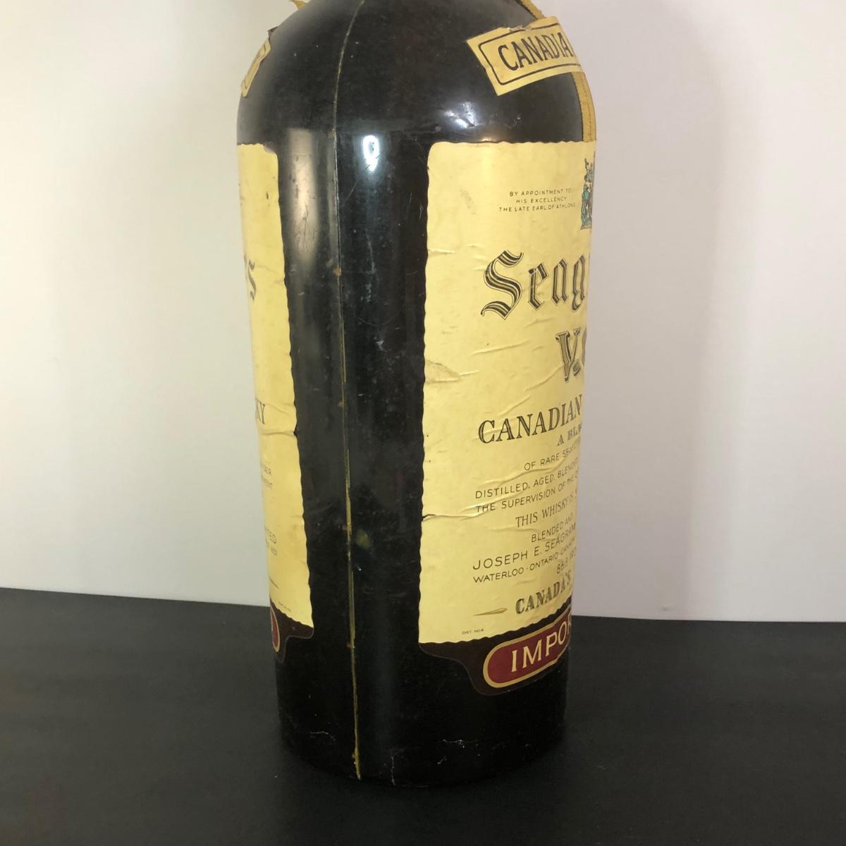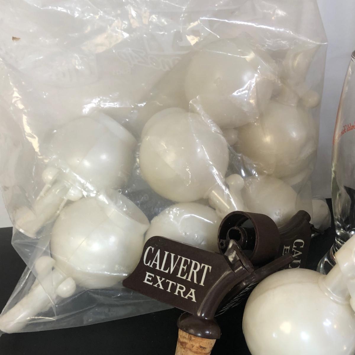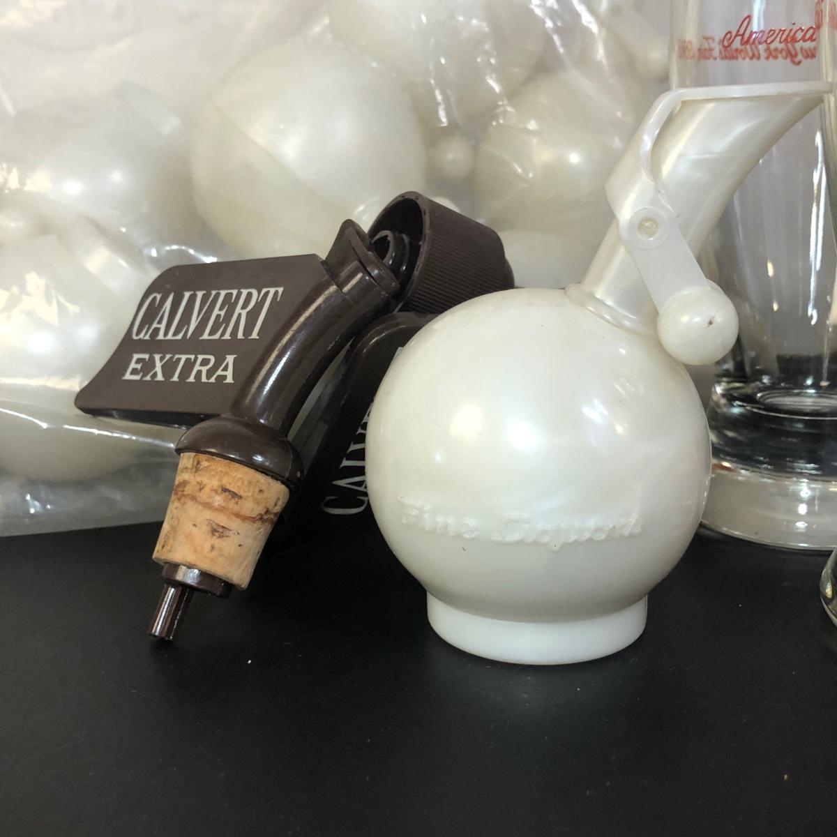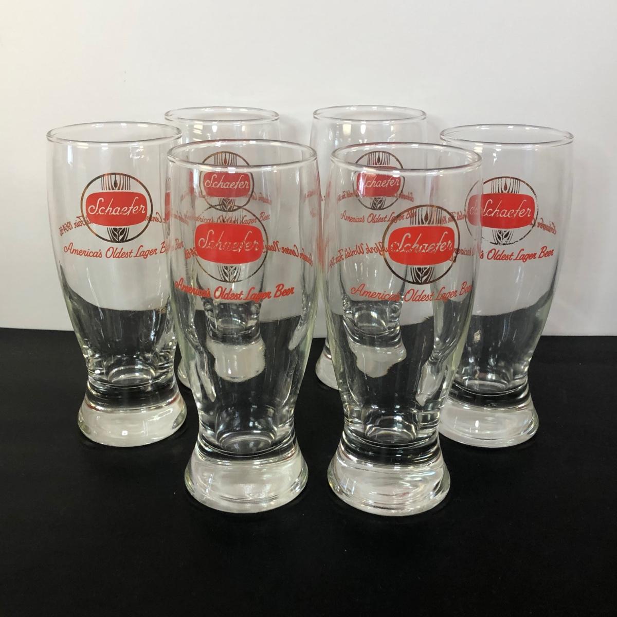 LOT 392M: Vintage Bar - 1964-1965 NY World's Fair Schaefer Beer Glasses (6), Antique Pre-Prohibition Acid Etched Whiskey Shot Glass, Extra Large Plastic Seagrams Bottle, Nude Lady Reveal Glass & More