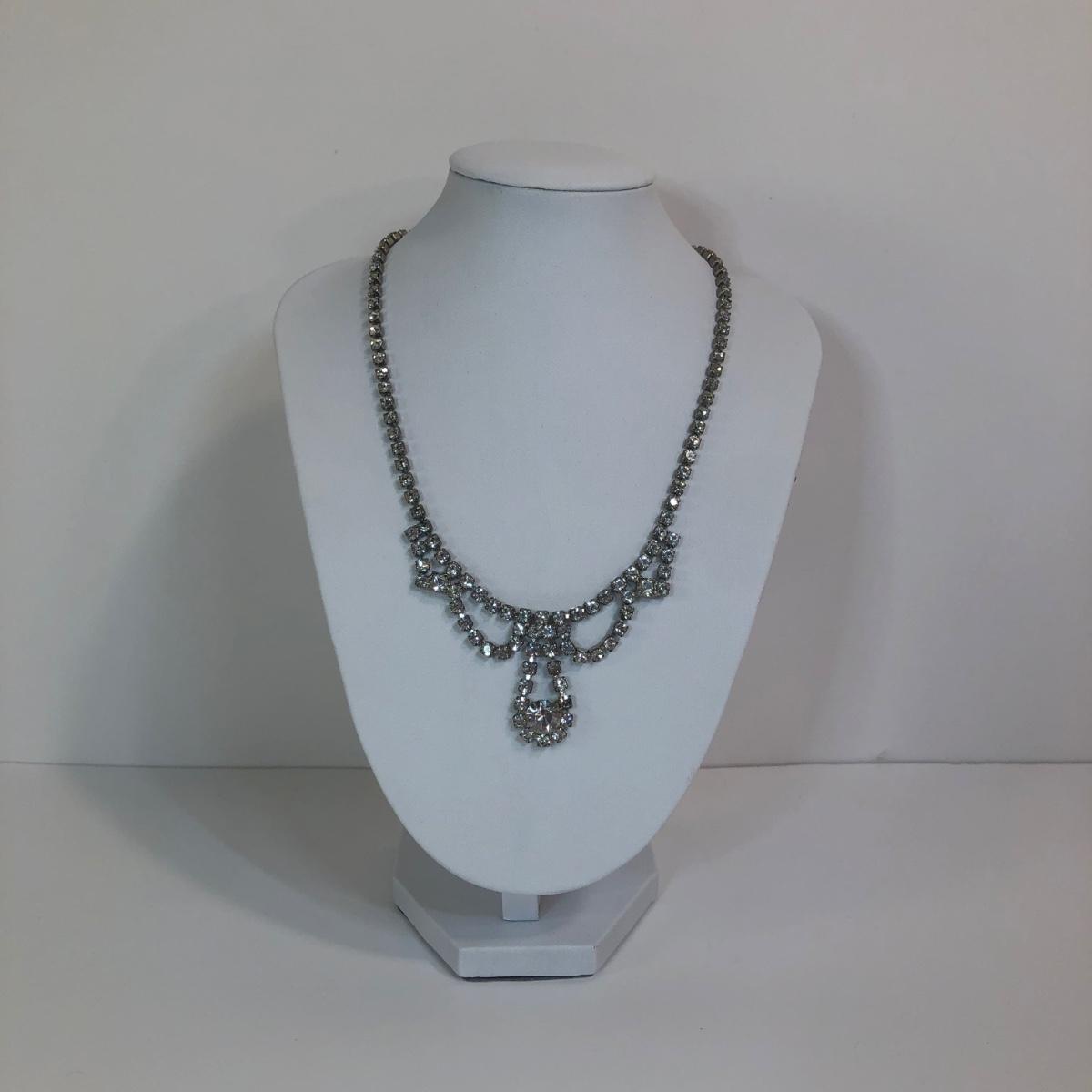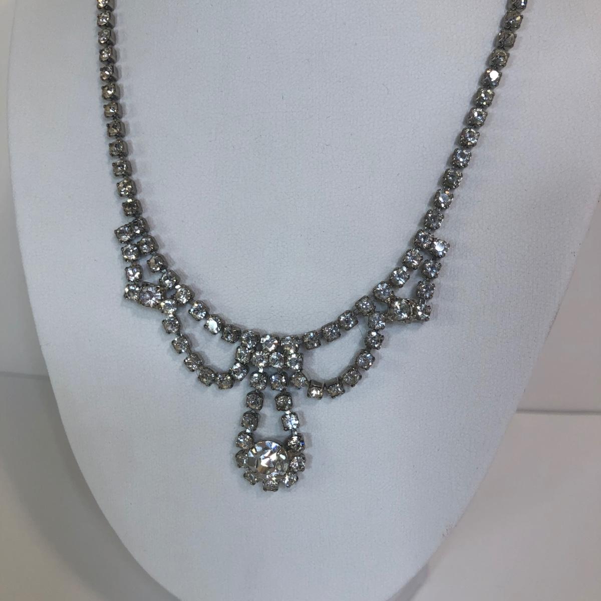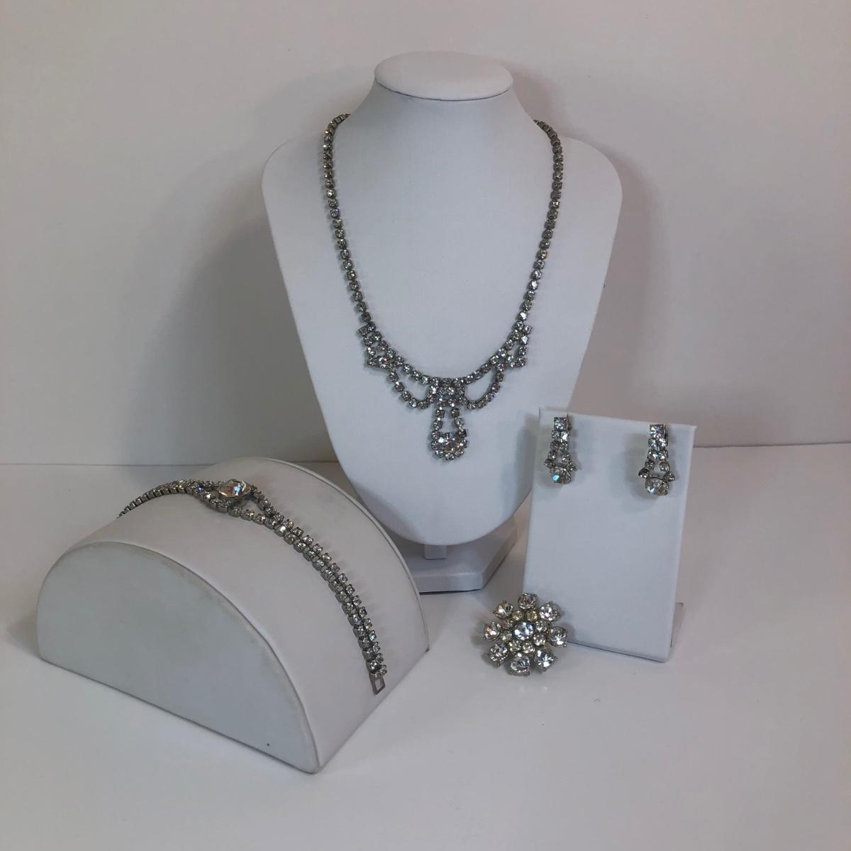 LOT 398M: Rhinestone Collection - 14" Necklace, 7" Bracelet, Screwback Earrings & Brooch