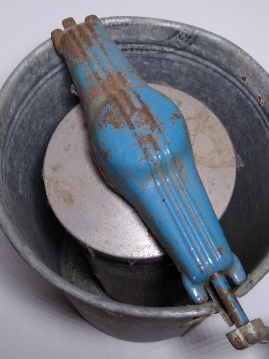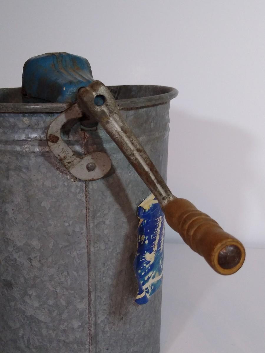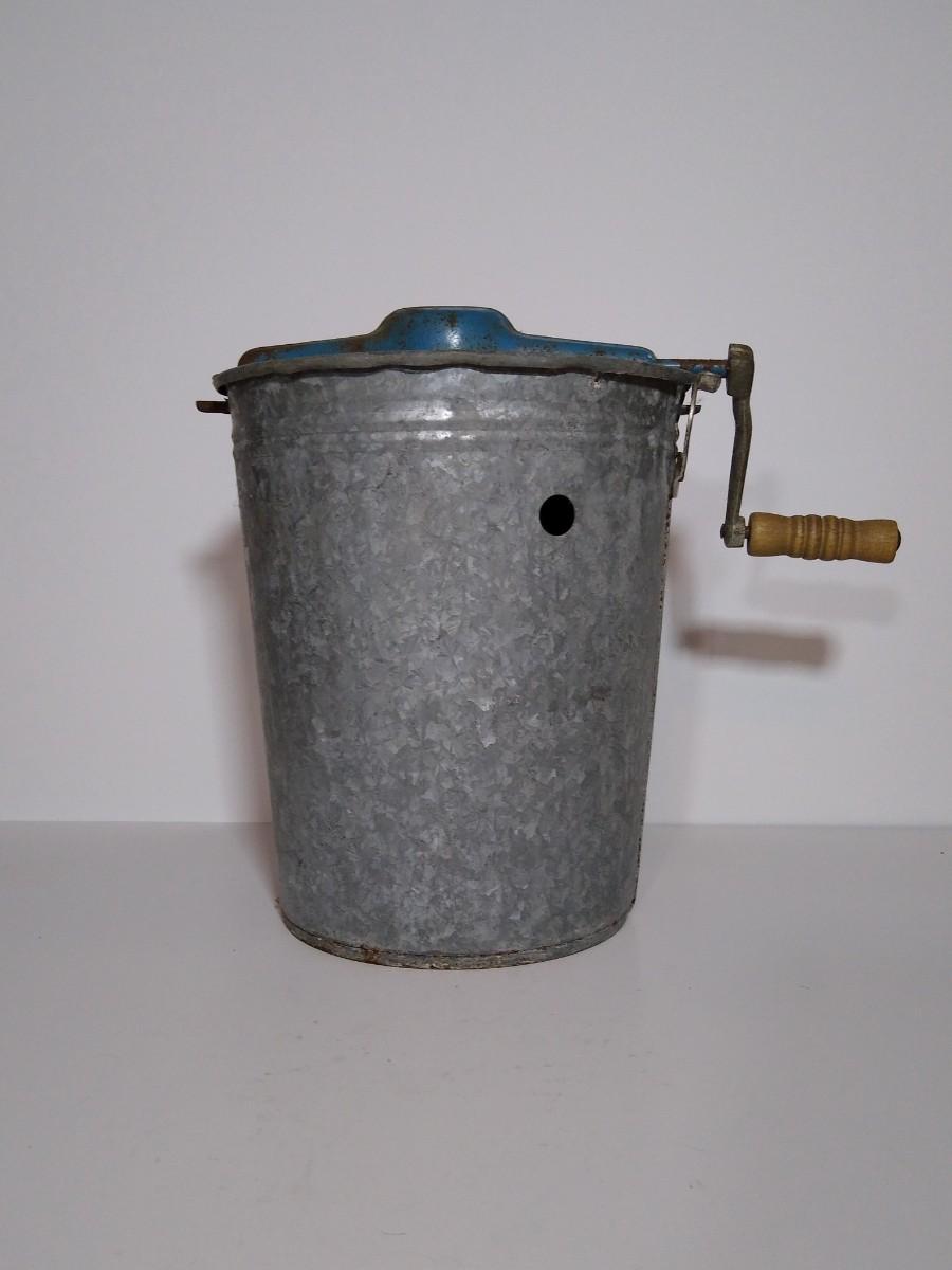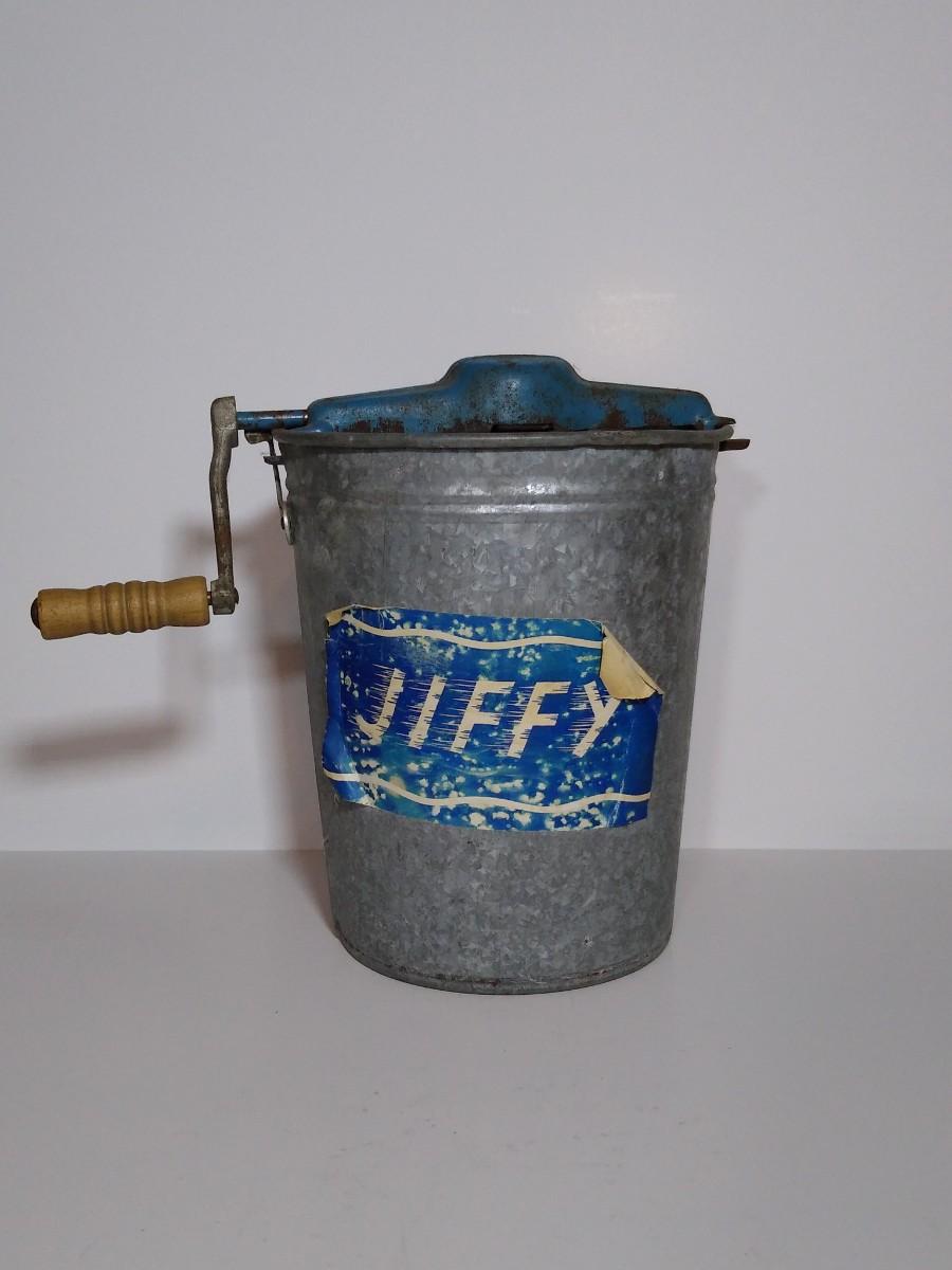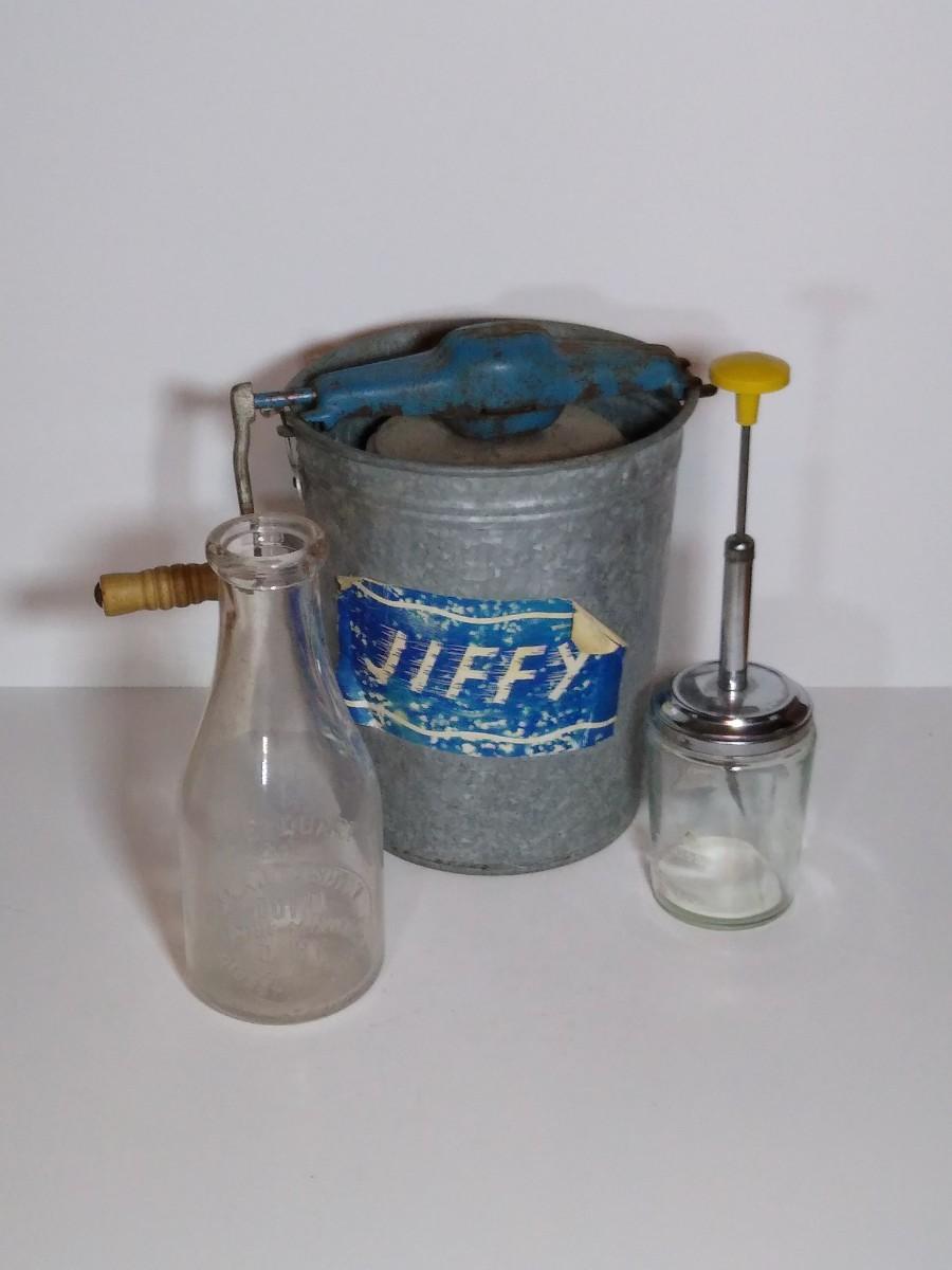 LOT 17S: Jiffy Hand-Crank Ice Cream Machine with Acme Manual Food Chopper & Glass Milk Bottle